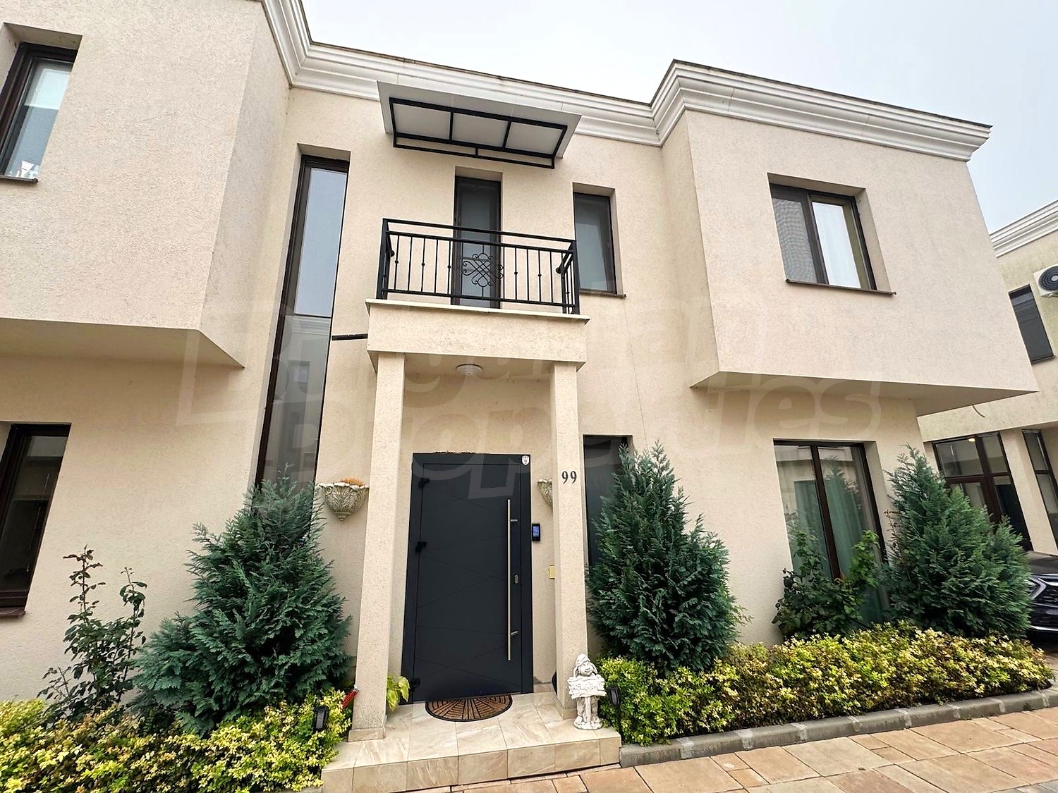 Къщата е напълно обзаведена и готова за живеене, със санитария - Грое, мека мебел, спални, гардероби, кухня - най-висок клас, кухненска маса - естествен дъб + 8 стола, бяла техника AEG, Bosh, LG, телевизори Samsung, Sony, професионална собствена охранителна система Ajax (с платена месечна услуга за охрана и патрул към SOT 161), Smart home access Hikvision - професионална техника.