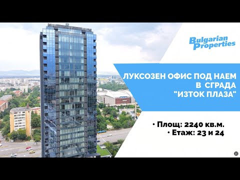 Атрактивно предложение за наем на просторен офис (2240 кв.м.), заемащ 23 и 24-ти етажи в многофункционалната сграда „Изток Плаза", която освен офиси включва хотел, жилища, ресторанти и подземни гаражи. Сградата се намира на бул. Цариградско шосе и ул. Тинтява в квартал Изток, с бърз достъп до центъра, летище и изход от града, посредством основните булеварди и градски пътни артерии, с които граничи. Могат да се наемат и отделно двата етажа.