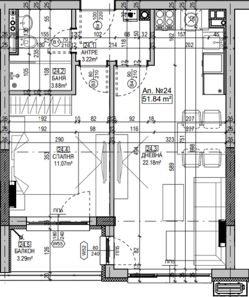 (1 982 €/м2) (3 877,26 лв./м2)Площ: 62.55 м2 Етаж: 4