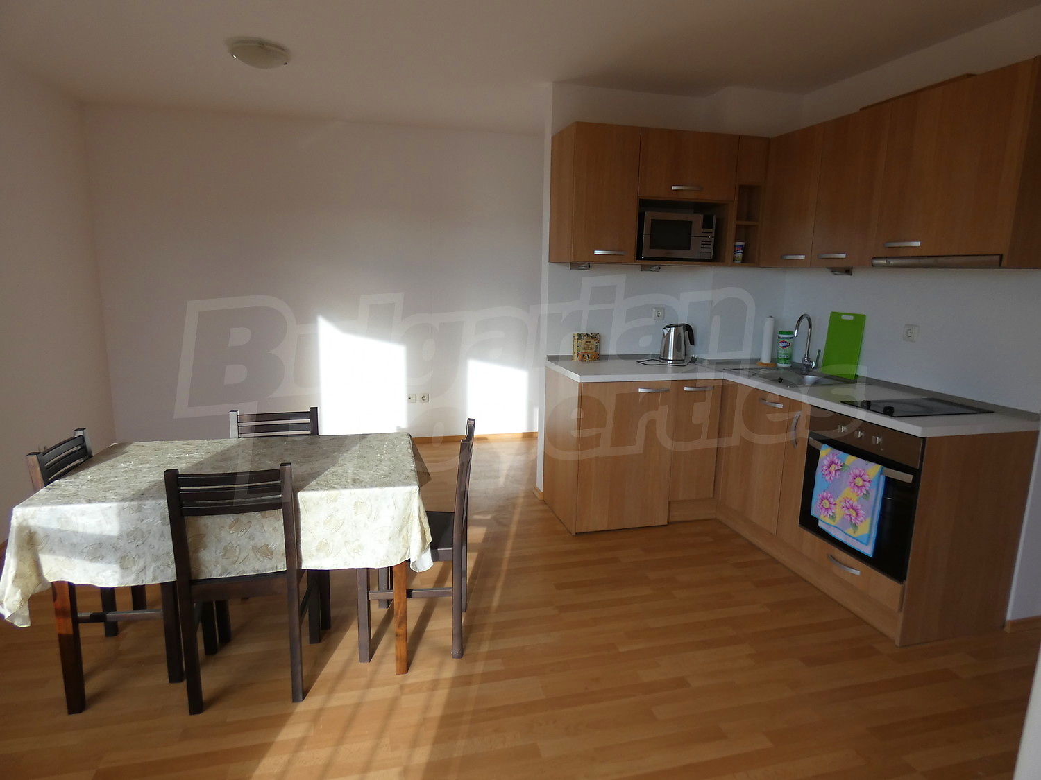 Апартаментът се продава частично обзаведен. Кухненски бокс с кухненски шкафове, печка, микровълнова, маса за хранене със столове. Първата спалня е с голямо легло с ношни шкафчета и гардероб.