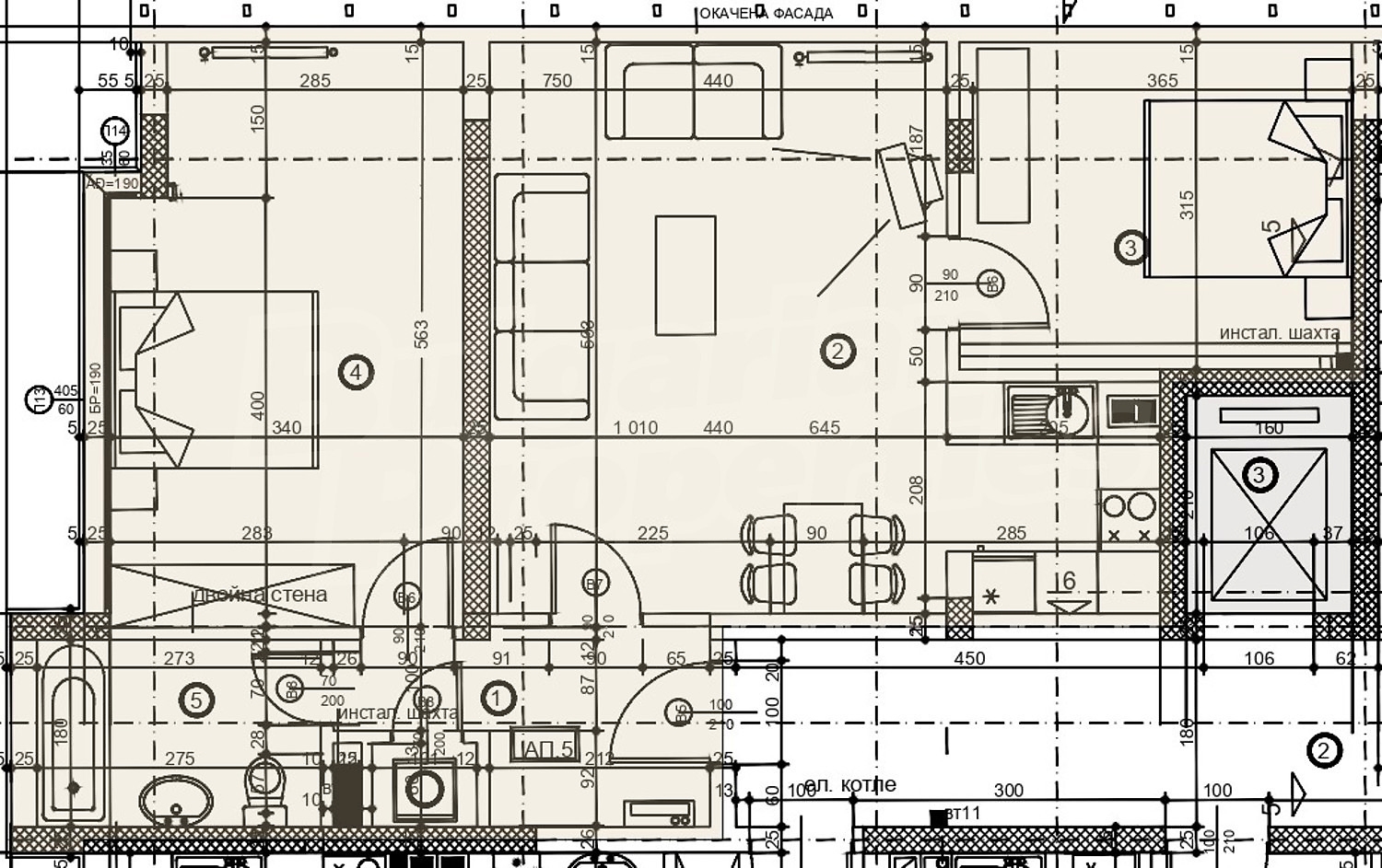 Намира се на 4-ти етаж с площ от 100 кв. м. и е в отлично състояние напълно завършен:
