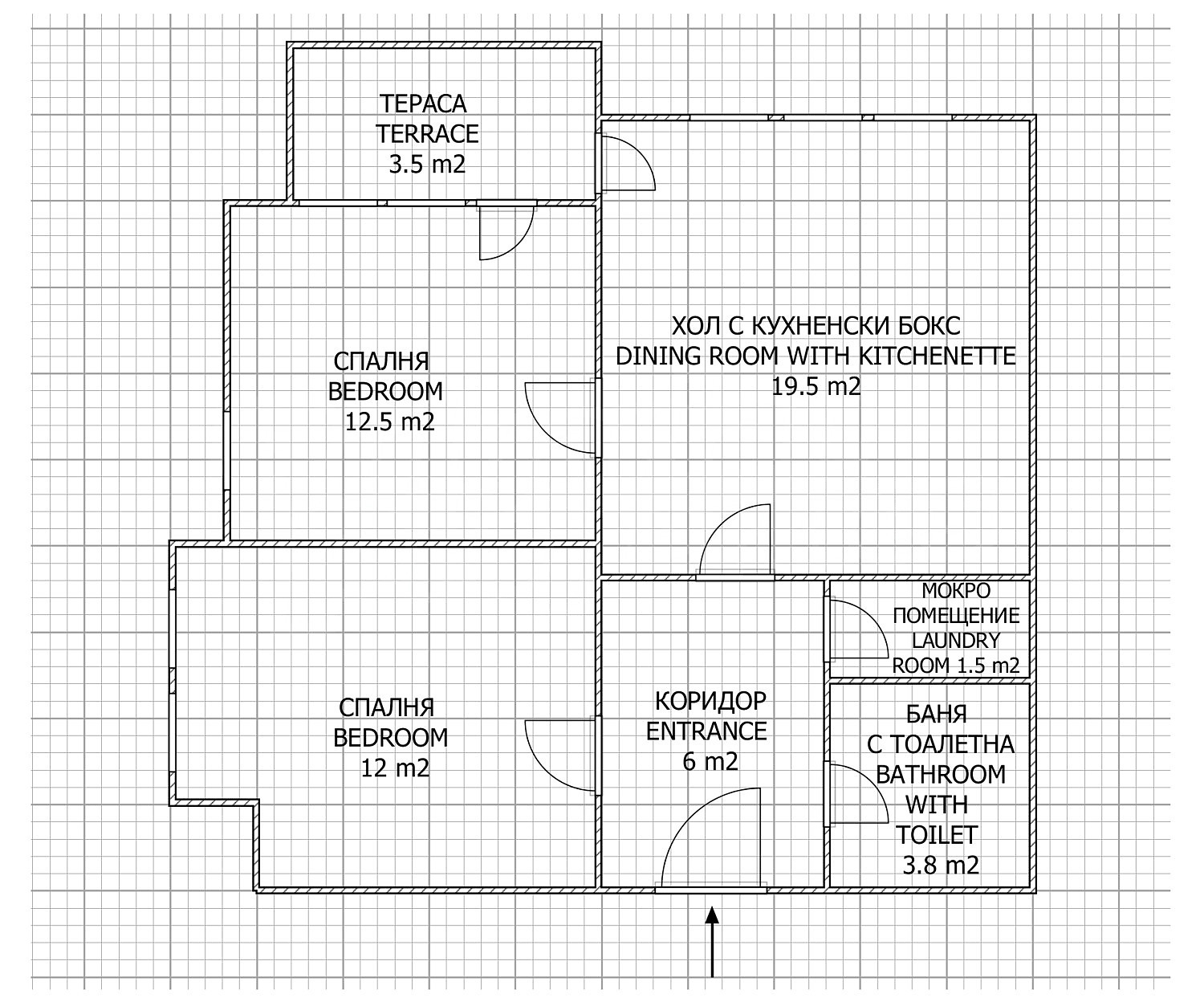 Апартаментът впечатлява с баланс между функционалност и уют, като всяко помещение е проектирано с внимание. При влизане ще Ви посрещне просторно входно антре, което предлага възможност за голям вграден гардероб и шкаф за обувки – практично решение за модерното домакинство.