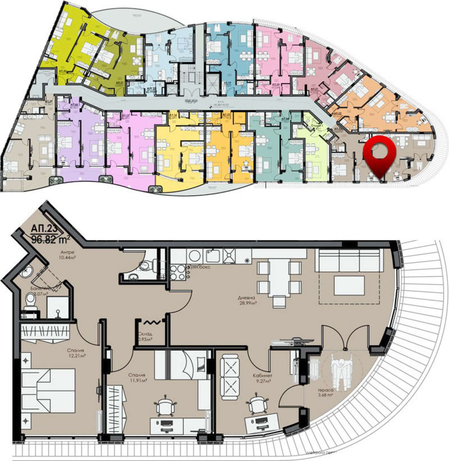 (2 070 €/м2) (4 048,57 лв./м2)Площ: 96.61 м2 Етаж: 3