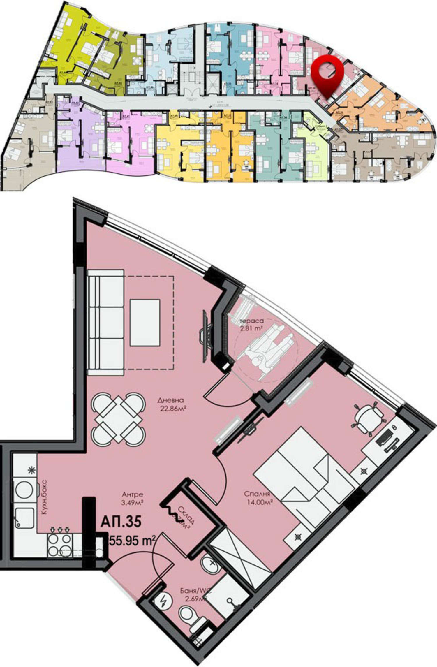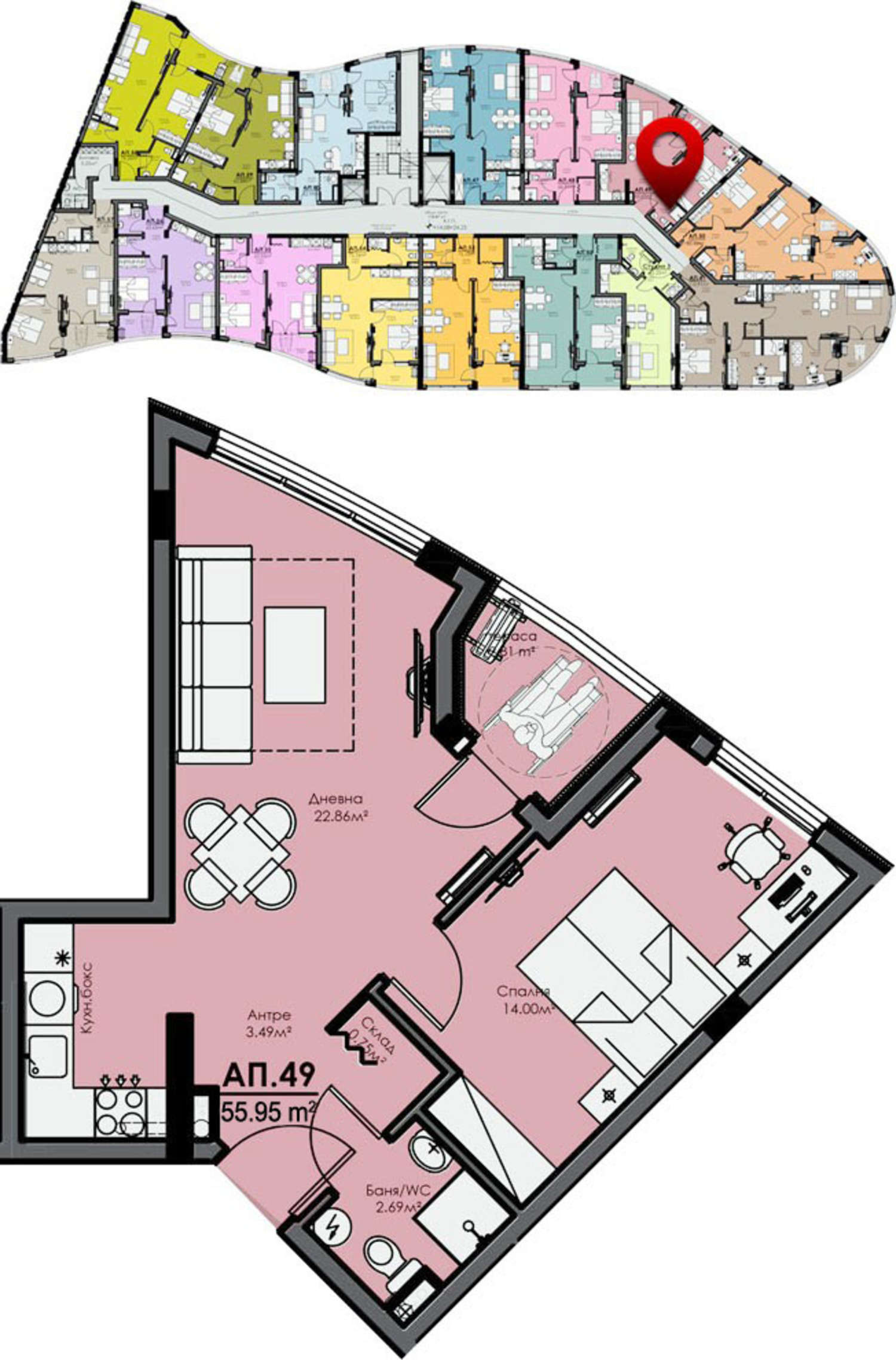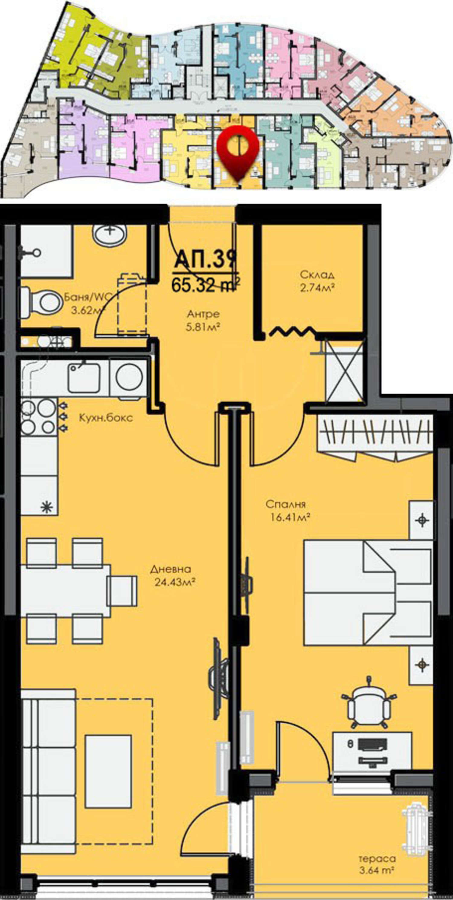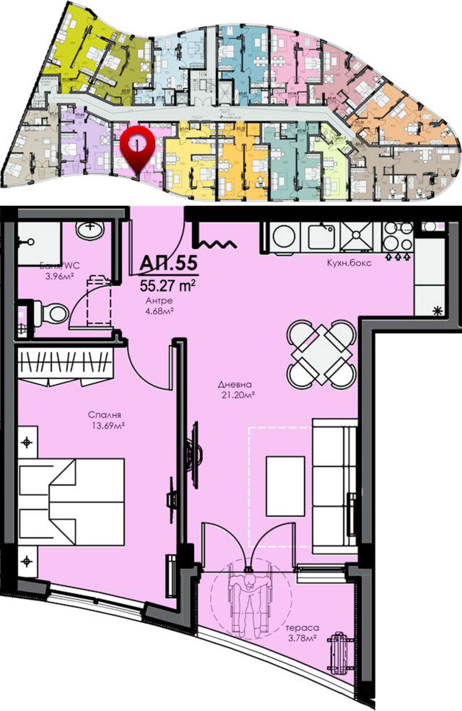 (2 249 €/м2) (4 398,66 лв./м2)Площ: 64.24 м2 Етаж: 5