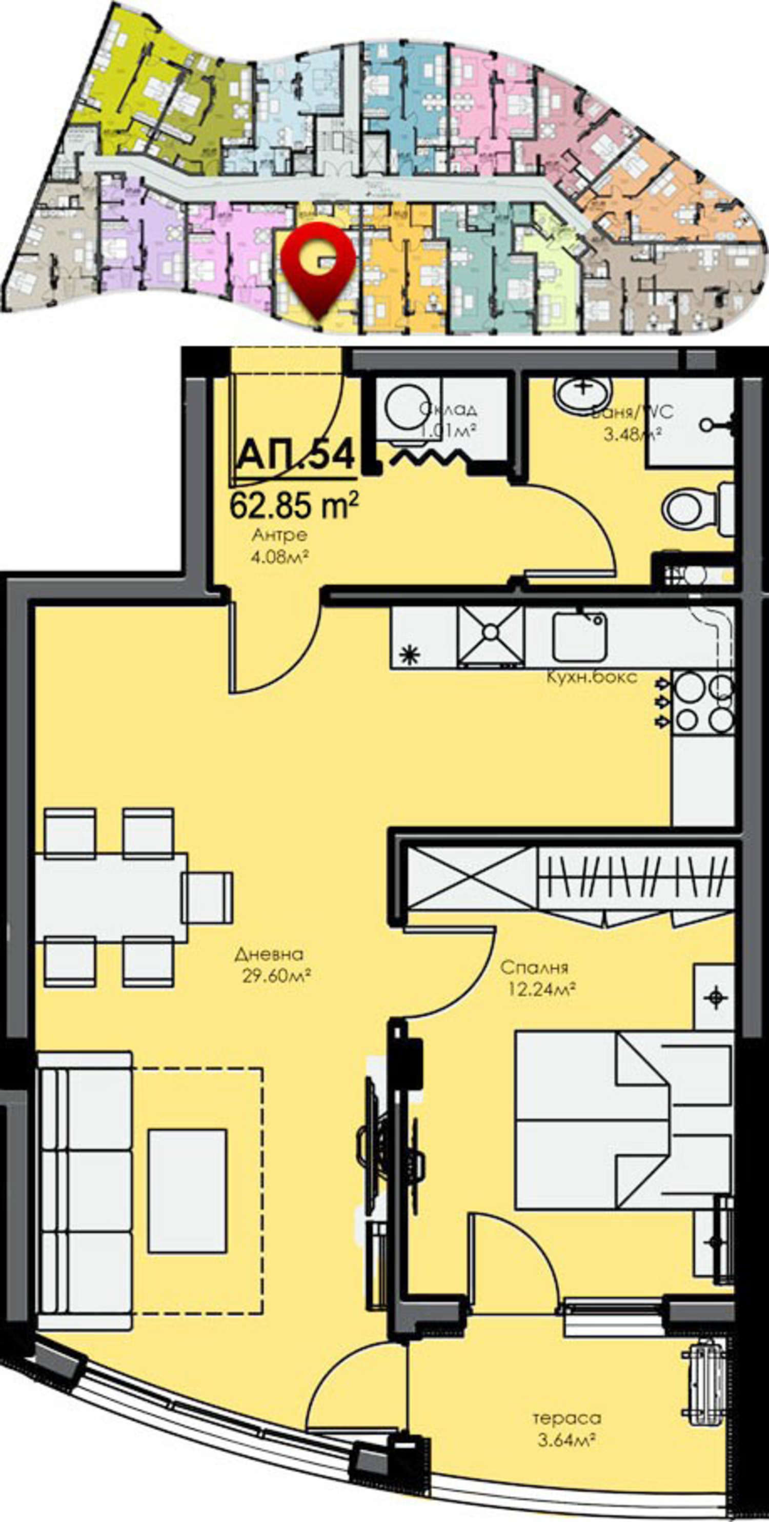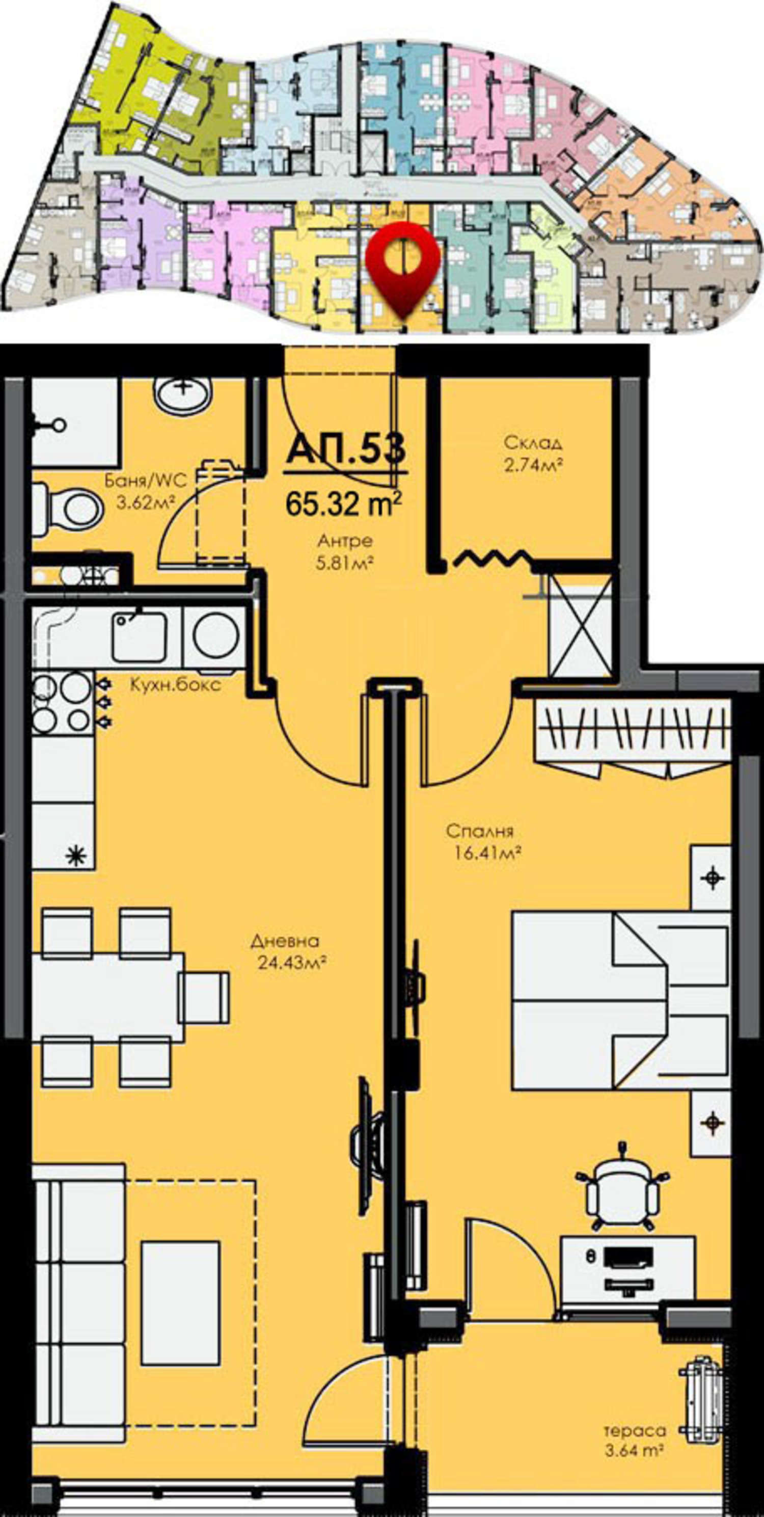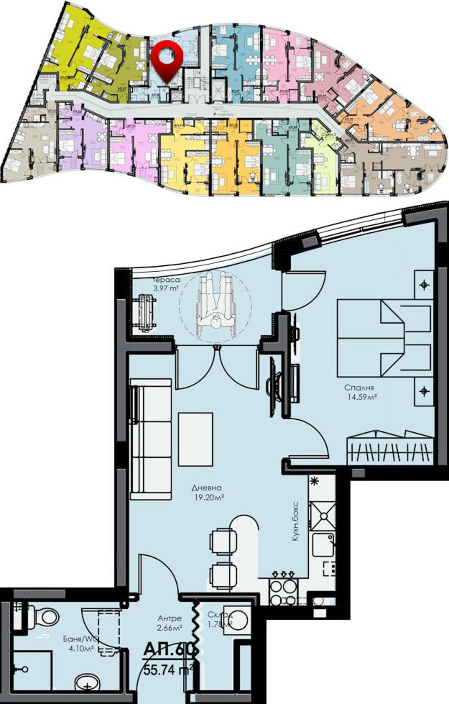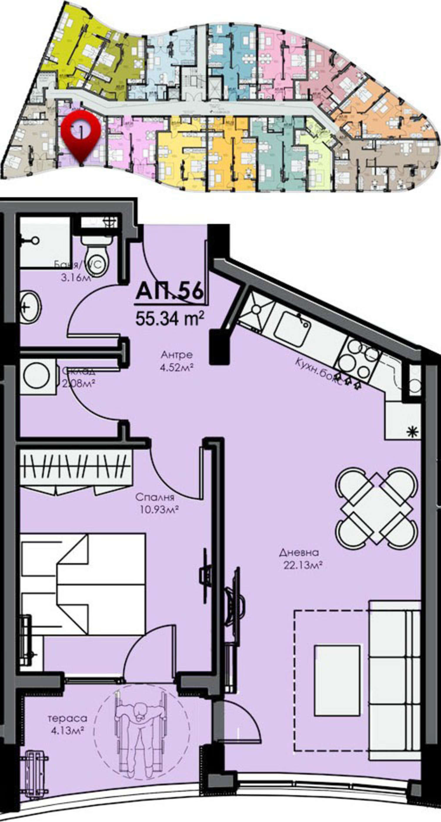 (2 249 €/м2) (4 398,66 лв./м2)Площ: 64.24 м2 Етаж: 5