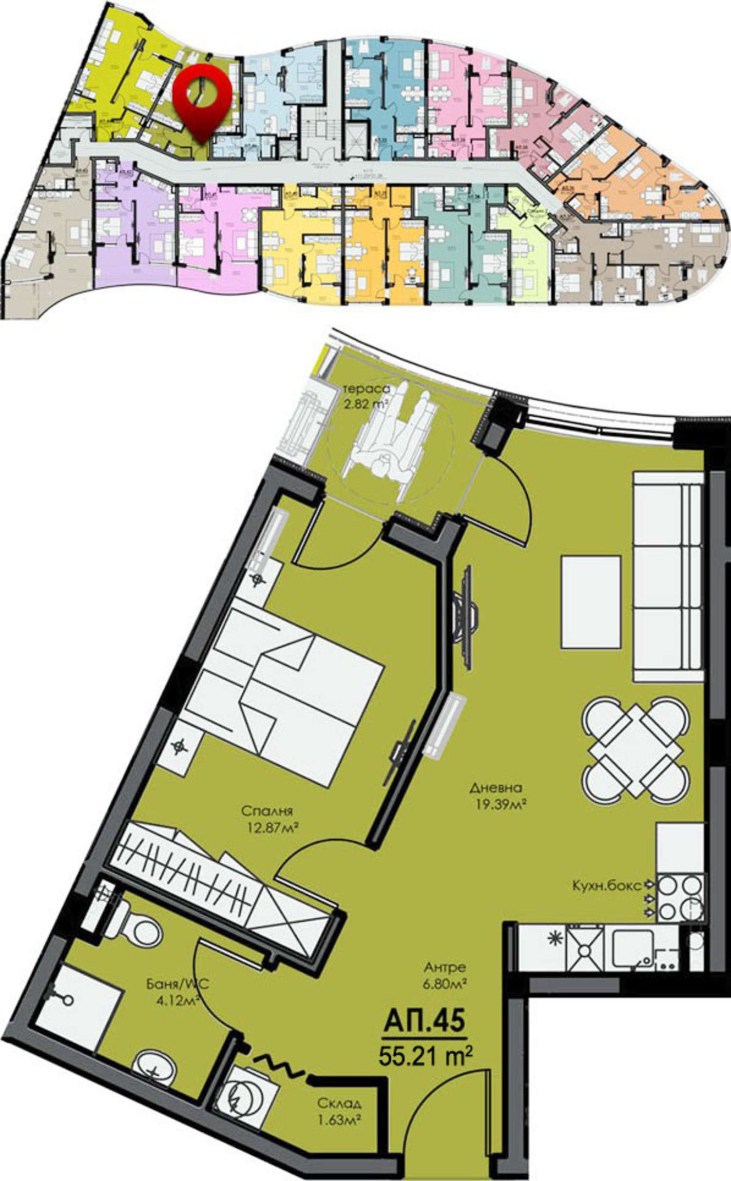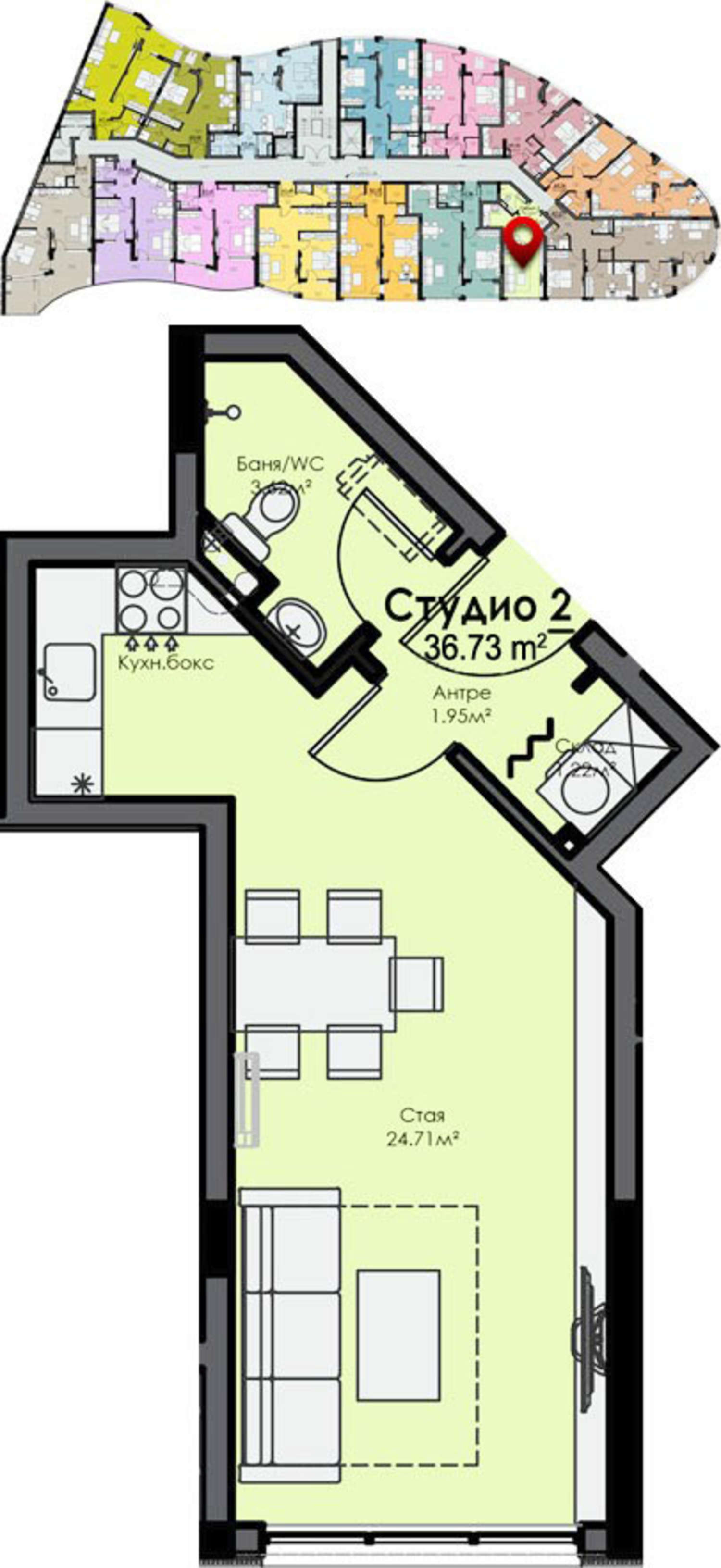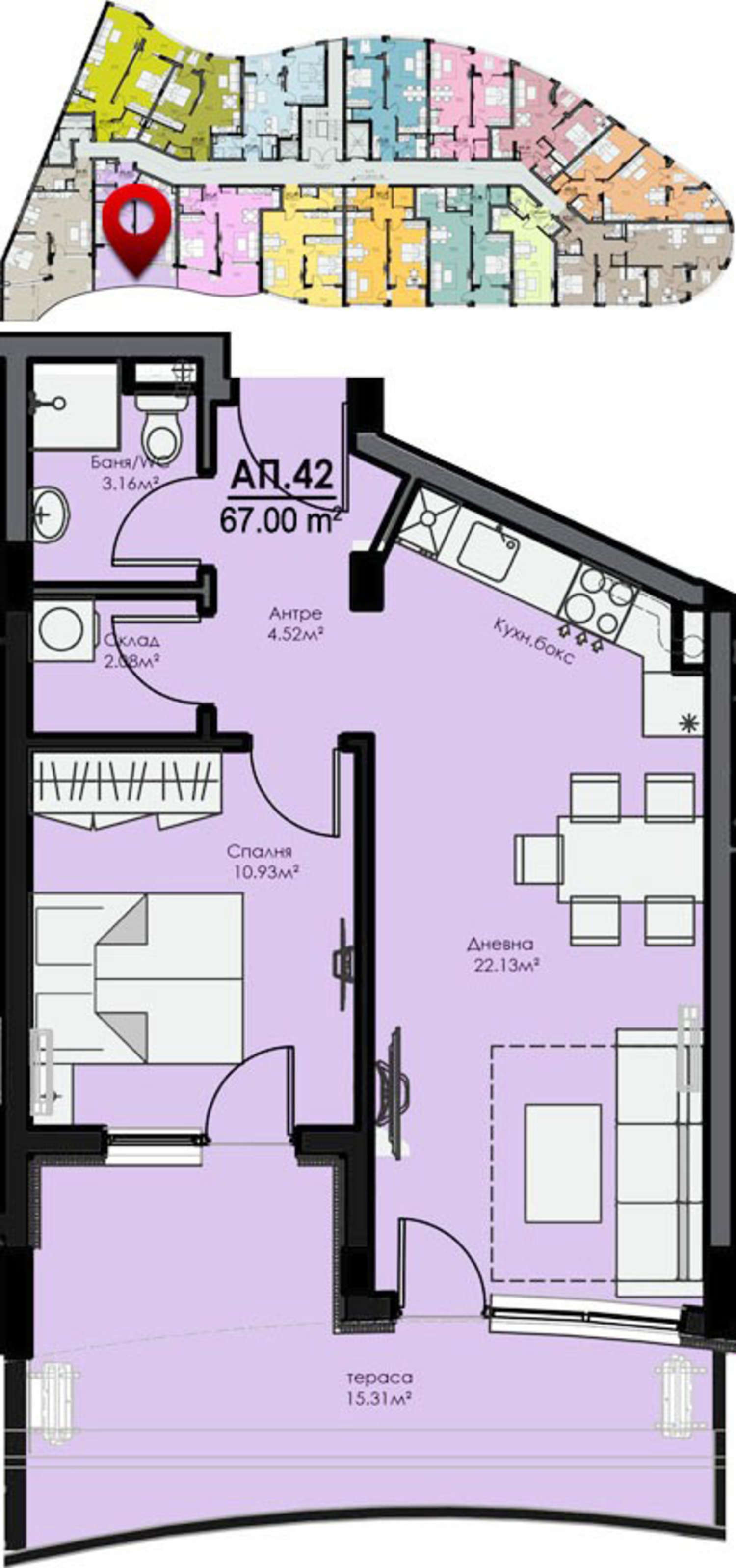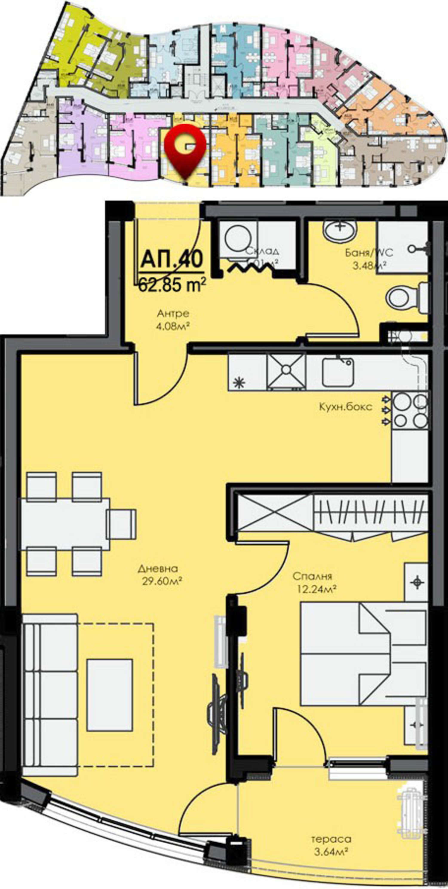 (2 249 €/м2) (4 398,66 лв./м2)Площ: 64.24 м2 Етаж: 5