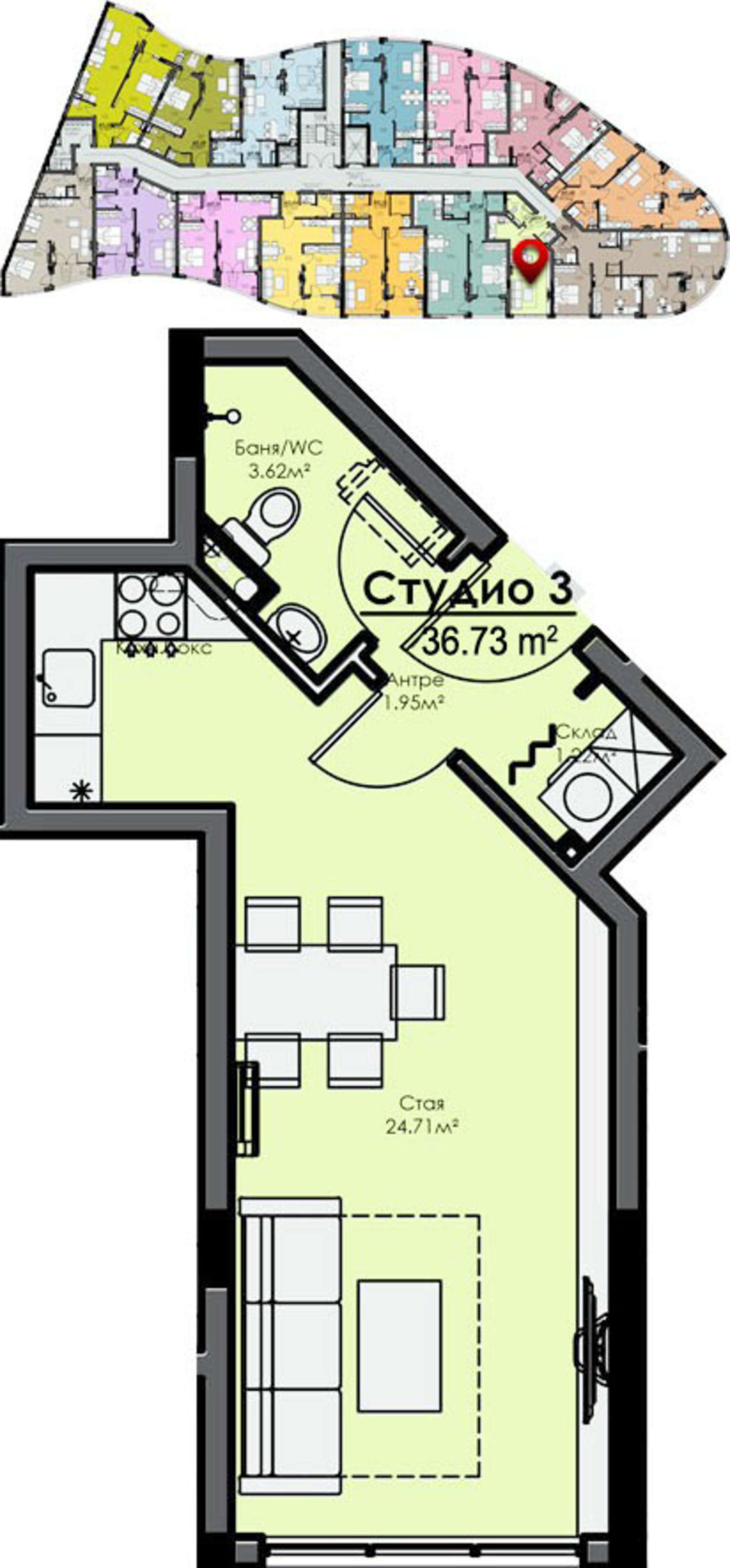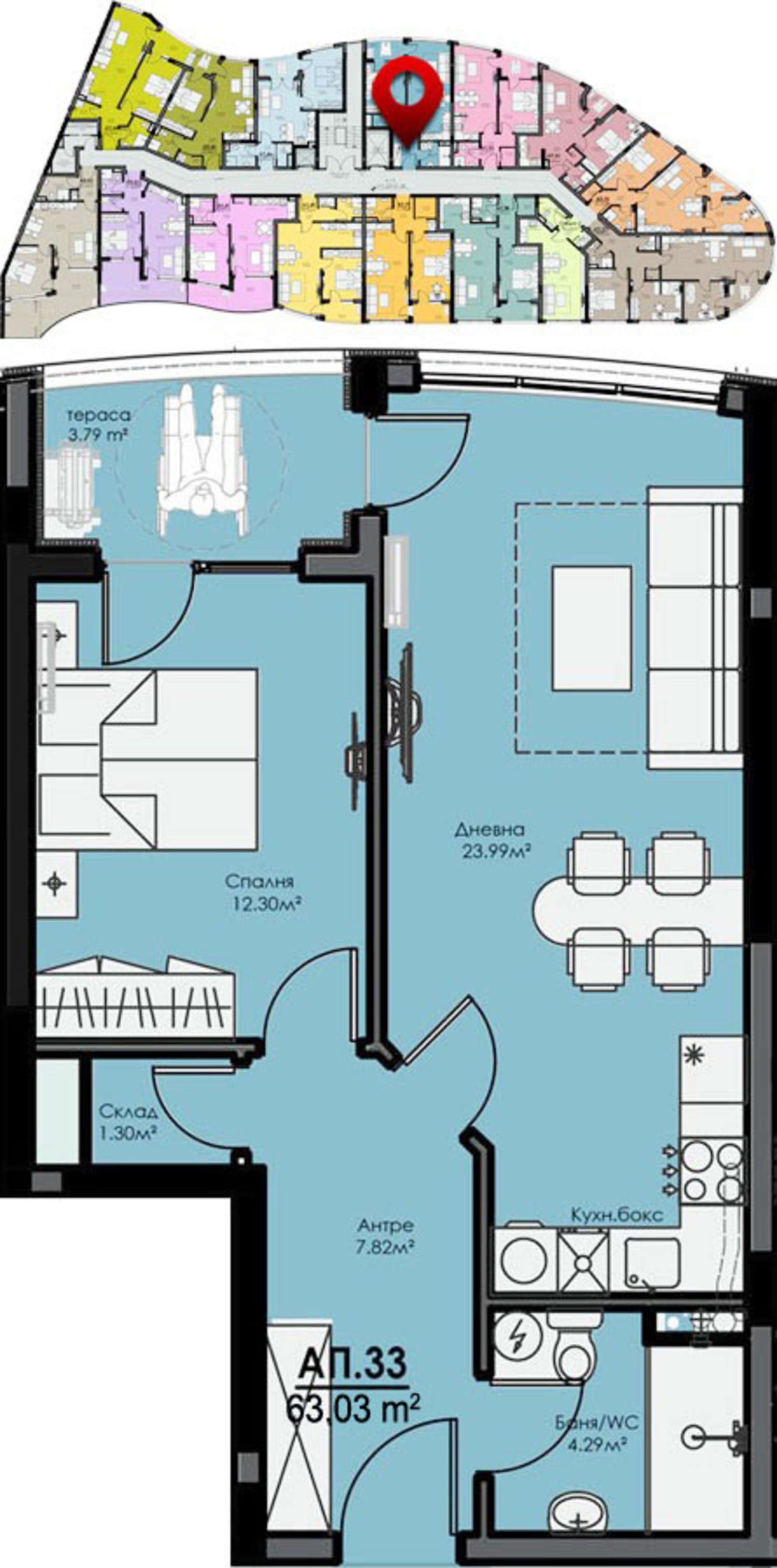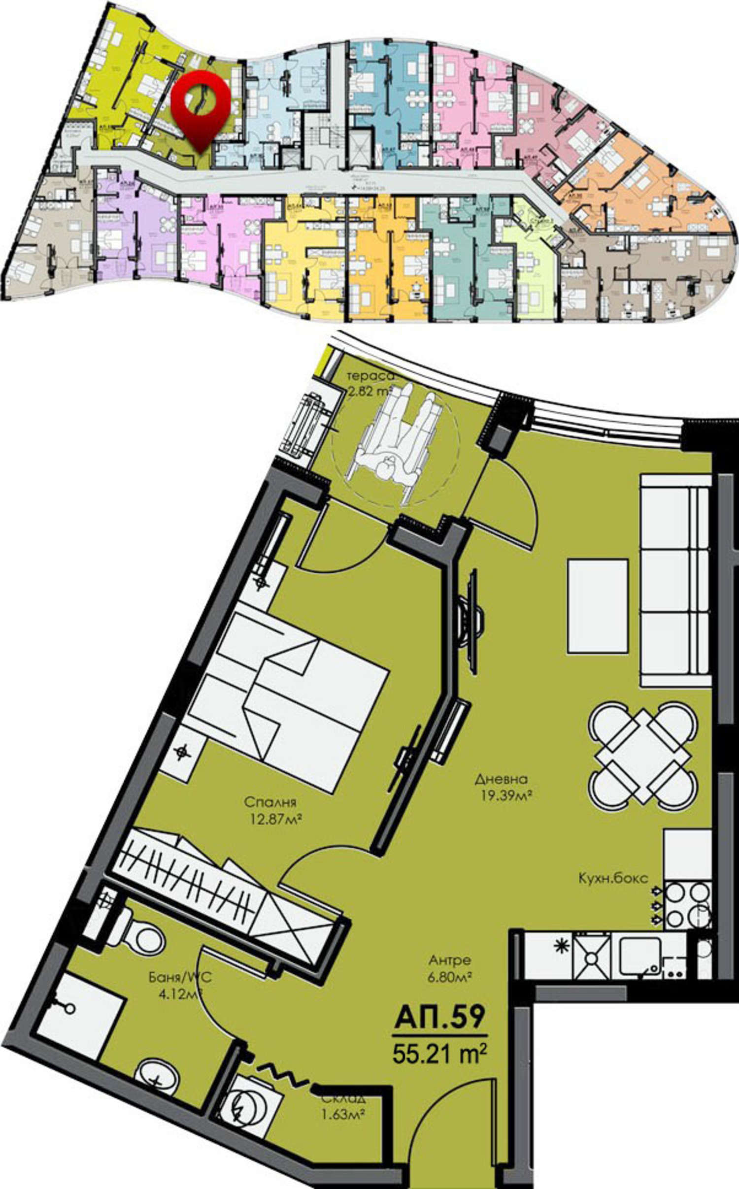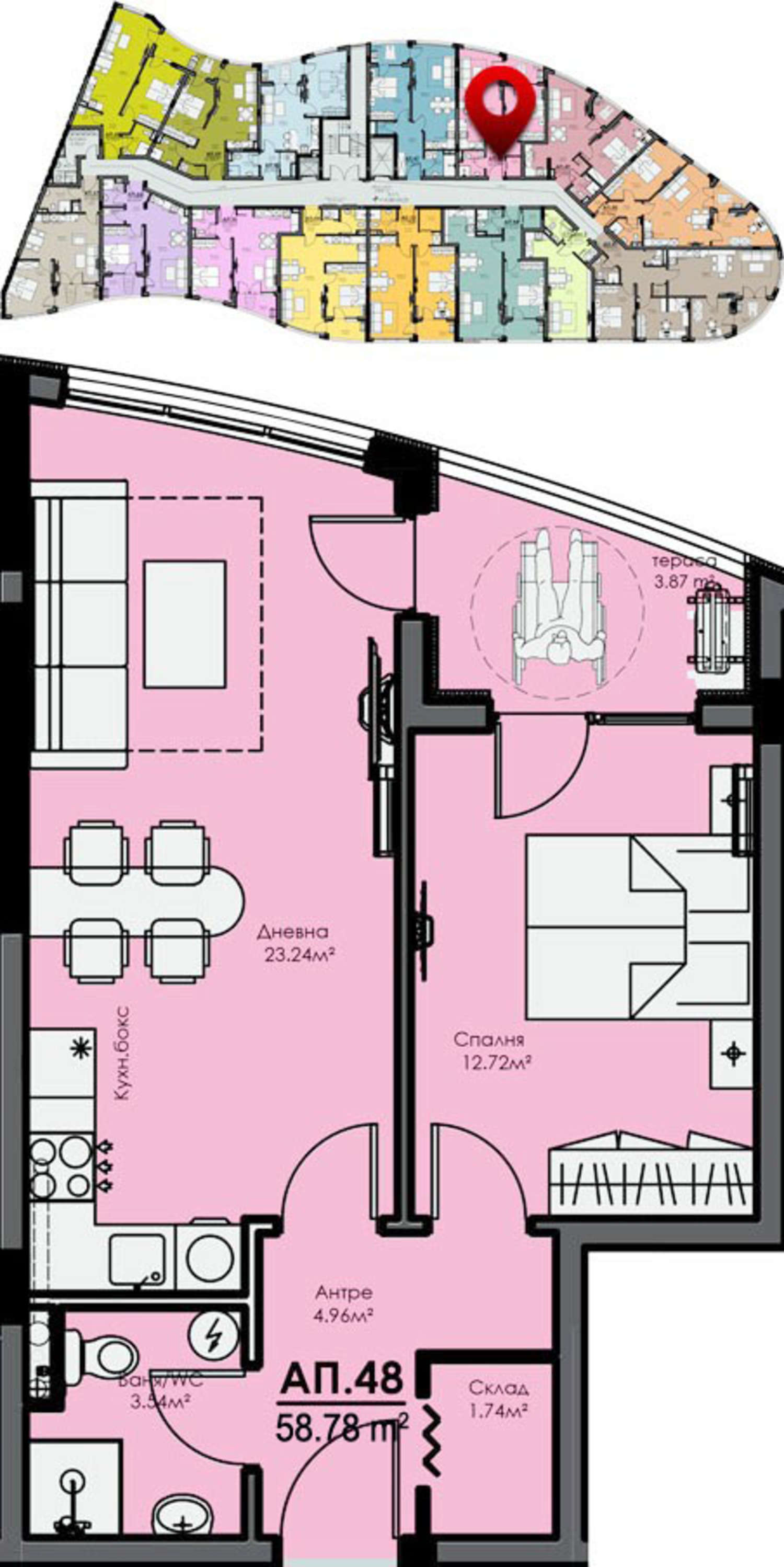 (2 249 €/м2) (4 398,66 лв./м2)Площ: 64.24 м2 Етаж: 5