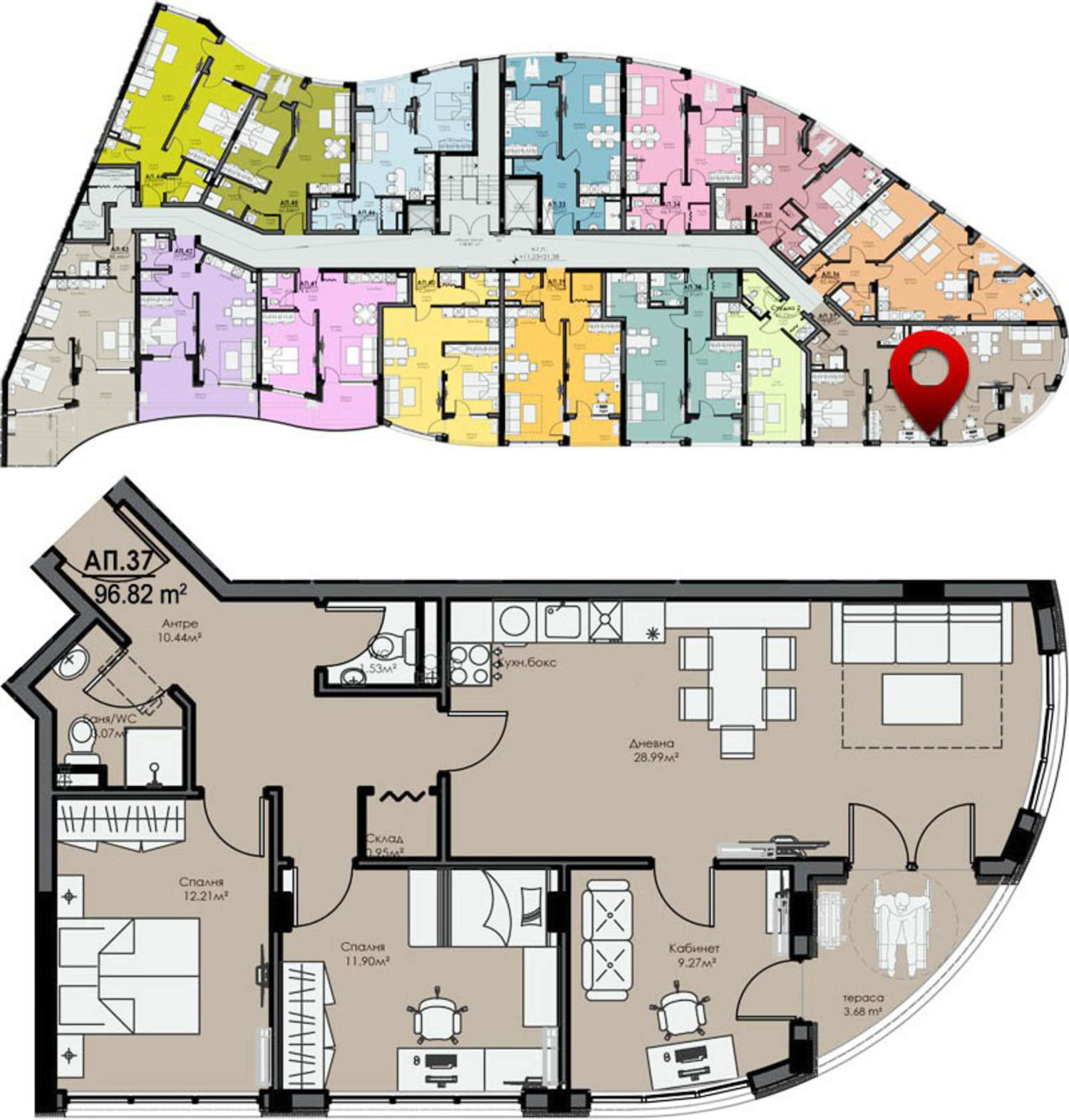 (2 429 €/м2) (4 750,71 лв./м2)Площ: 65.10 м2 Етаж: 4
