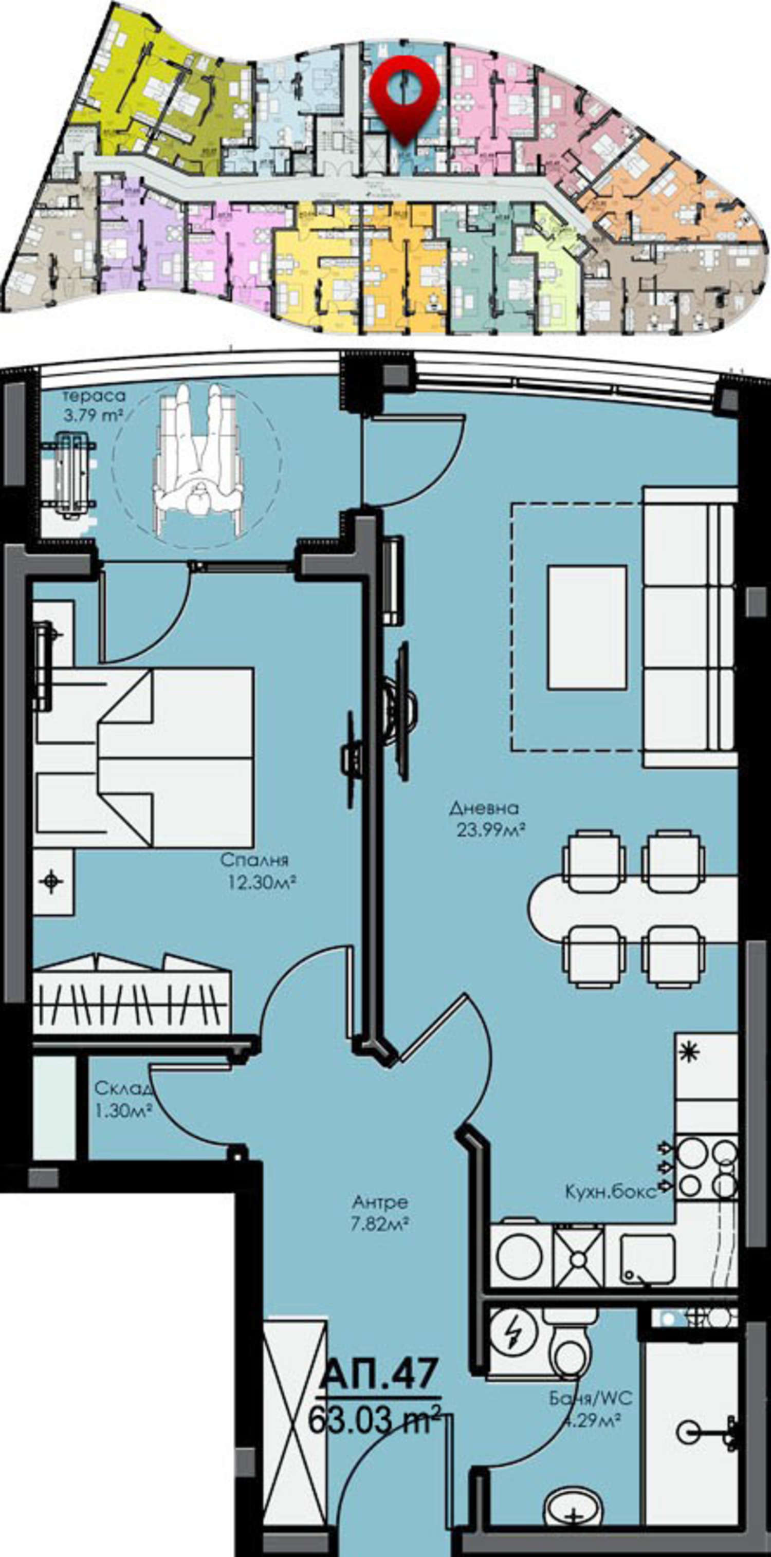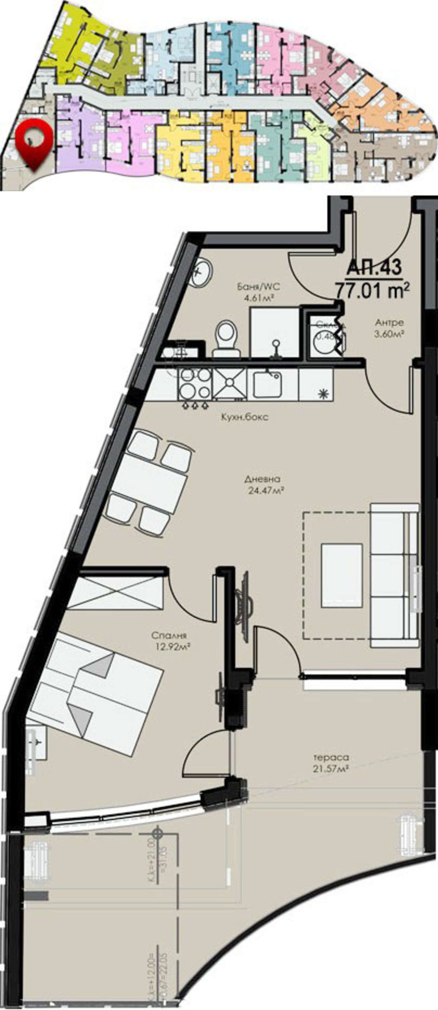 (2 429 €/м2) (4 750,71 лв./м2)Площ: 43.24 м2 Етаж: 4