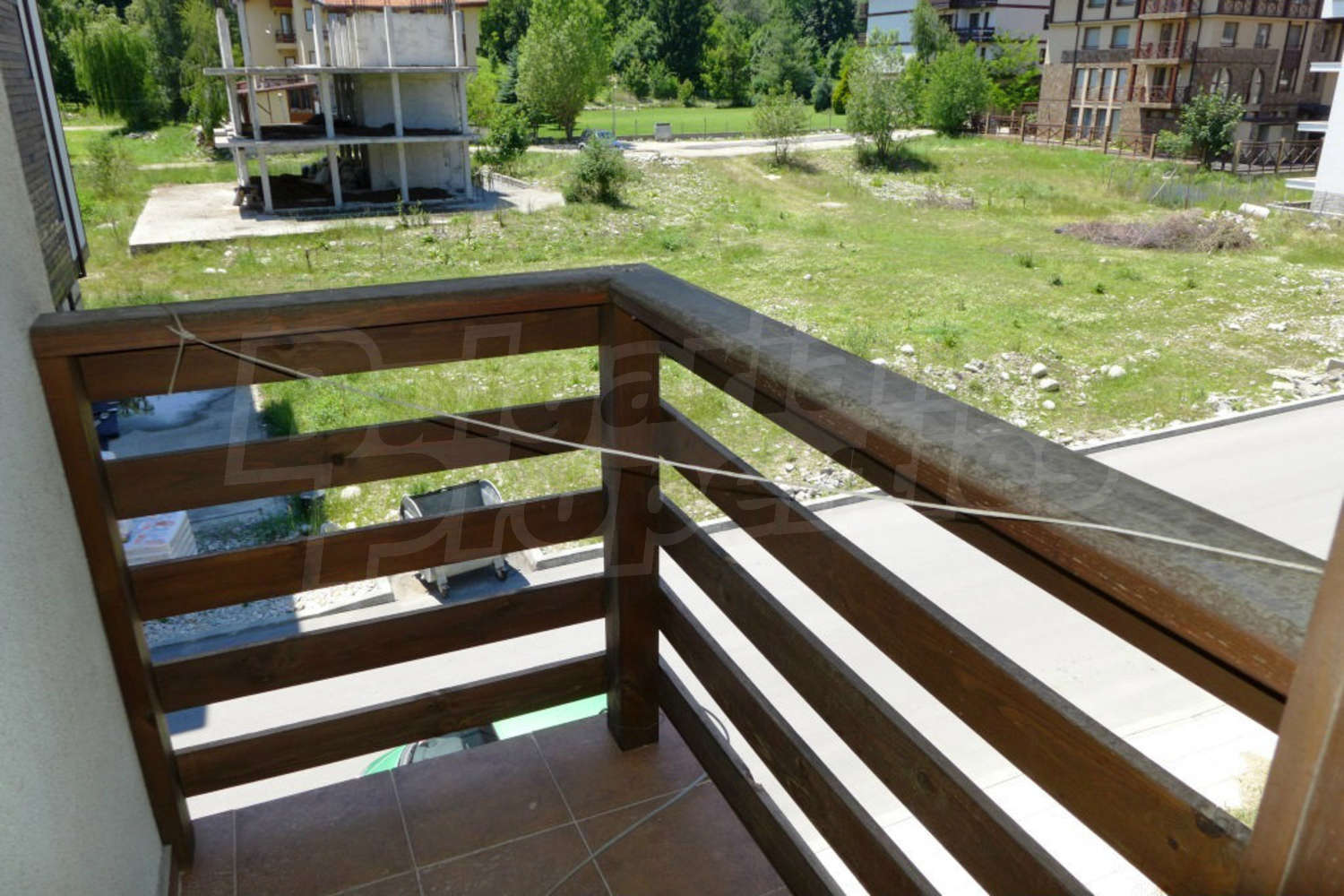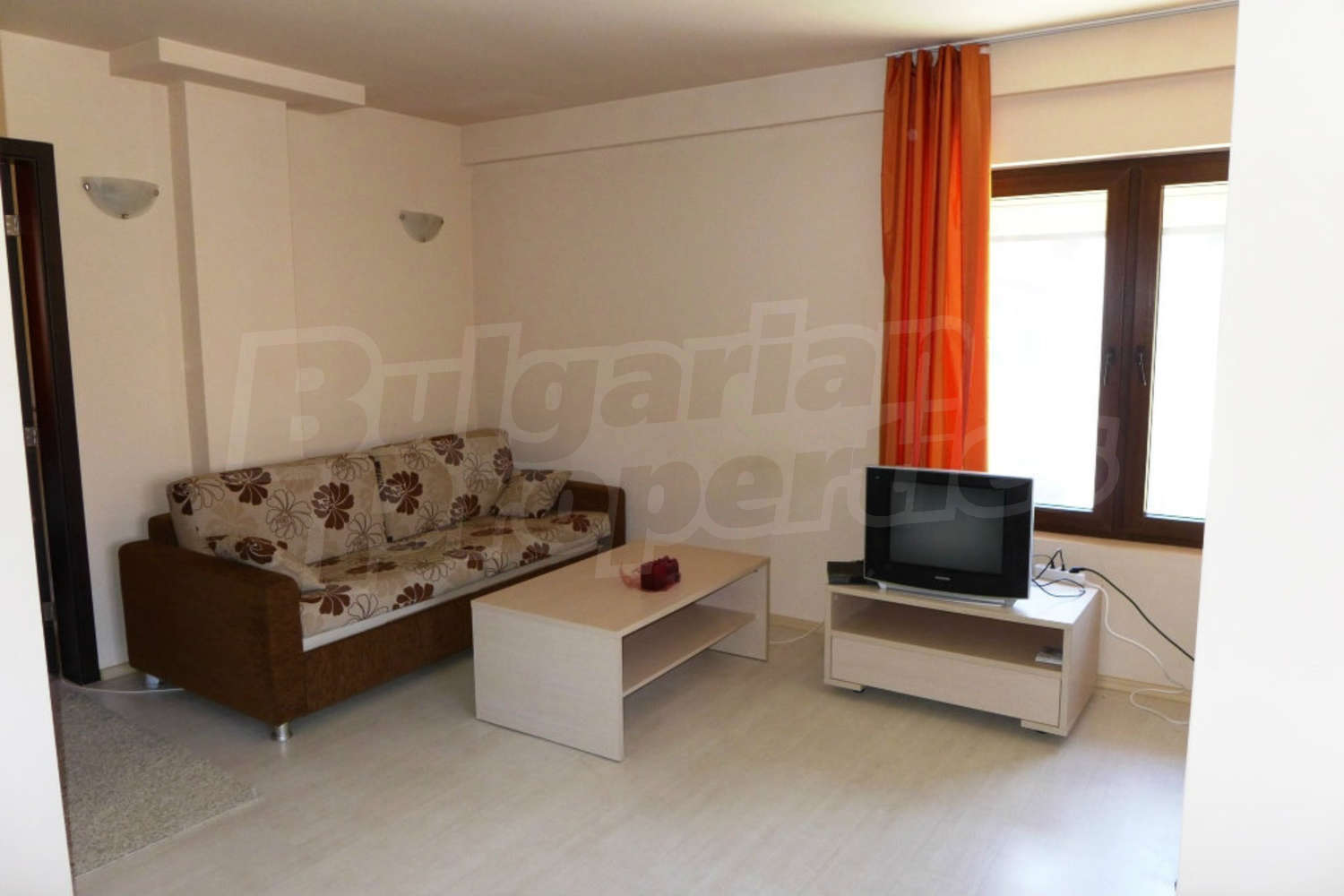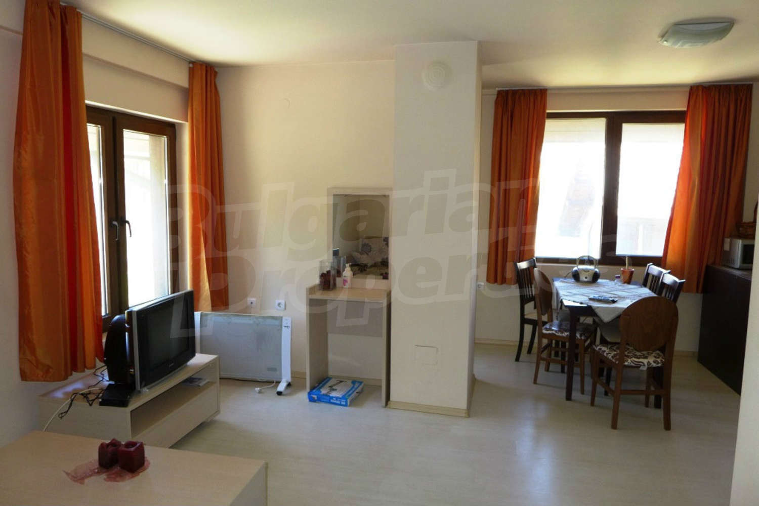 Двустаен апартамент в гр. Банско, напълно завършен и обзаведен с нови мебели и уреди. Намира се на трети етаж в новопостроена жилищна сграда с Aкт 16, в тихата част на града, изолиран от големите комплекси, хотели и увеселителни заведения. Стилът на сградата е в традиционната за Банско архитектура. Разполага с вътрешен двор и подземен паркинг. В подземния етаж са предвидени сауна и фитнес зона за ползване от собствениците.