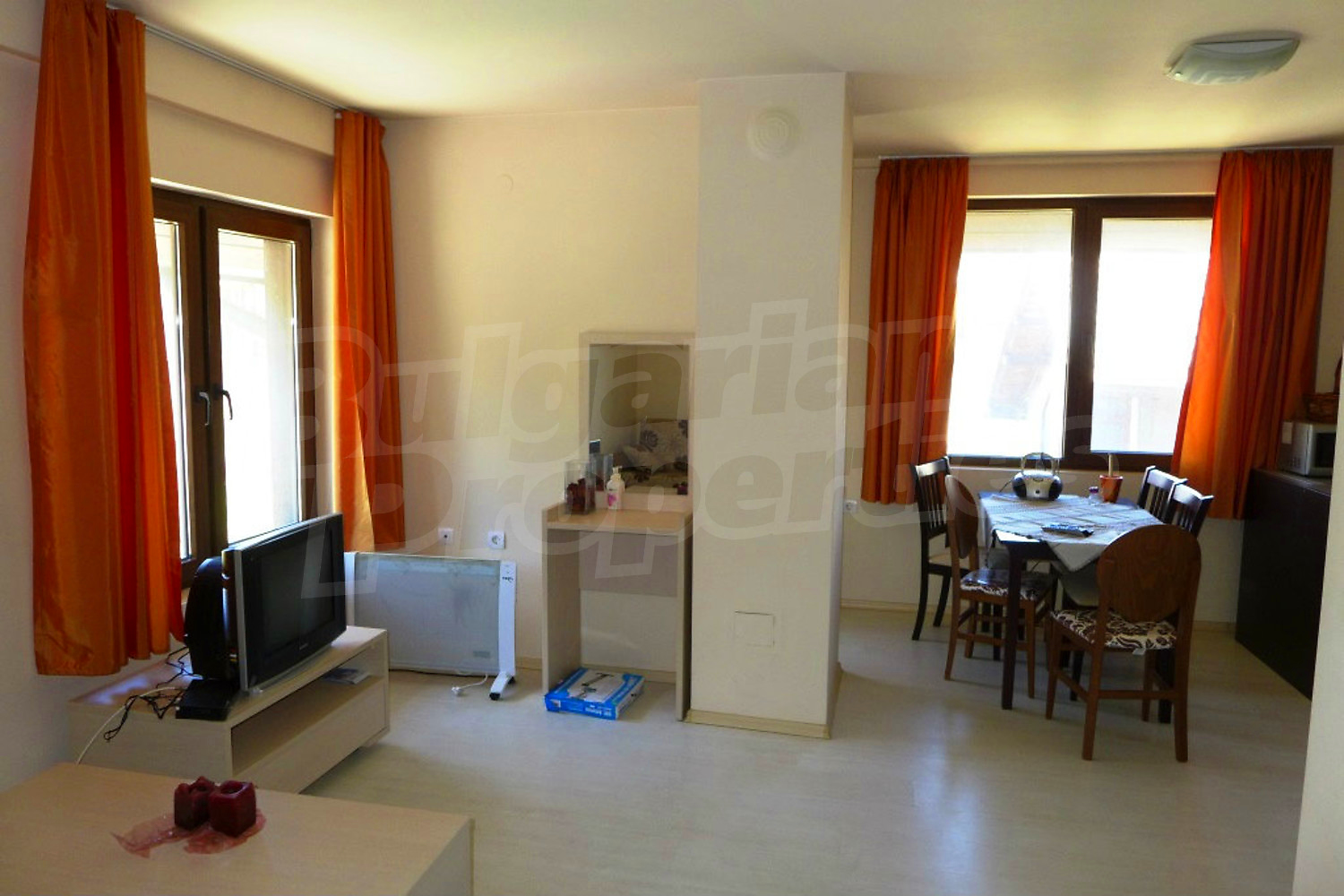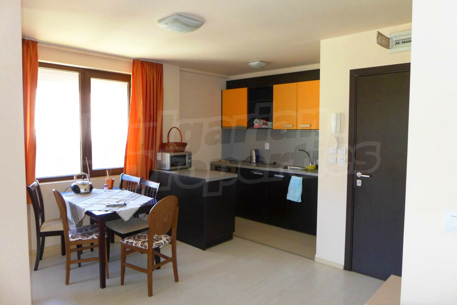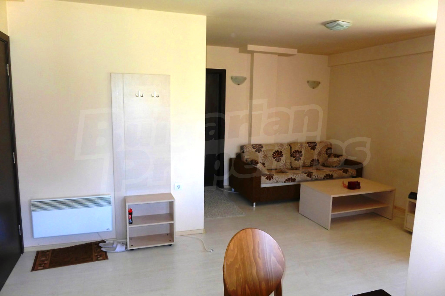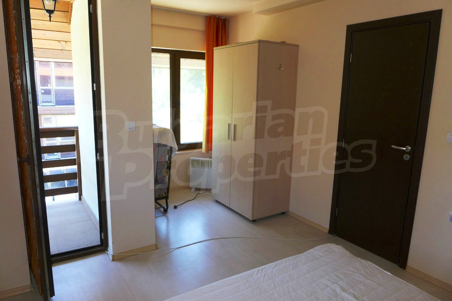 Двустаен апартамент в гр. Банско, напълно завършен и обзаведен с нови мебели и уреди. Намира се на трети етаж в новопостроена жилищна сграда с Aкт 16, в тихата част на града, изолиран от големите комплекси, хотели и увеселителни заведения. Стилът на сградата е в традиционната за Банско архитектура. Разполага с вътрешен двор и подземен паркинг. В подземния етаж са предвидени сауна и фитнес зона за ползване от собствениците.