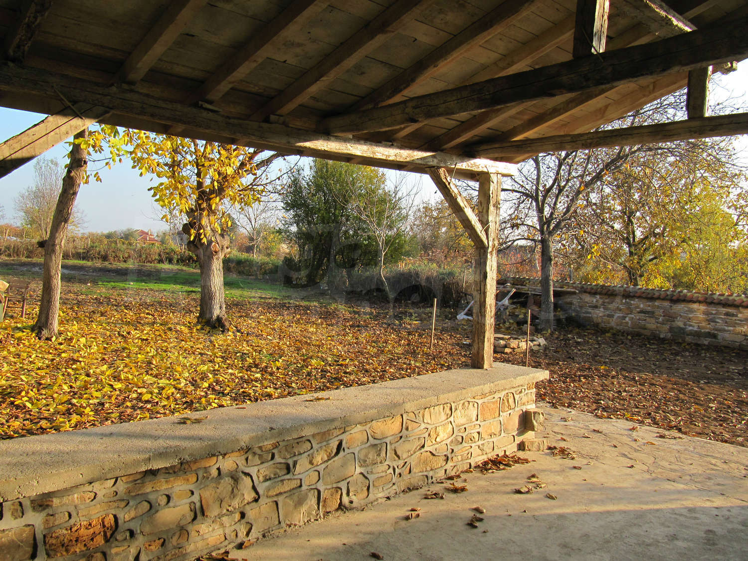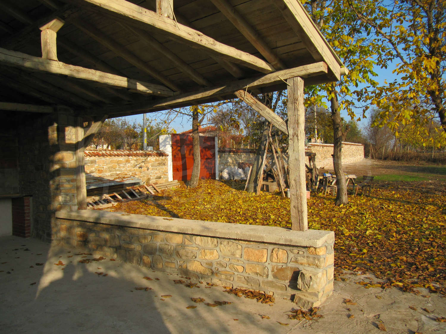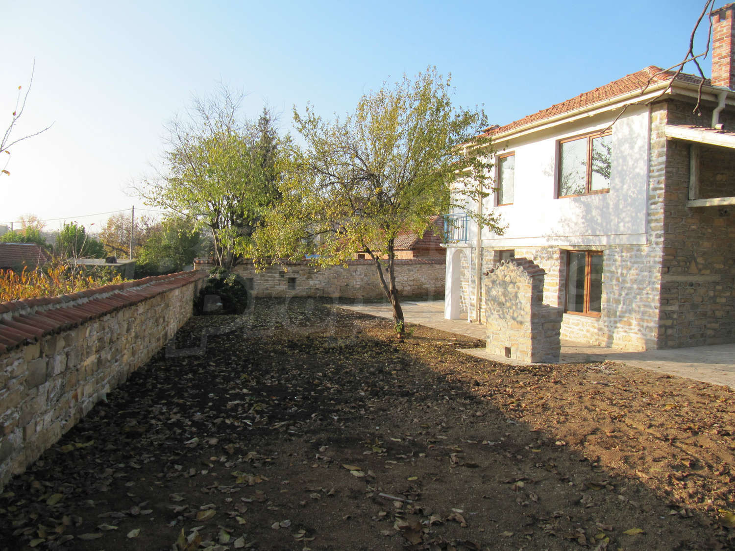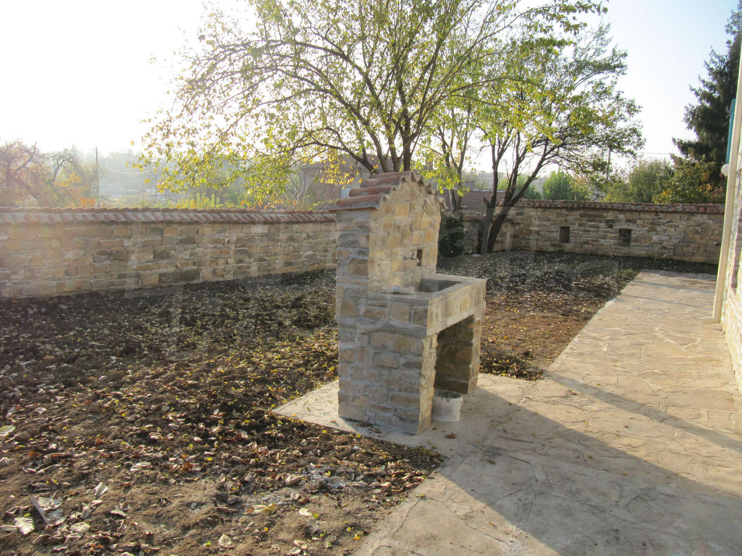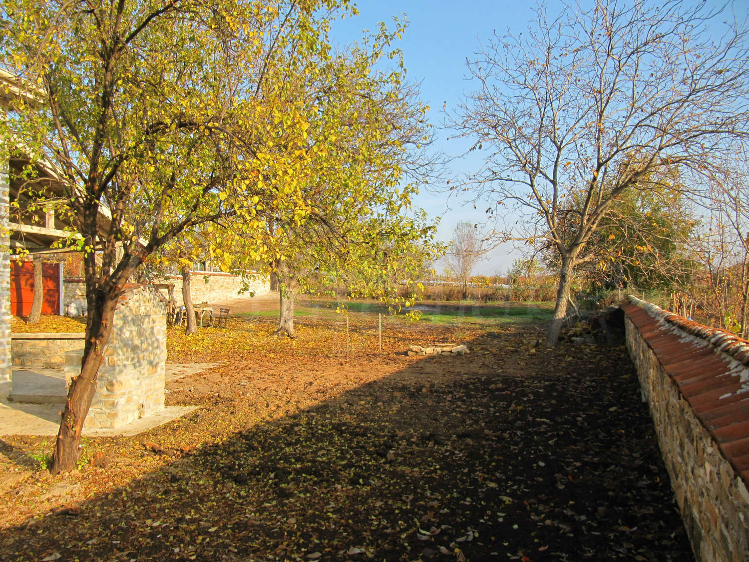 В поддържания двор, засаден с орехи и плодни дървета, ще откриете навес с кухня и барбекю с площ 28 кв.м.