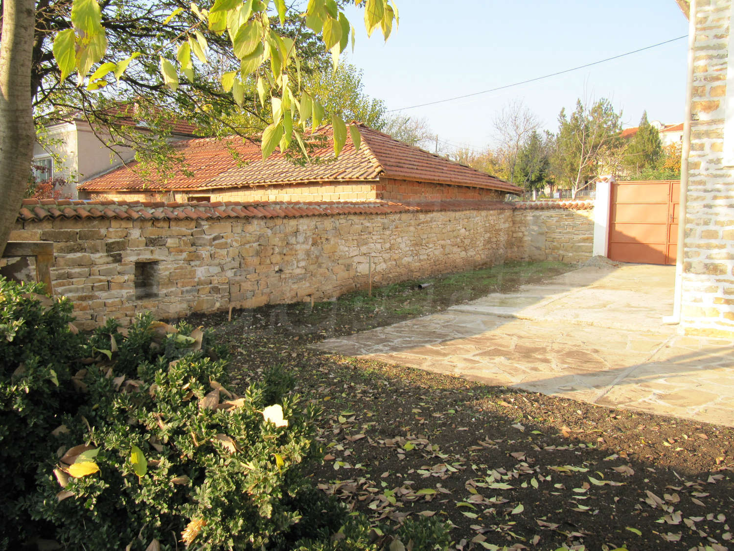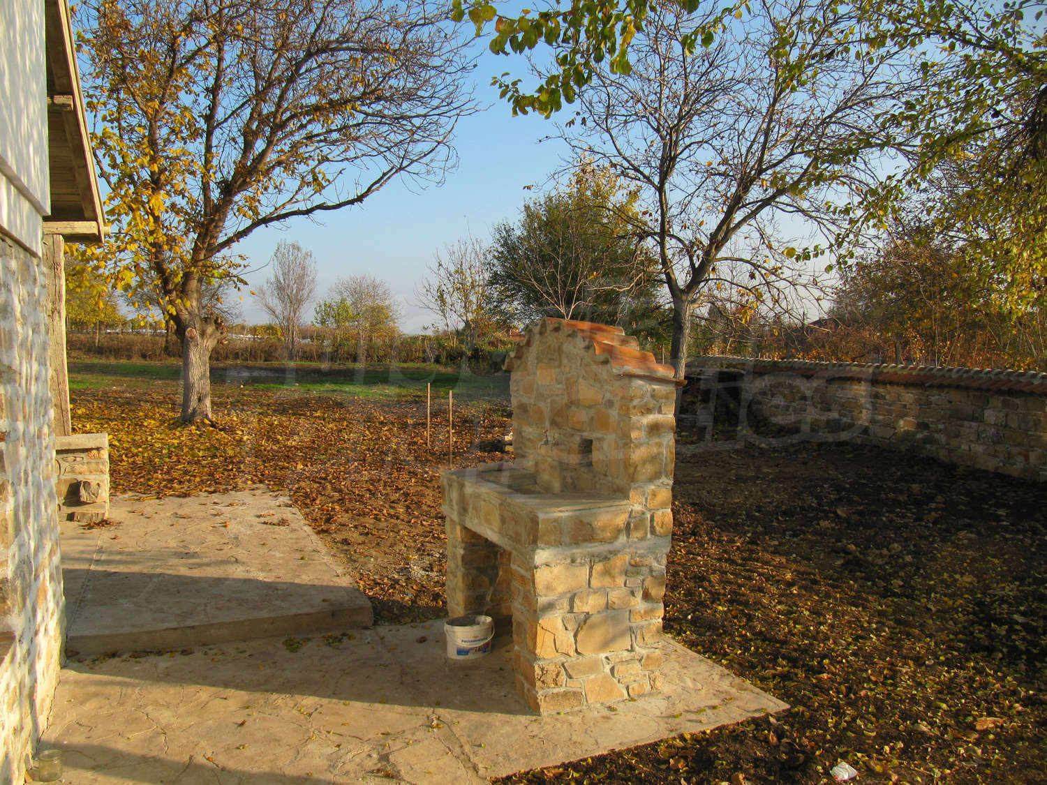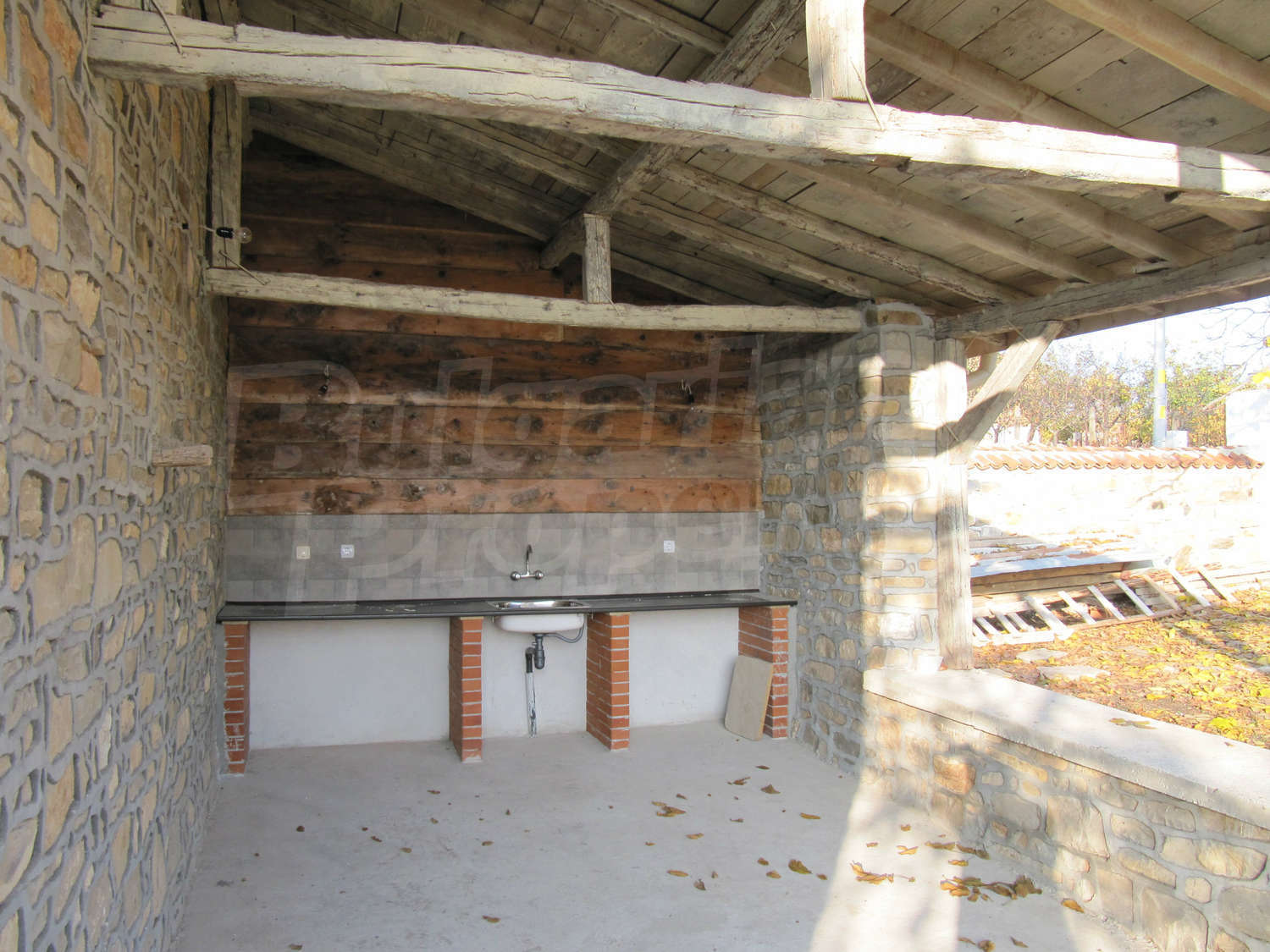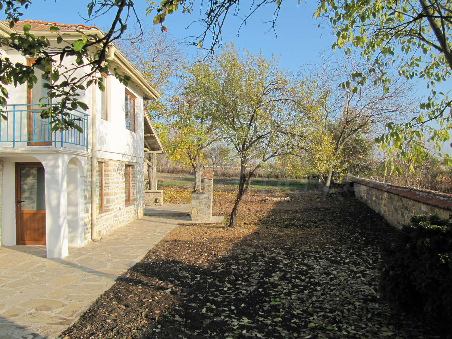 В поддържания двор, засаден с орехи и плодни дървета, ще откриете навес с кухня и барбекю с площ 28 кв.м.