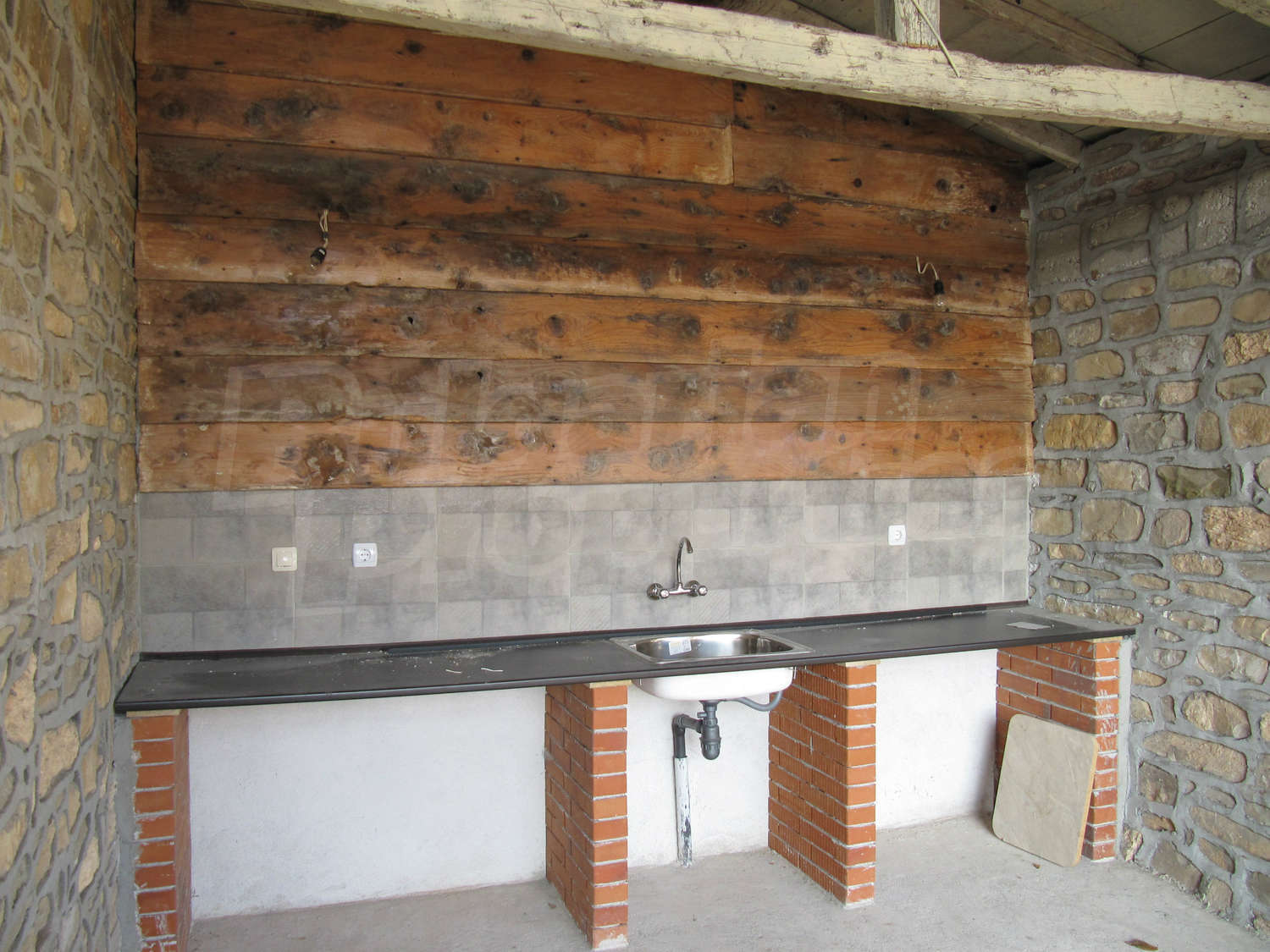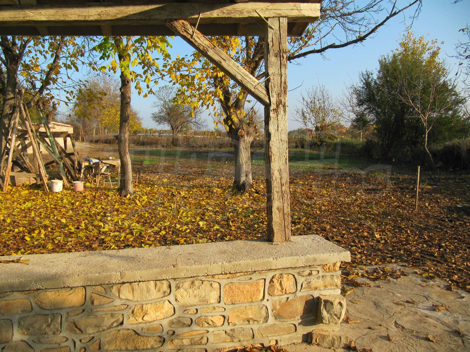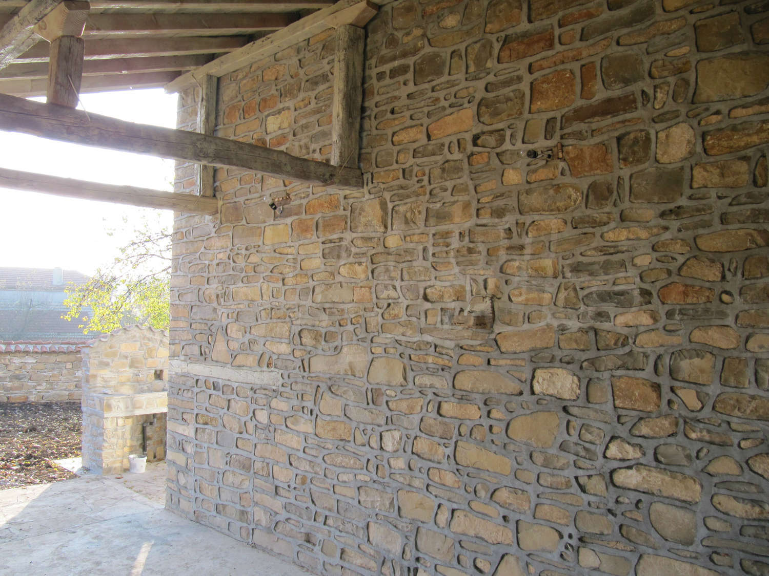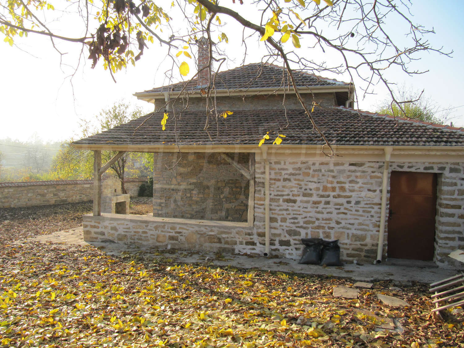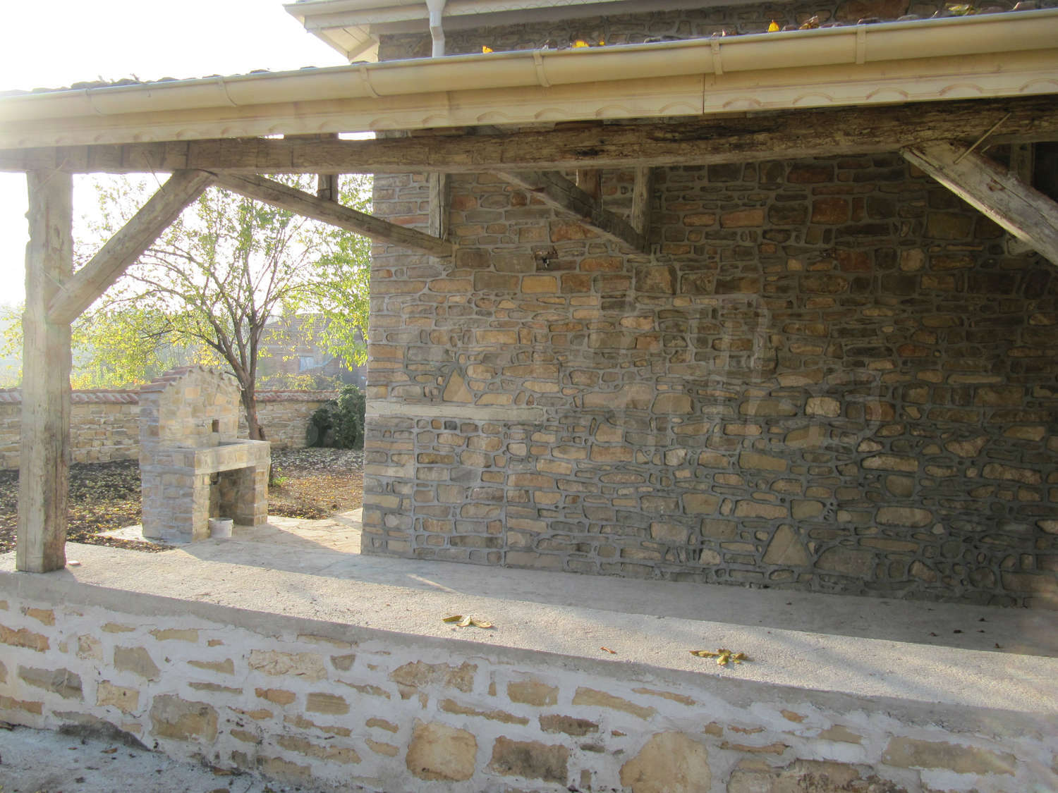 В поддържания двор, засаден с орехи и плодни дървета, ще откриете навес с кухня и барбекю с площ 28 кв.м.
