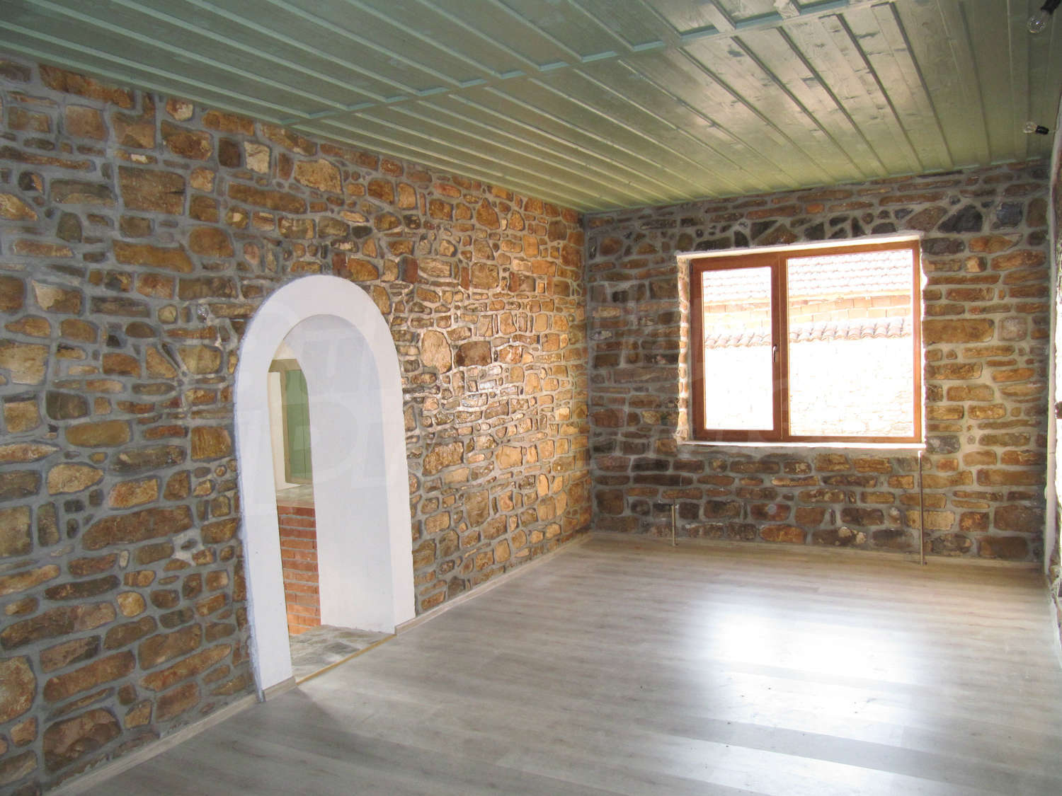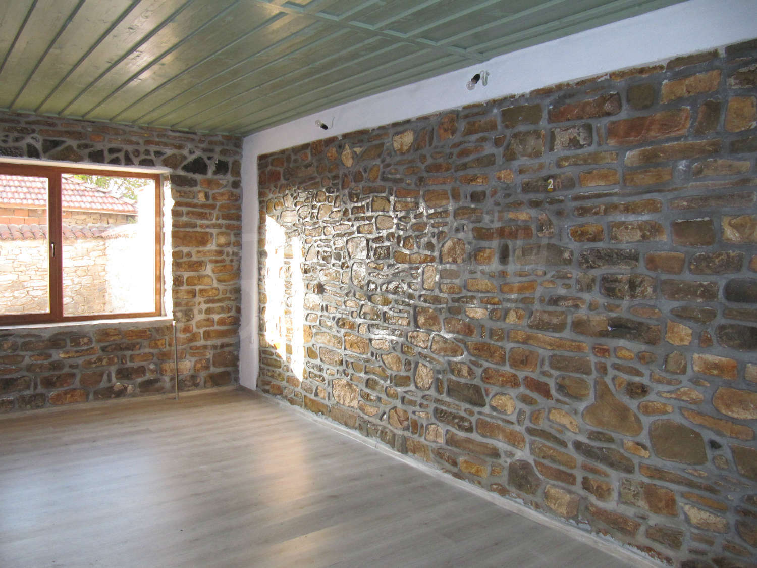 Жилищната площ се разпределя по елегантен начин между първи етаж с хол, кухня, коридор, спалня, баня и тоалетна и втори етаж с коридор, две спални, баня и WC и тераса с прекрасна гледка към поддържаната градина. Настилките в стаите на първия етаж са камък и ламинат, а на втория - дюшеме. Стените са от камък, а прозорци са ПВЦ. Имотът е снабден с ток, вода вътре и вън и септична яма. Прекарани са тръби за локално парно.