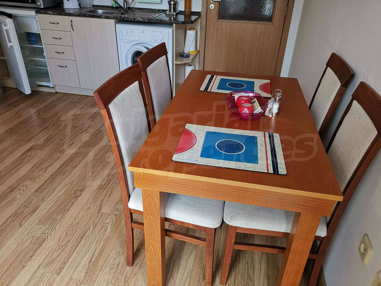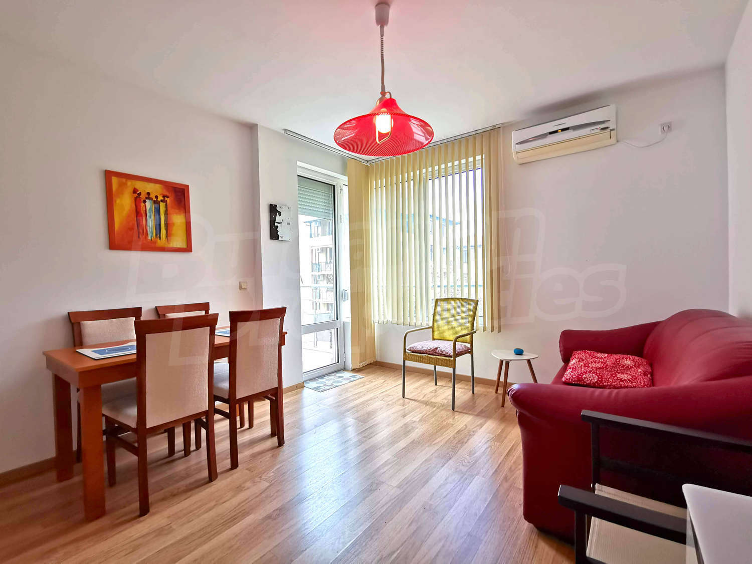 Апартаментът: двустаен апартамент с площ 56.76 кв.м и следното разпределение – антре, дневна с кухня, спалня, баня с тоалетна и душ, тераса. Апартаментът е цялостно и стилно обзаведен и оборудван, готов за ползване.