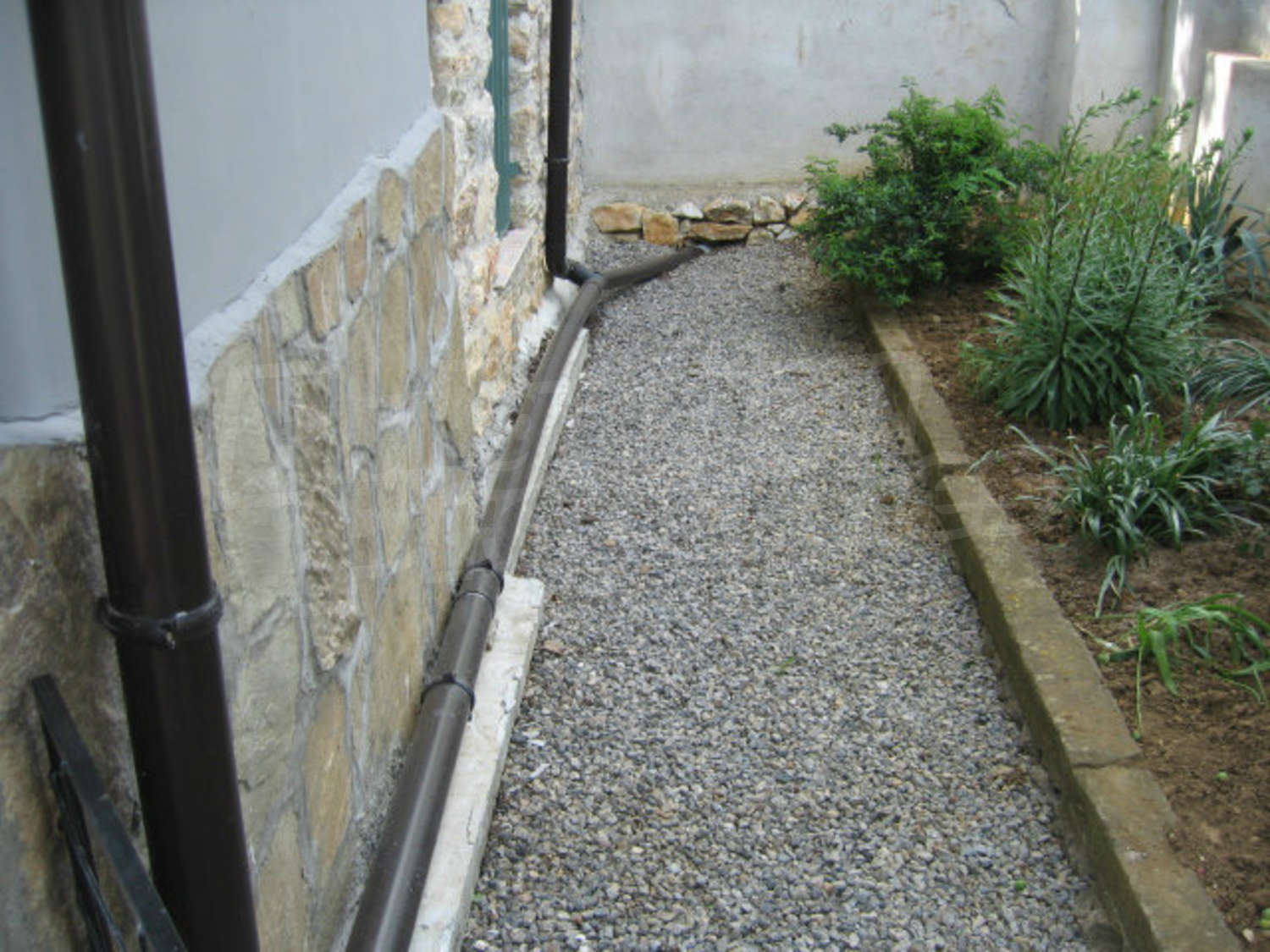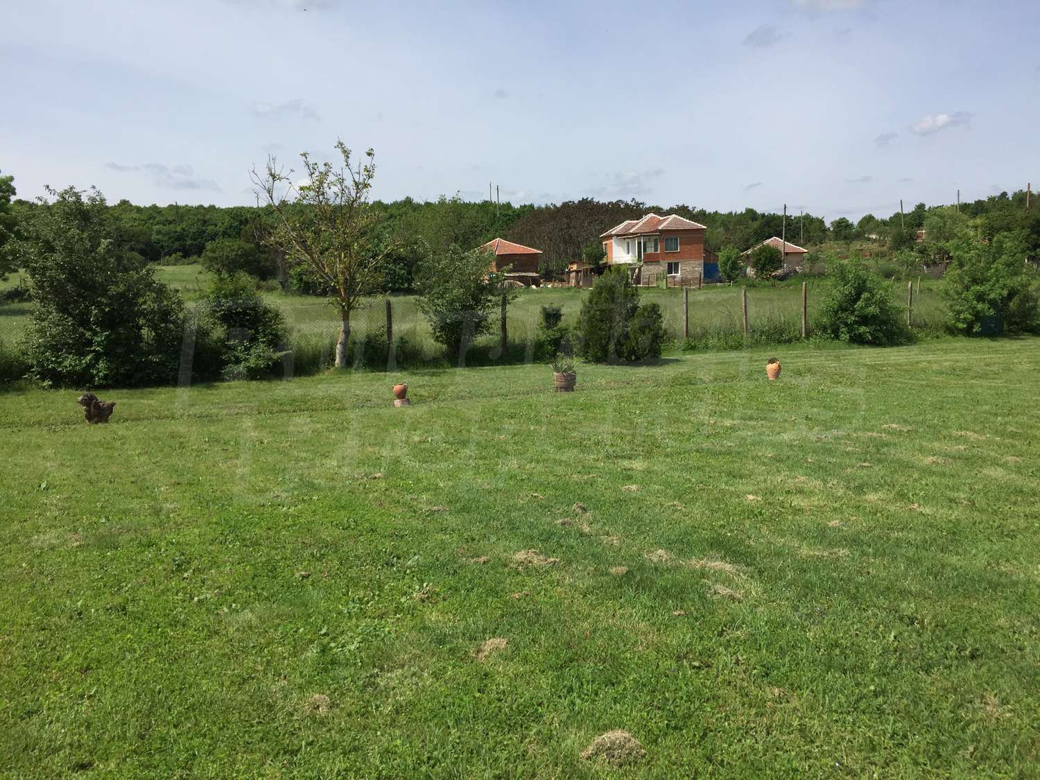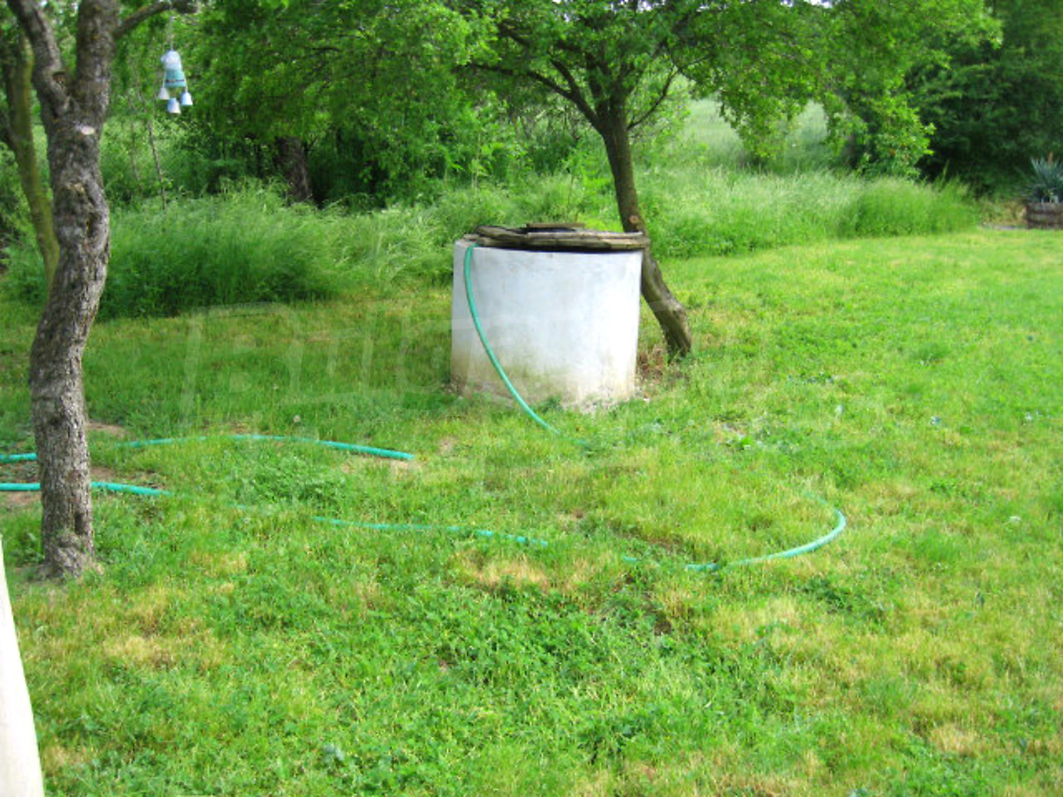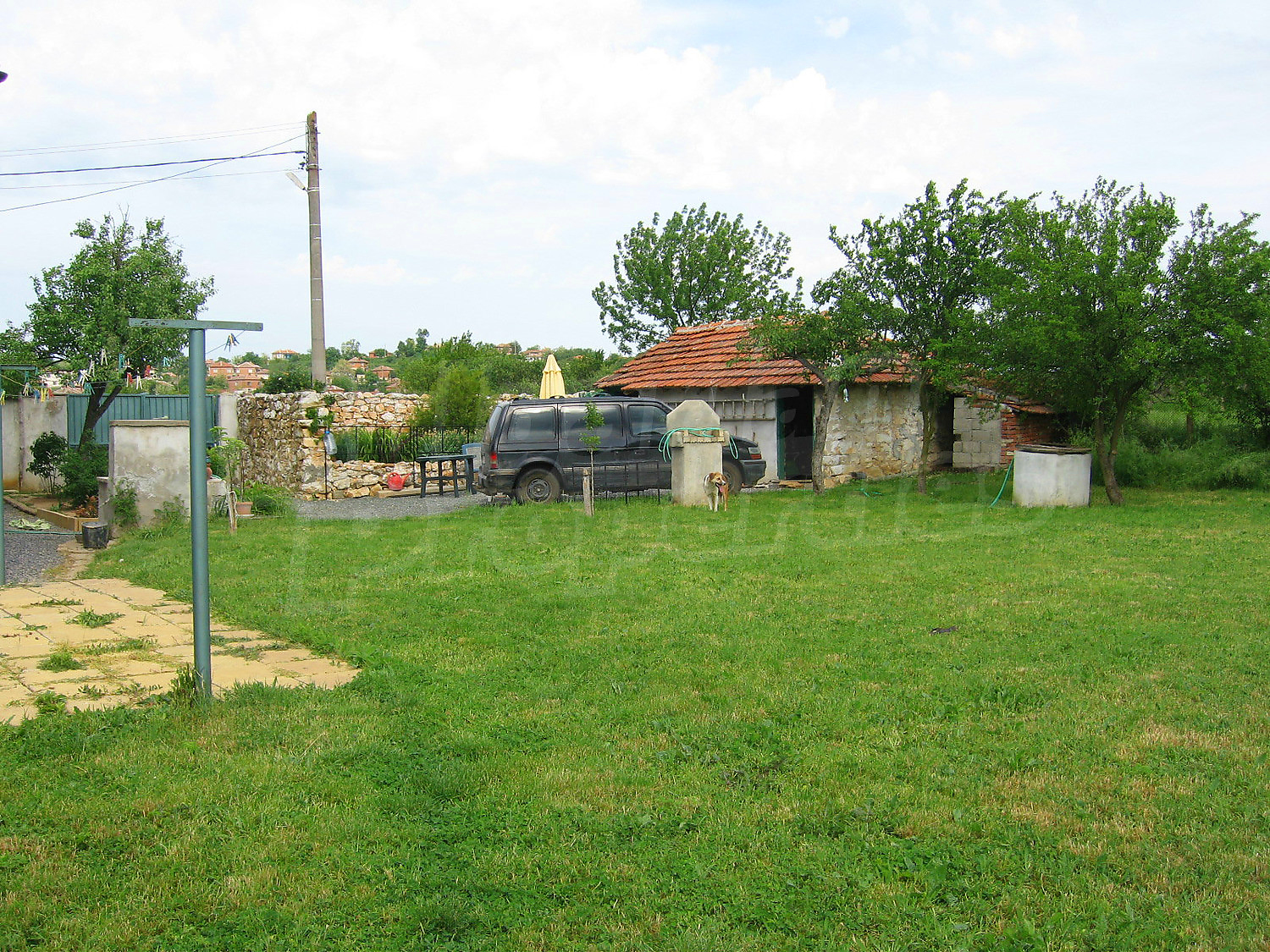 Дворът от 1340 кв.м. е засаден с овошки, райграс и цветя и разполага с кладенец за напояване, навес, работилница и паркинг за три коли. Имотът разкрива прекрасна гледка към гора и съседните къщи.