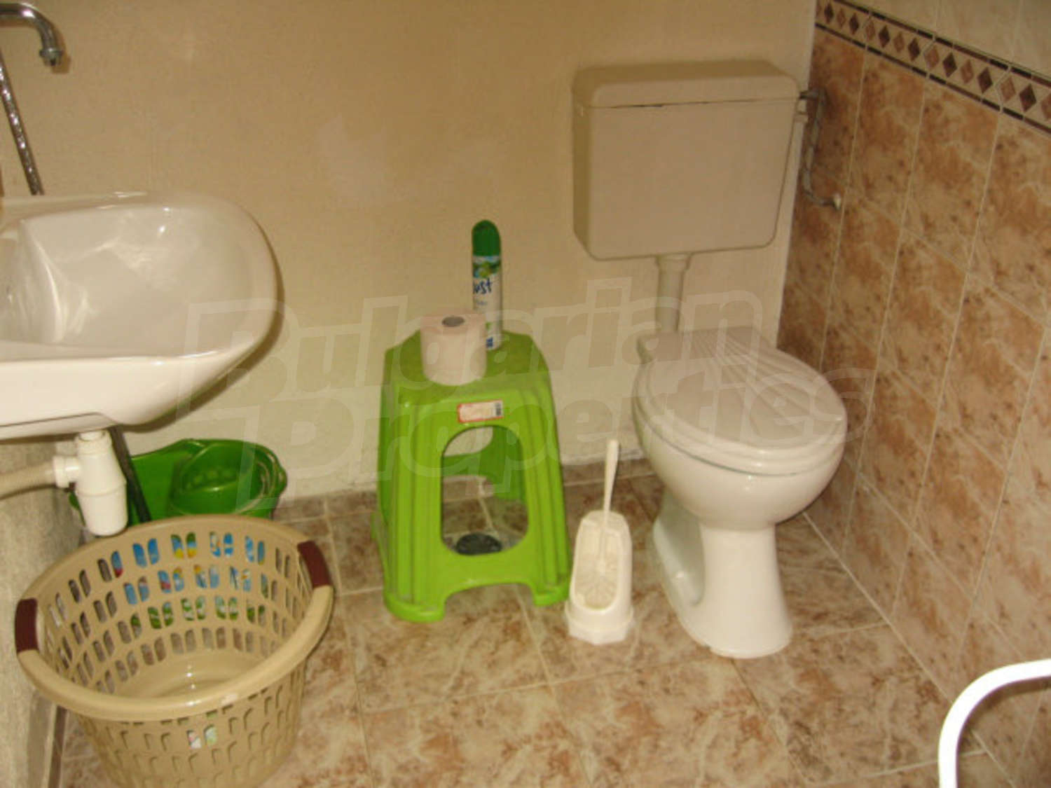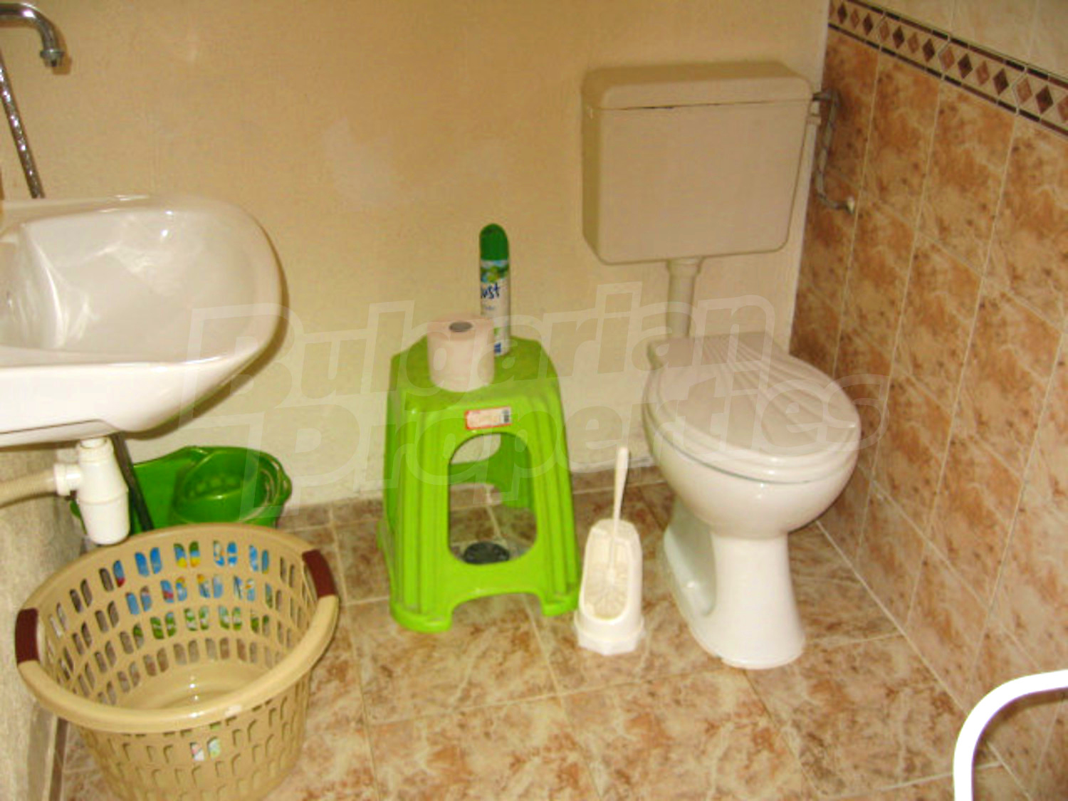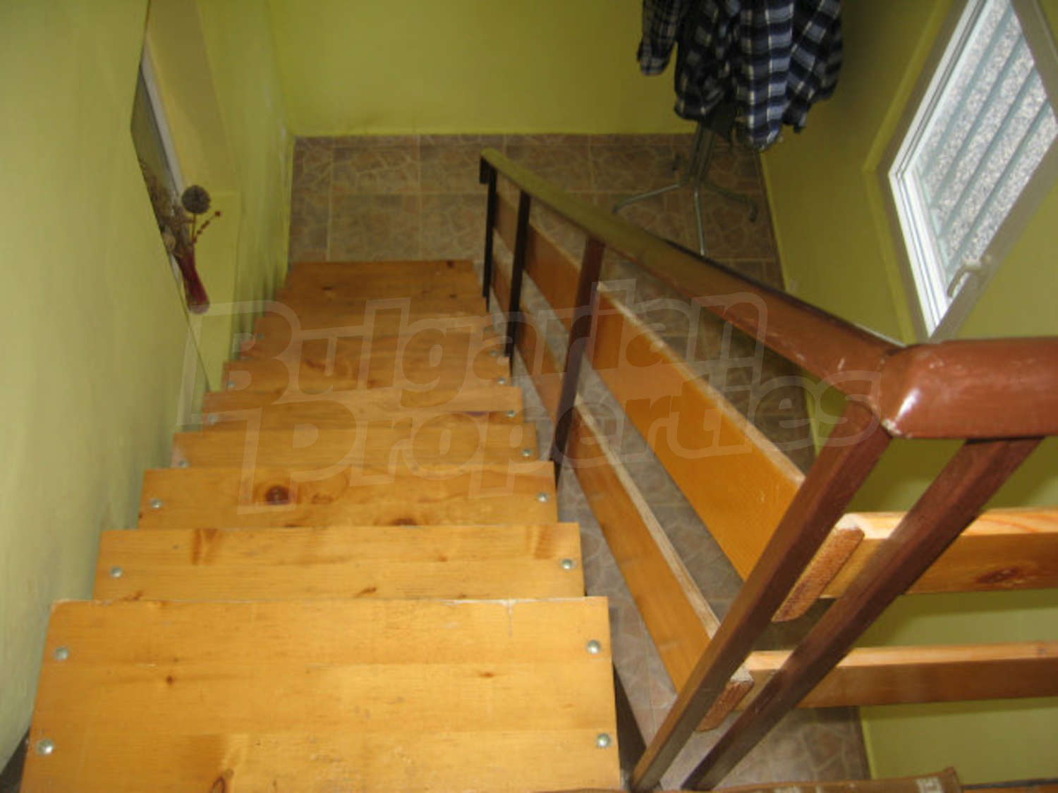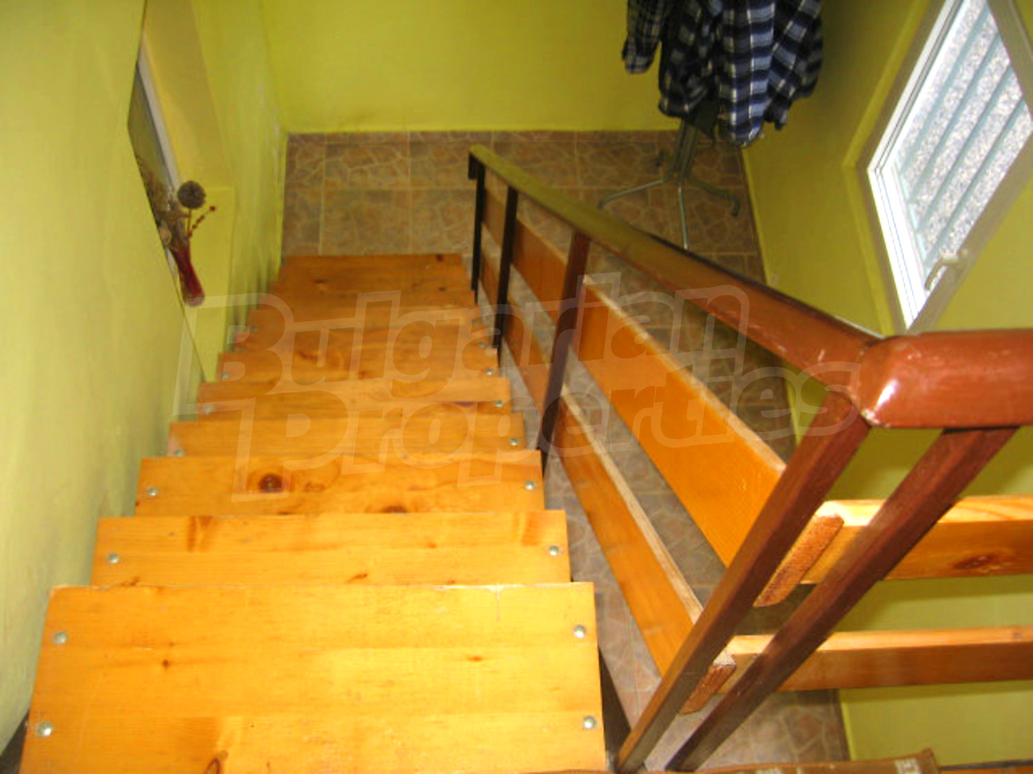 Първи етаж – коридор-стълбище, кухня с трапезария, спалня, баня с тоалетна и сервизно помещение. Подовите настилки са с теракот.