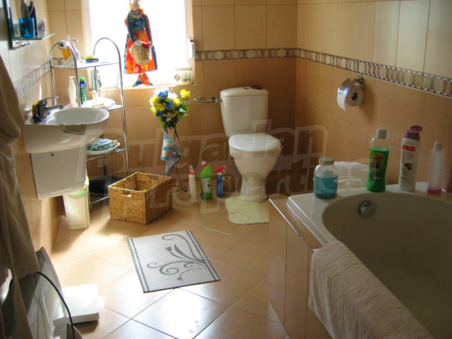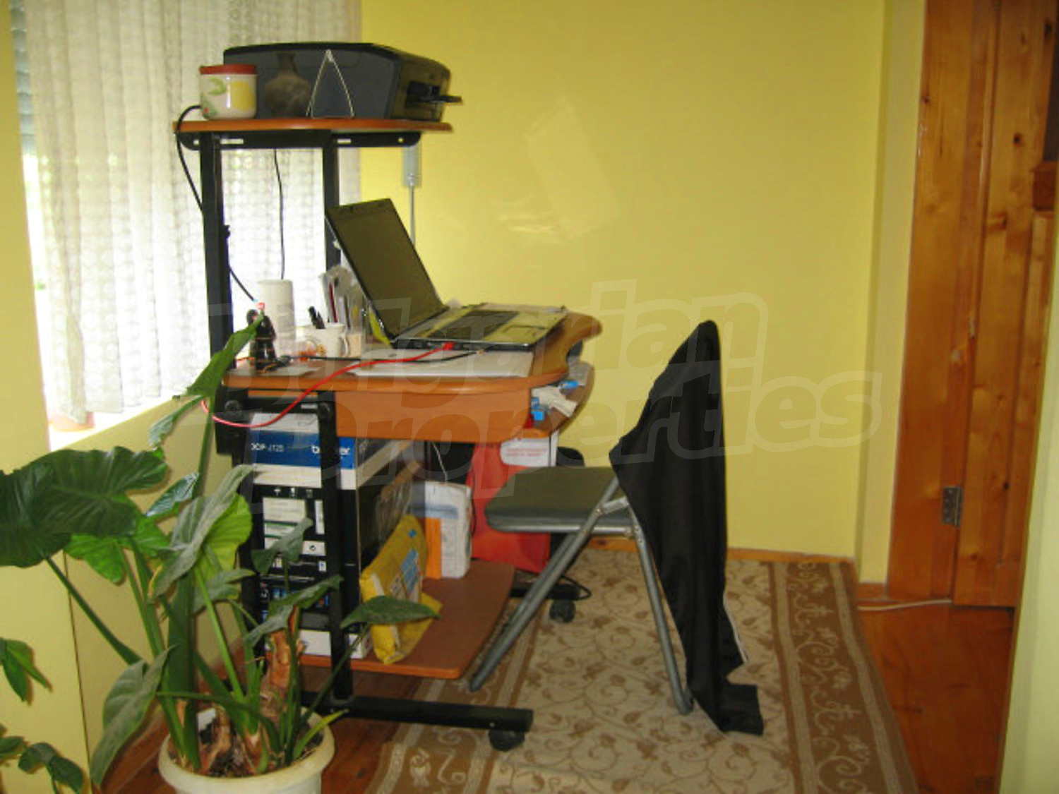 Втори етаж – салон-кабинет, коридор, спалня, дневна, голяма баня с тоалетна и вана. Подовите настилки са с дюшеме и ламинат. Стените в стаите са с гипсокартон, а прозорците са завършени с ПВЦ дограми.