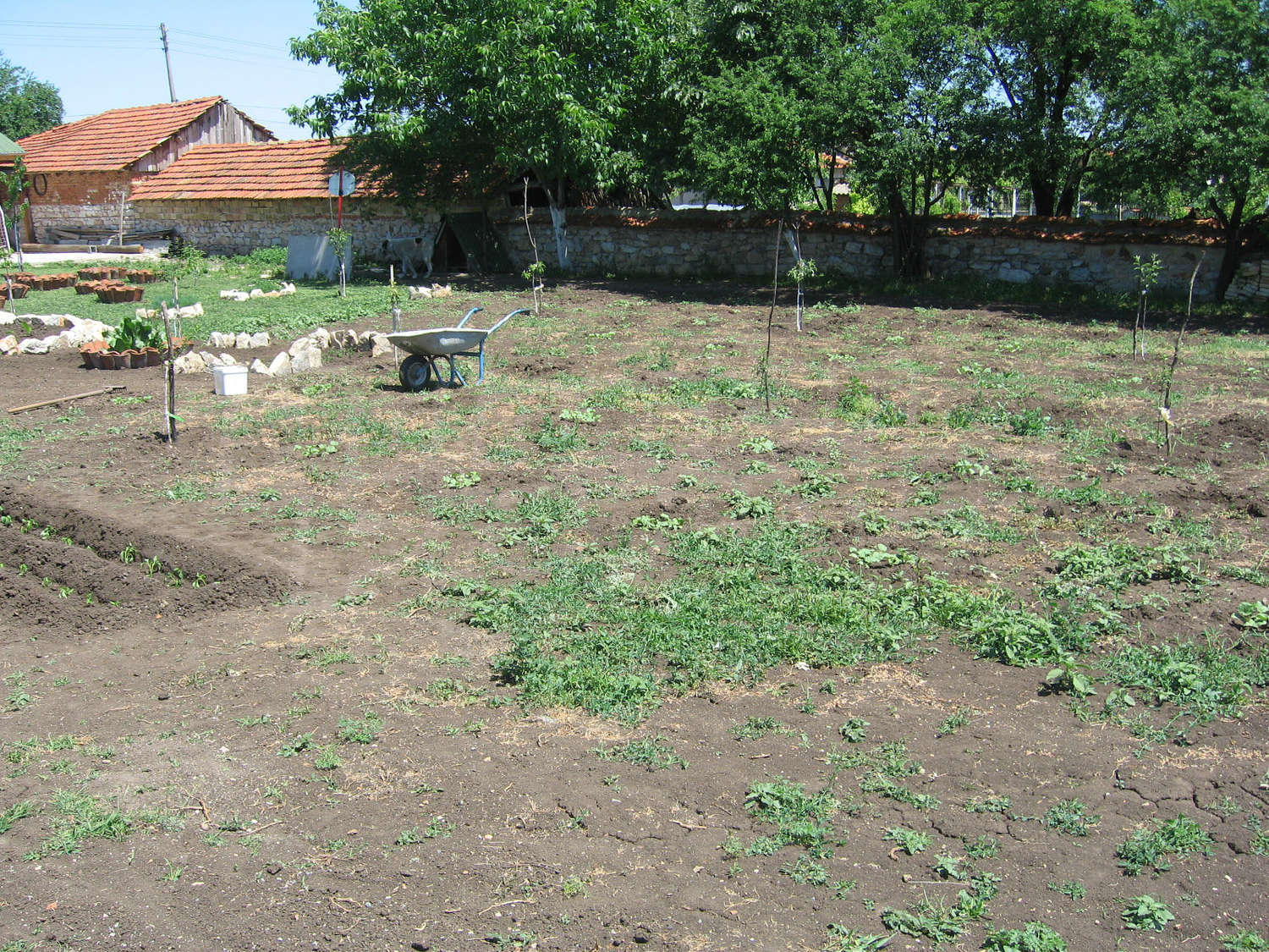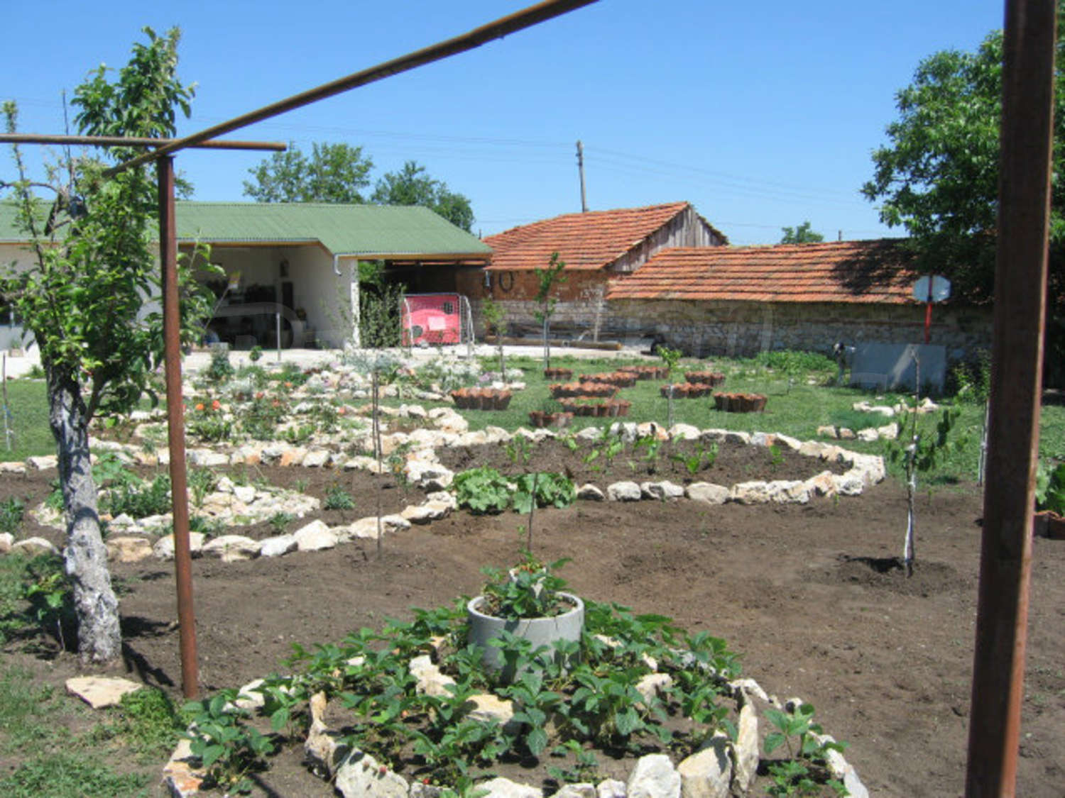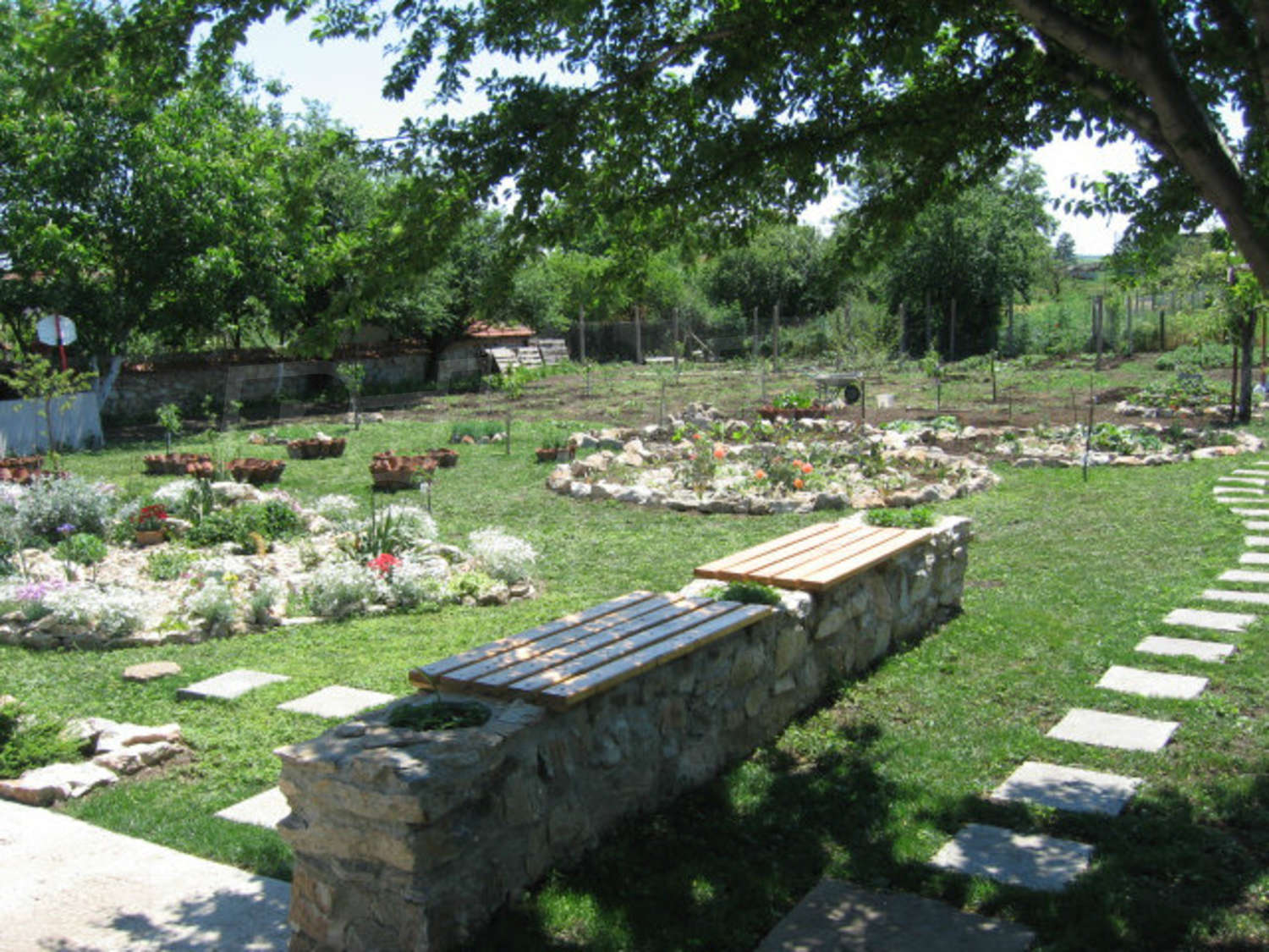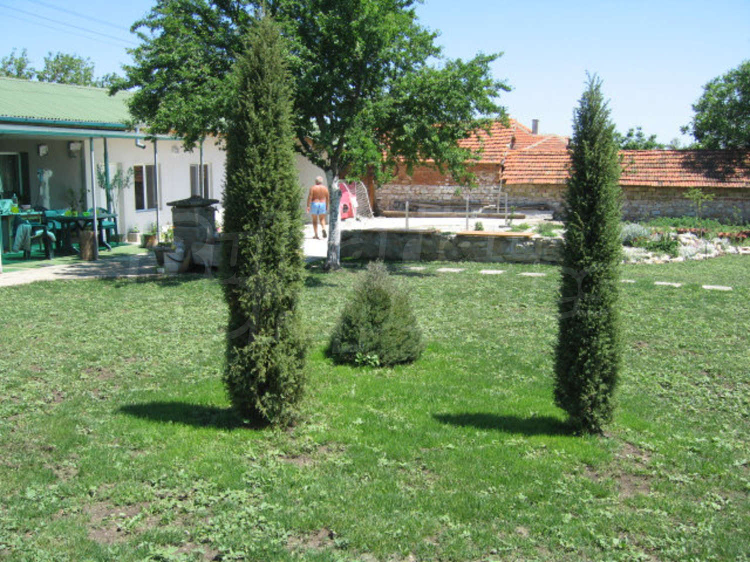 Добре аранжираният двор е засаден с овошки, цветя, райграс и разполага с красиви декорации. Разкрива чудесна гледка към съседните къщи.