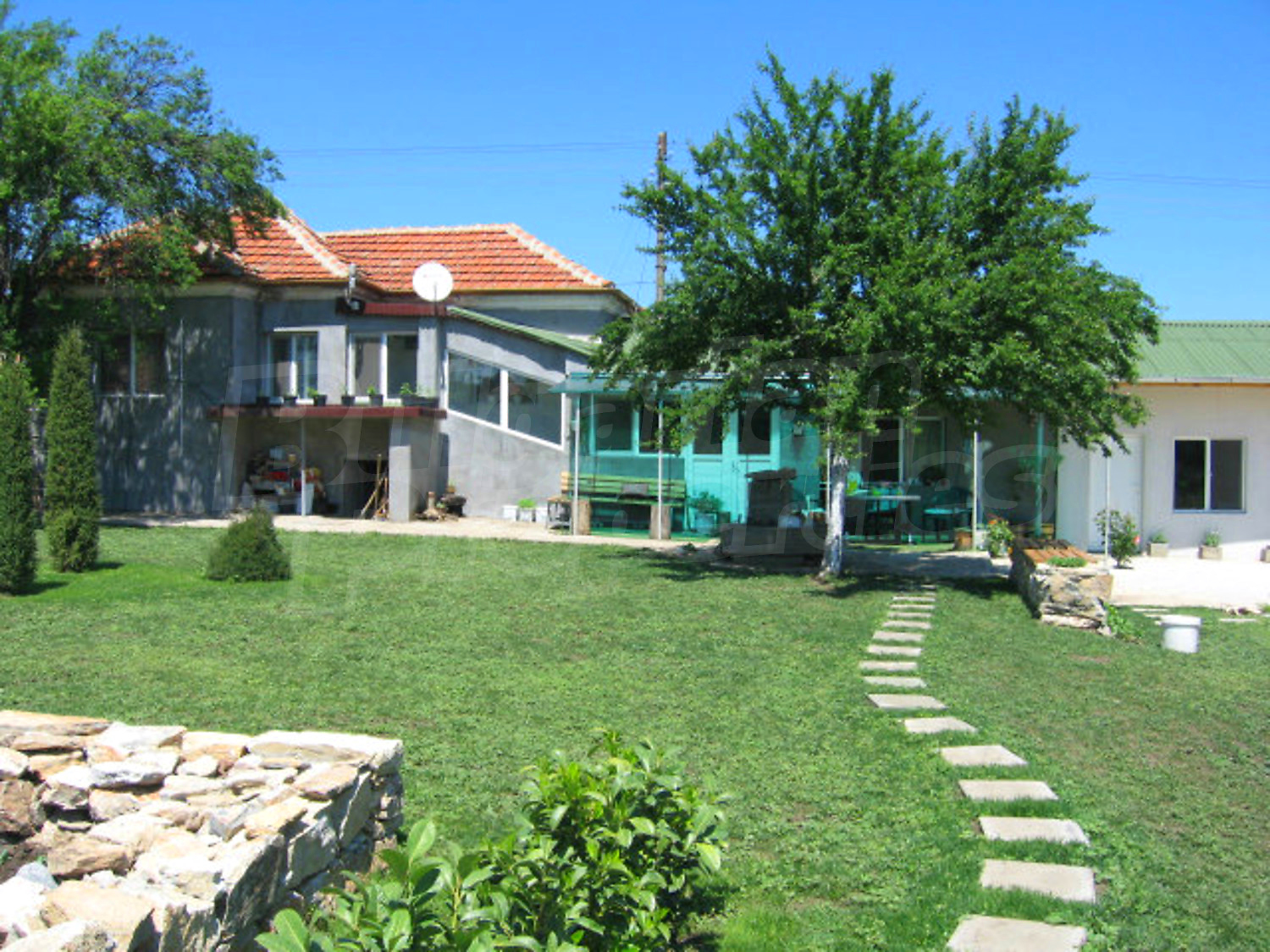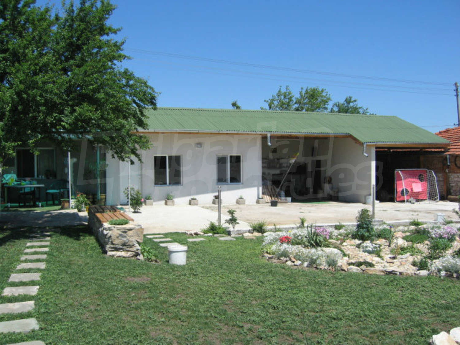 BULGARIAN PROPERTIES продава едноетажна къща с двор, която се намира на асфалтов път в края на малко село с всички удобства, само на 17 км от Ямбол. Имотът включва еднофамилна къща с лятна кухня (130 кв.м.), двор 1700 кв.м., паркинг, гараж и мазе 5 кв.м.