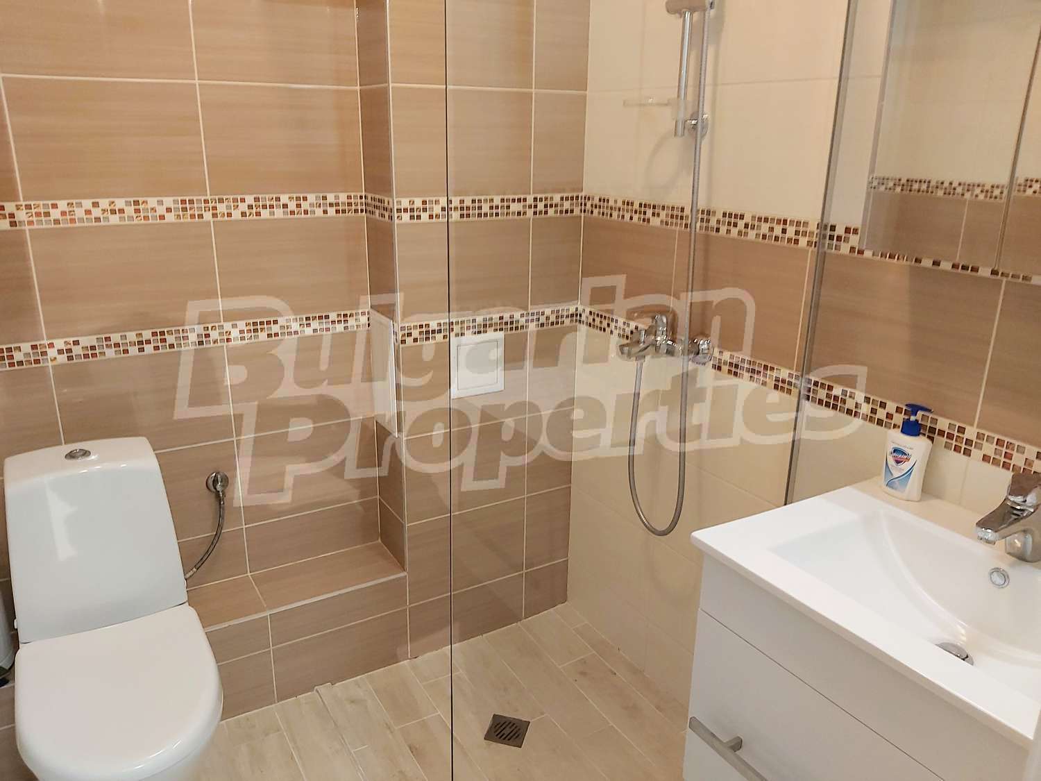 - Напълно оборудвана баня: смесители, душ-система "Bergsee" (Унгария), фаянс и теракот Италия, санитария "Cersanit" (Полша), водоустойчиви шкафове "Тriano" (България).