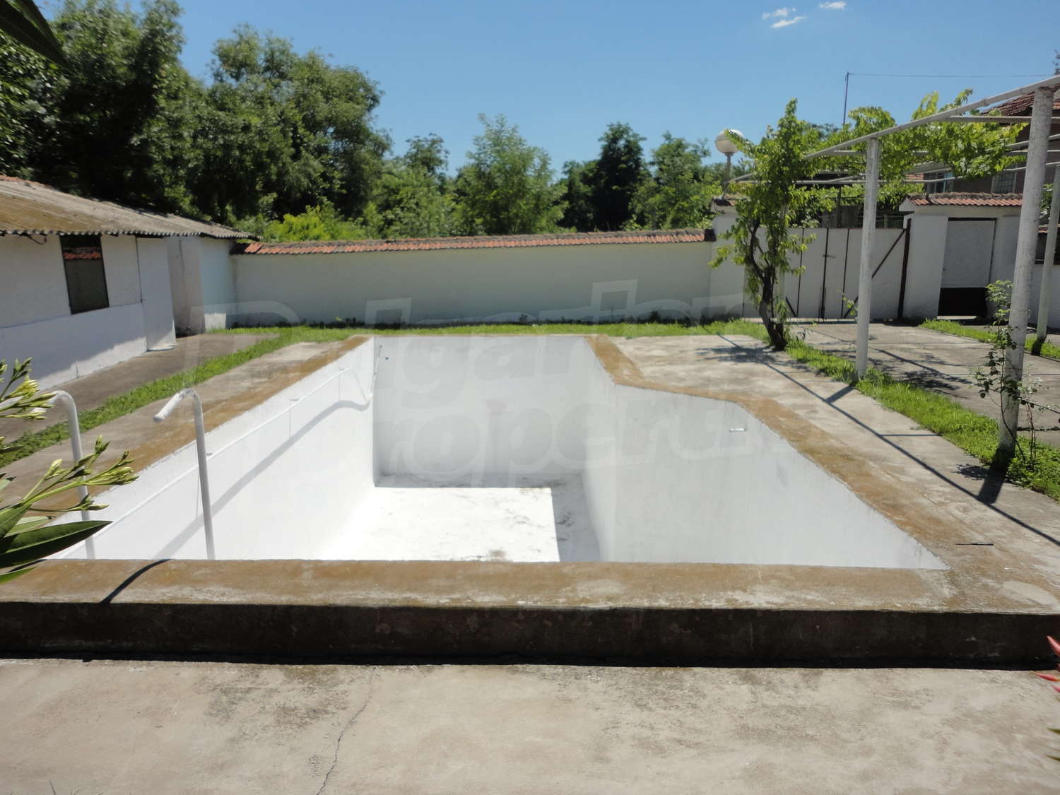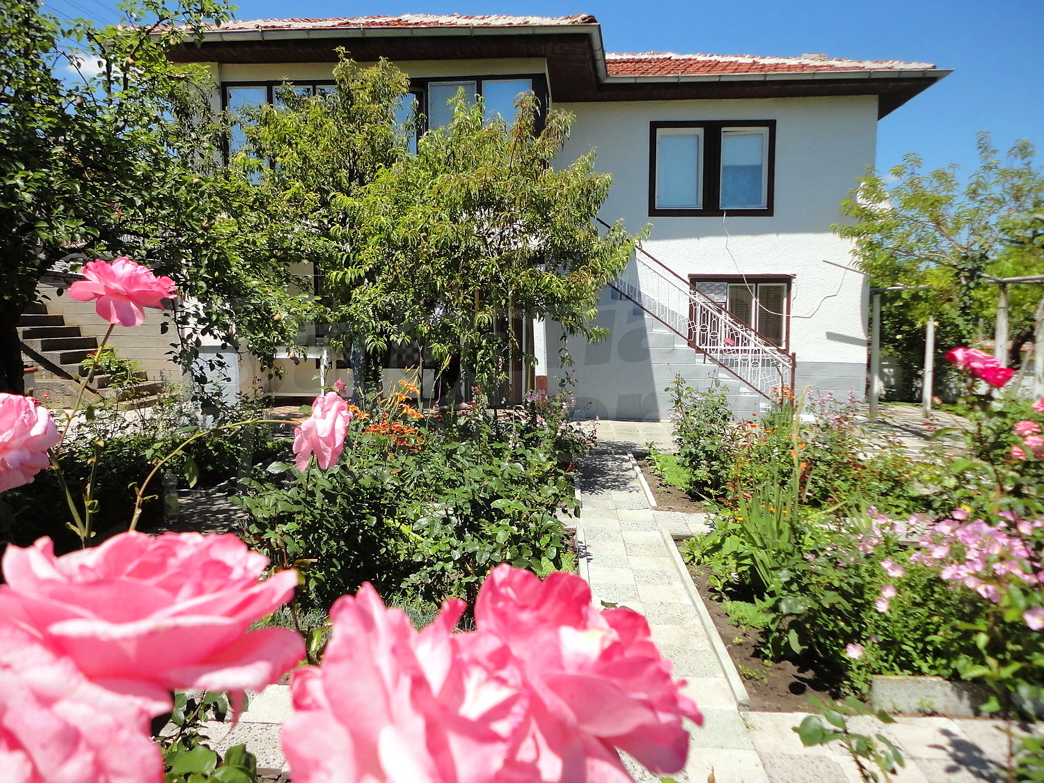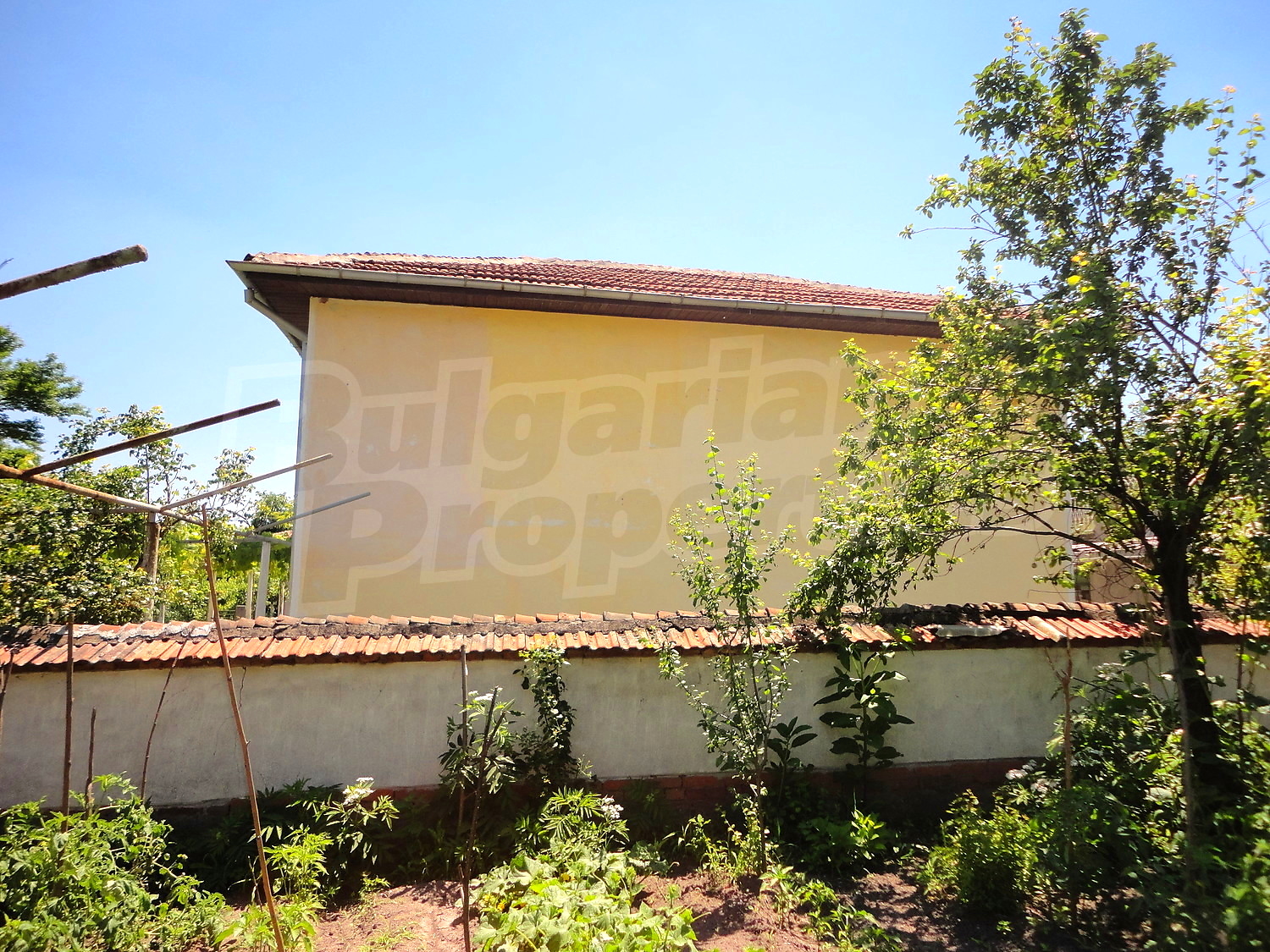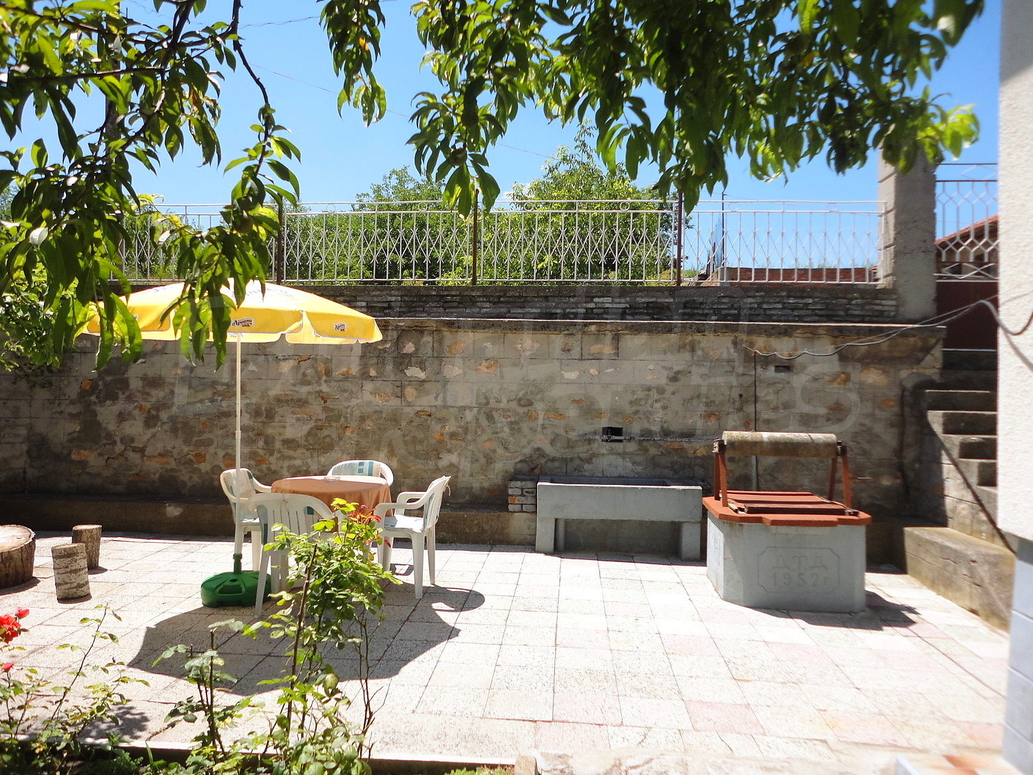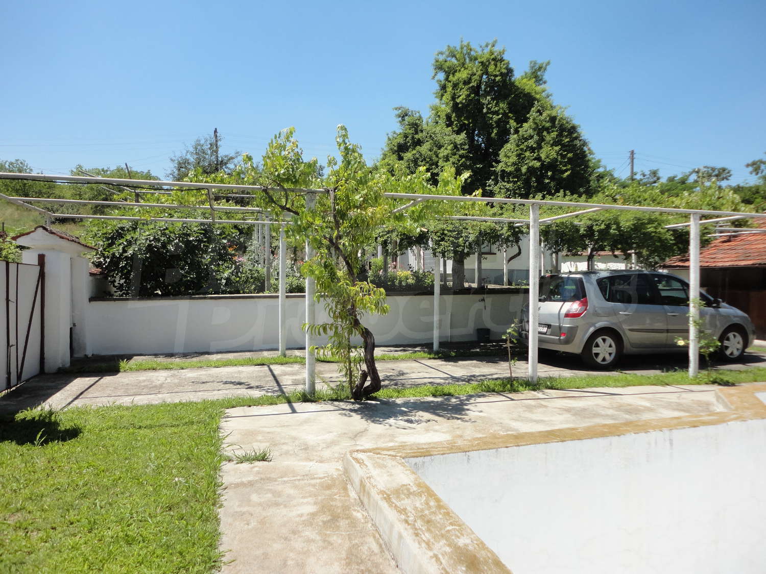 Градината е засадена с овошки, много цветя и асма. В нея има и открит плувен басейн.