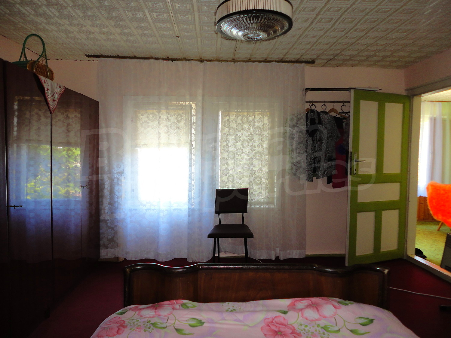 Втори етаж: Тук ще откриете антре и две спални. Подът е дюшеме, а прозорците отново са с дървена дограма.