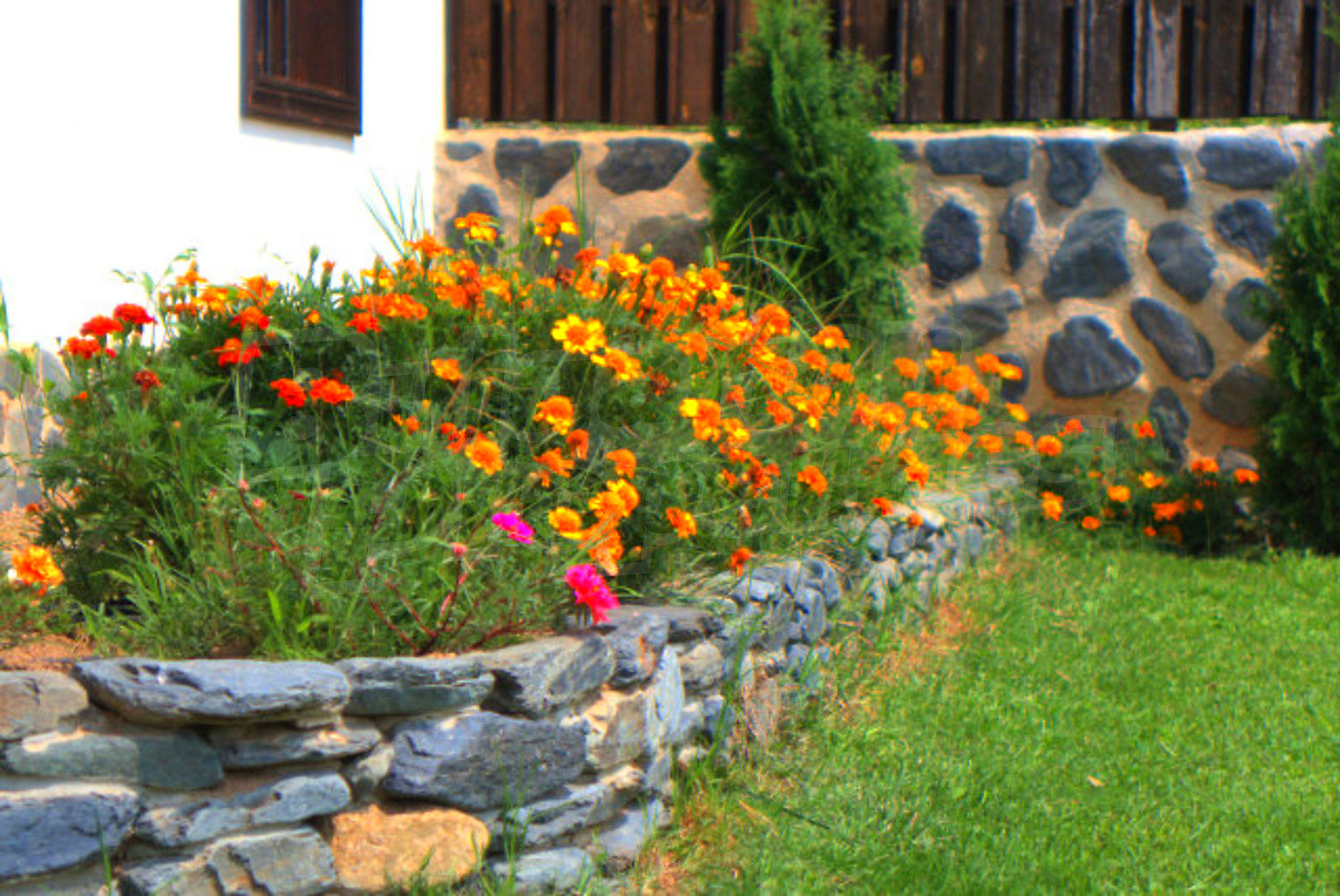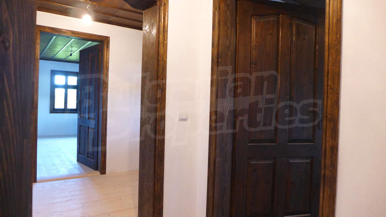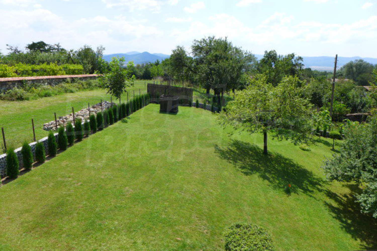 Къщата е на два етажа, като към всеки водят отделни вътрешни и външни стълби. На приземния етаж има дневна с кухненски бокс, спалня, баня с тоалетна. Вторият етаж е разпределен между спалня с помещение за гардеробна или собствена баня и тоалетна, още една спалня, баня с тоалетна, и голяма тераса от която се разкриват красиви гледки към селото и планината. Градината е много добре аранжирана с плодни дървета, цветя, туи, декоративни храсти, ограда, има също и капково напояване.