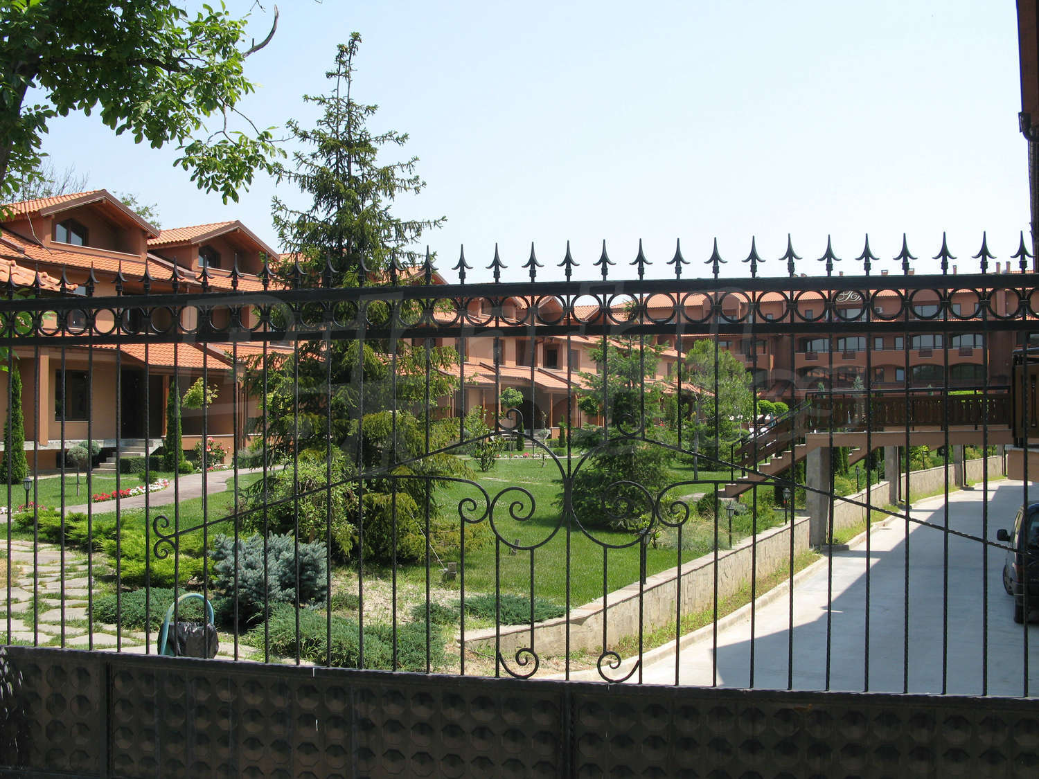 - Масивна ограда и портални врати от ковано желязо с дистанционно управление през личния Ви мобилен телефон. Денонощна охрана и видео наблюдение