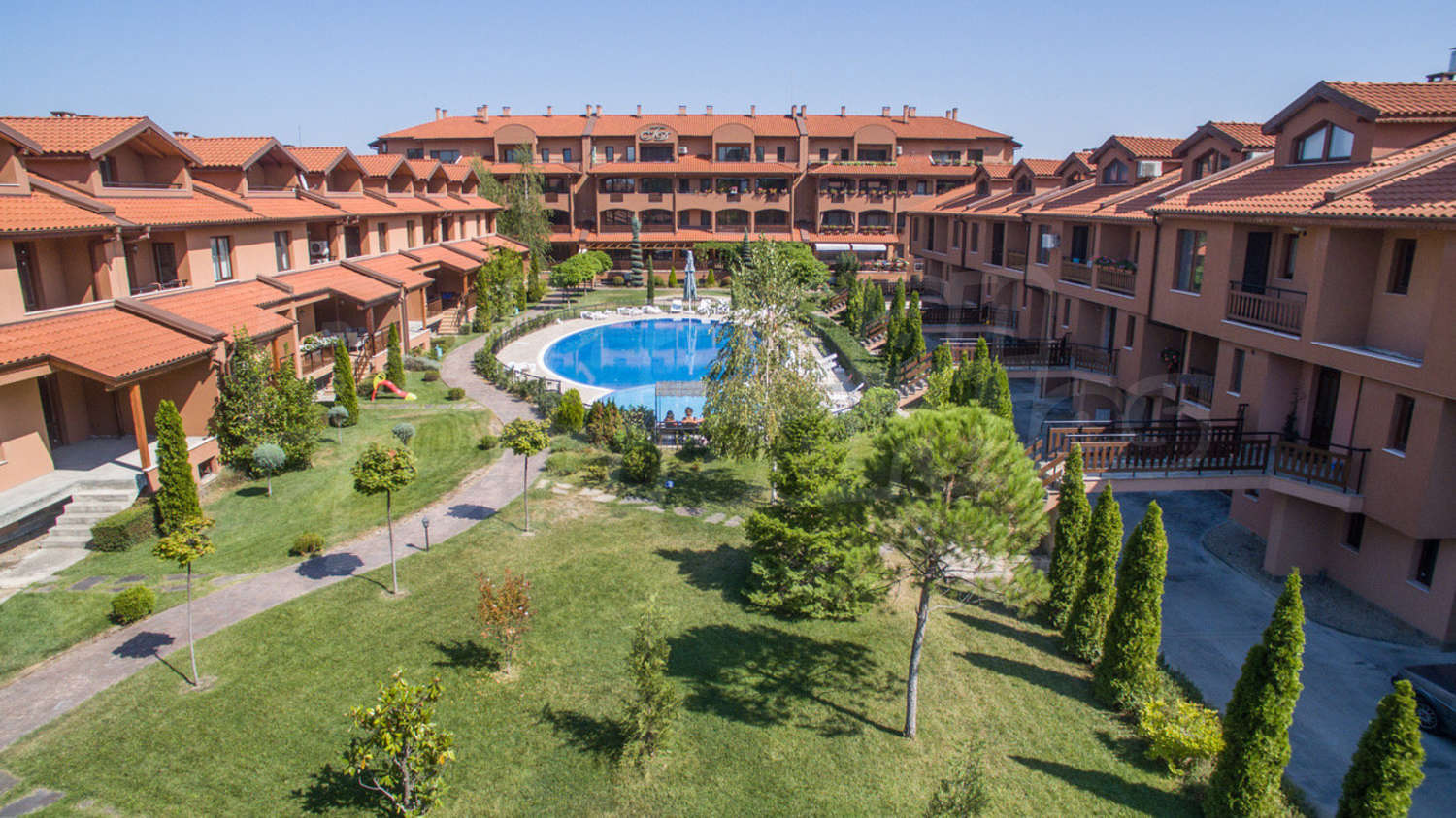 - Луксозни общи части и качествени материали, богато озеленяване и басейн предоставят първокласен комфорт на живущите, а цветовете създават усещане за хармония с природата