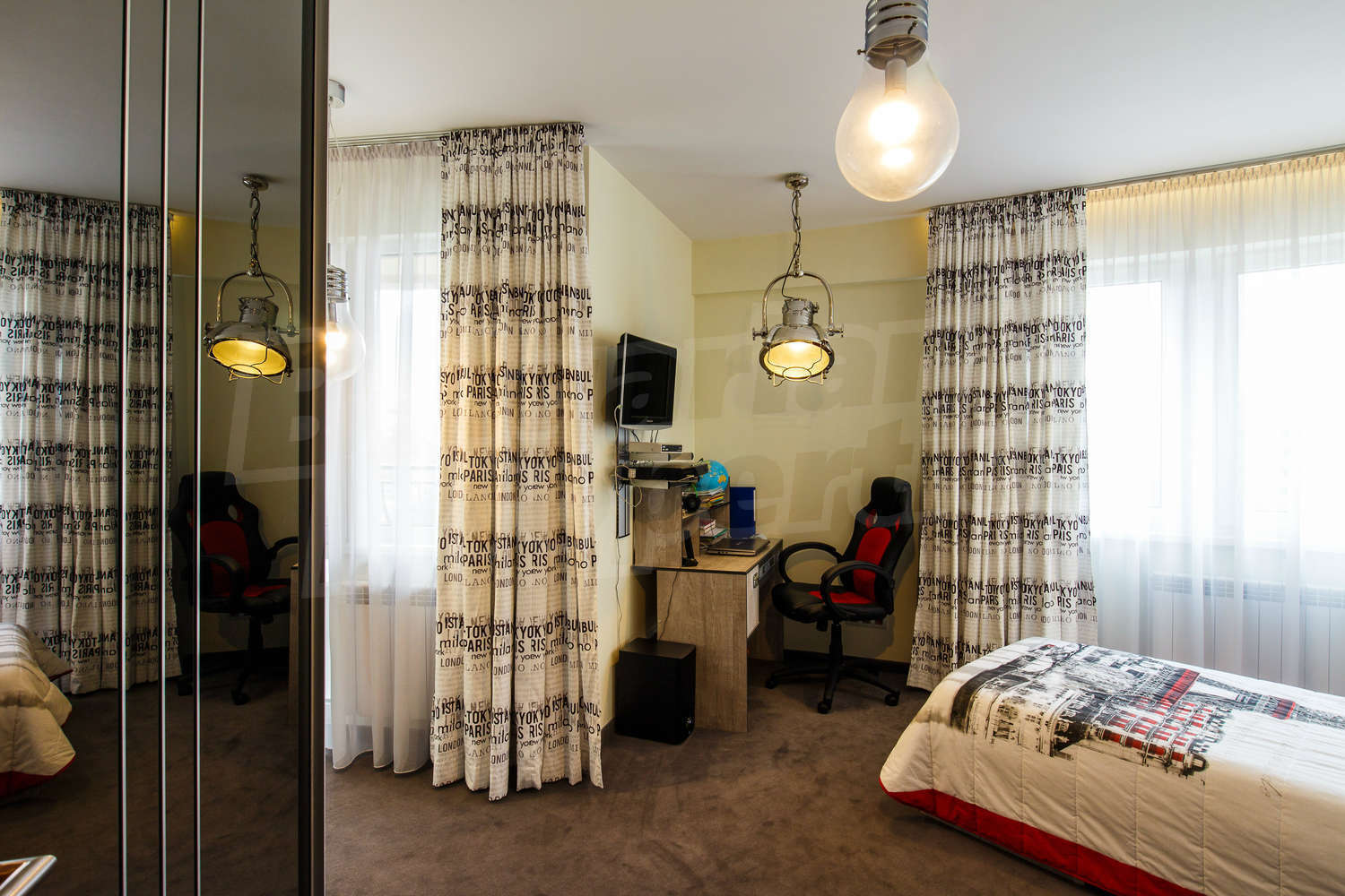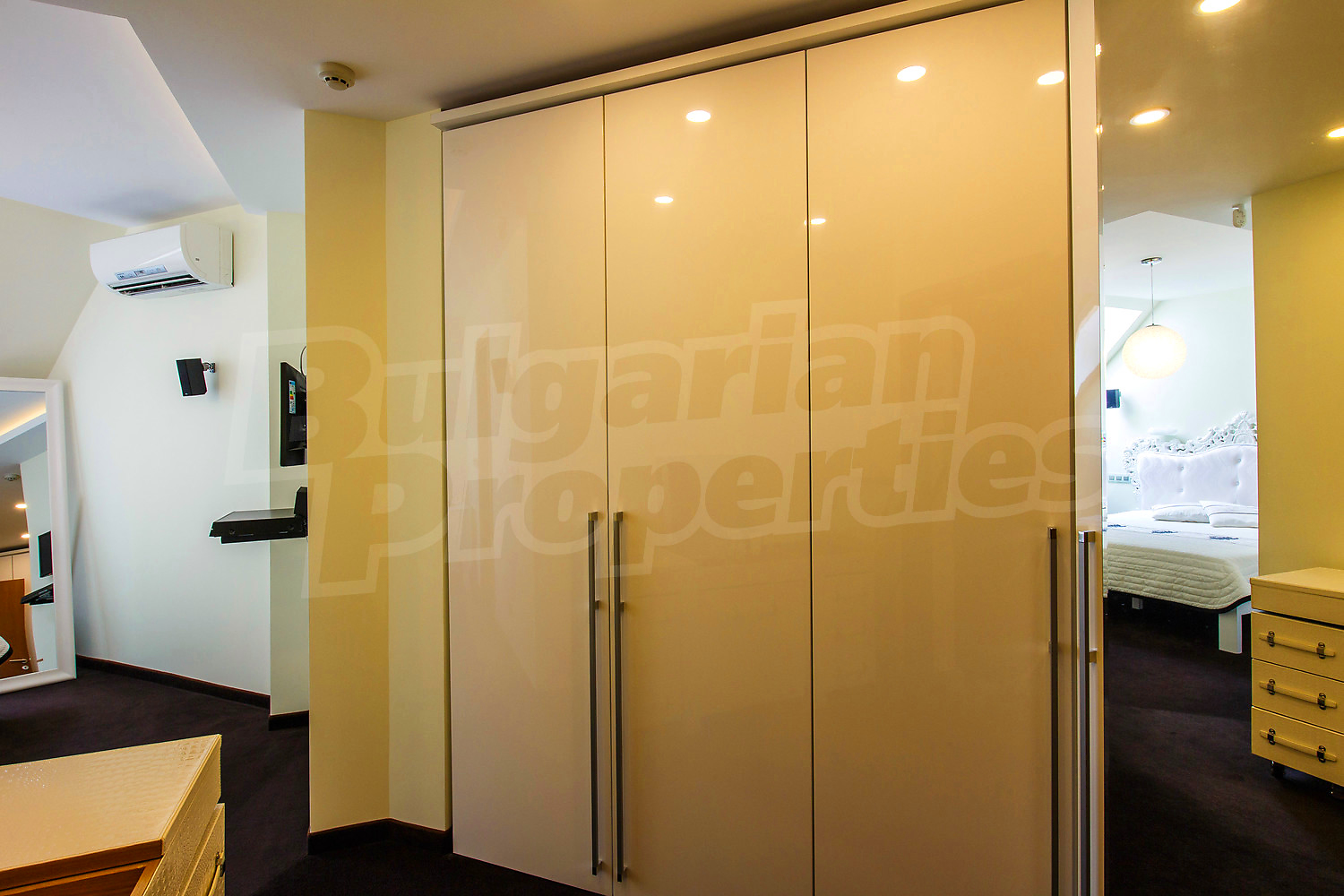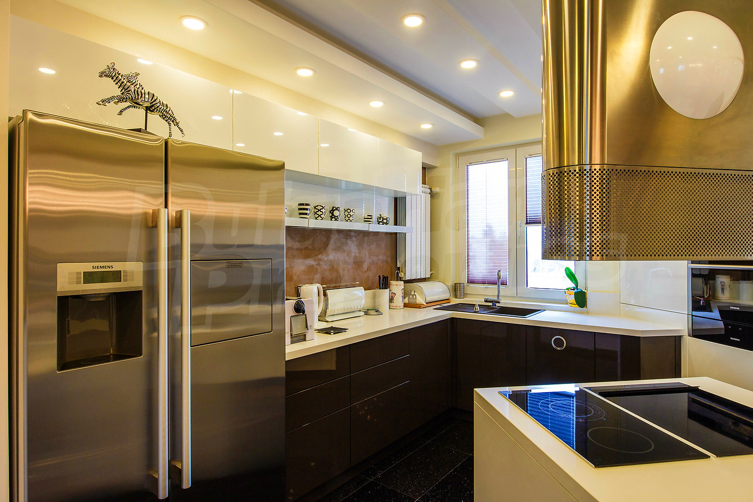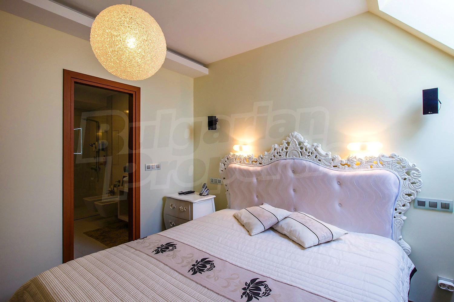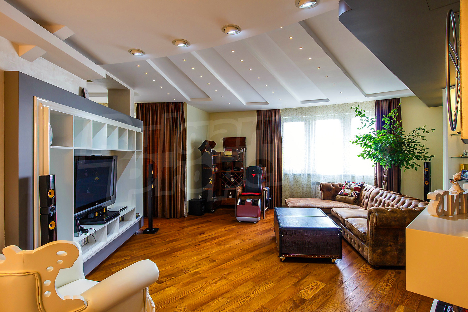 Имотът се продава напълно обзаведен. В хола и трапезарията обзавеждането е от бутиковата марка за луксозно интериорно обзавеждане KARE. В дневната стая има и декоративна камина. Кухненските шкафове са изработени от MDF фронтове с лаково покритие, плотовете от технически камък. Има подгревателни чекмеджета. Кухненските уреди са вградени - парова фурна, кафе машина, микровълнова фурна с вградени скара и котлони – марка SIEMENS. Абсорбатора е Faber. В апартамента има 5 телевизора LG с три броя домашни кина LG. Има пералня и сушилня, намиращи се в мокрото помещение на второто нива, които са на марка MIELE. Имотът разполага с 3 броя бани с два броя джакузи, умивалници и батерии ROKA, смесители Hansa.
