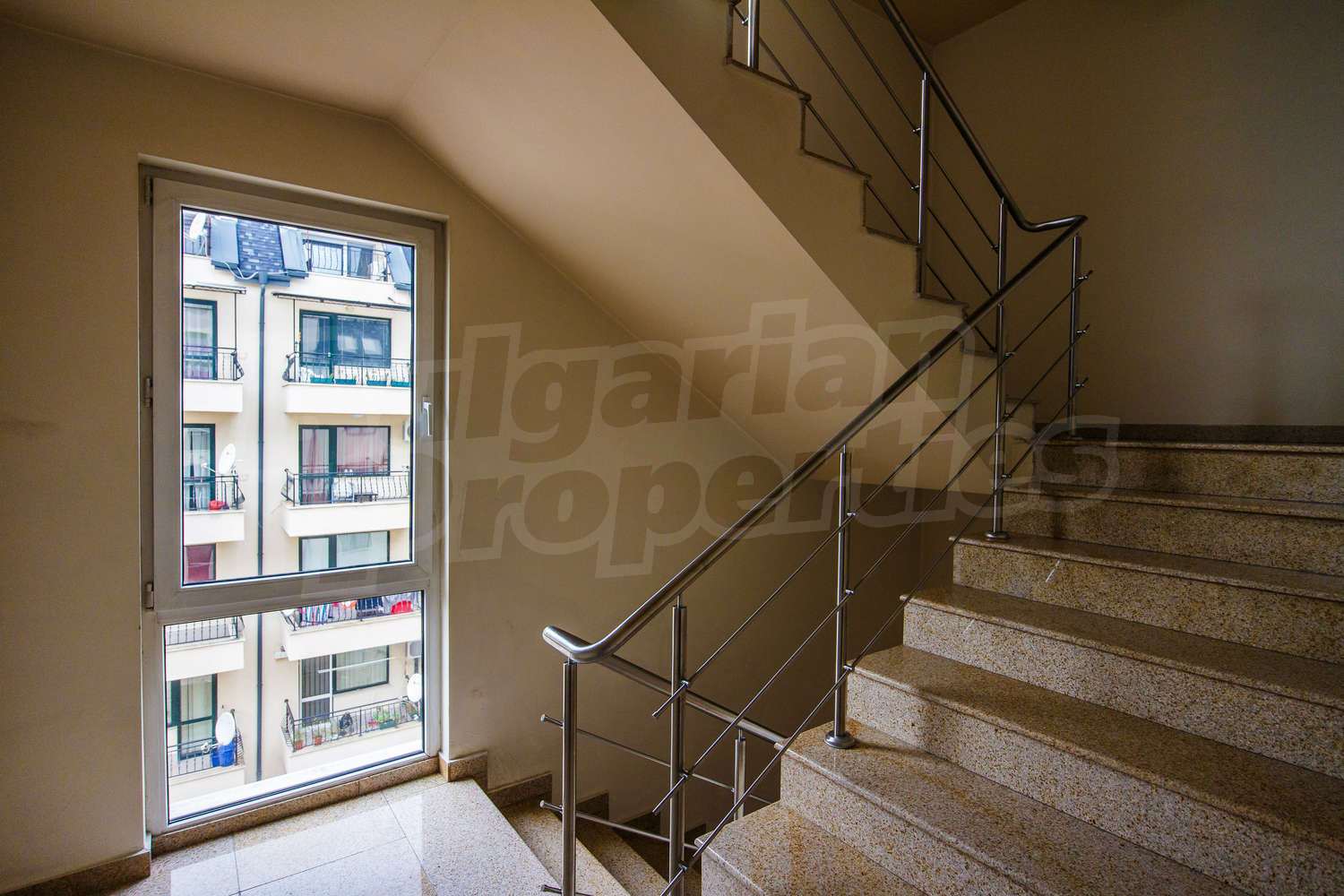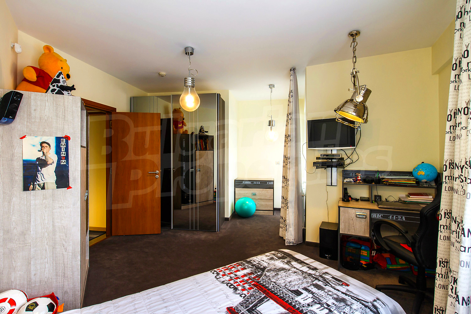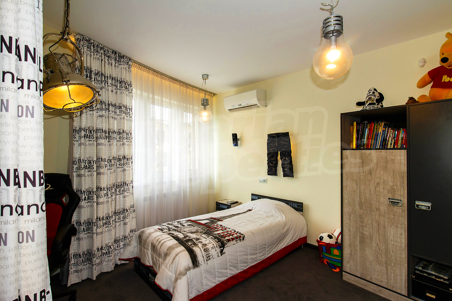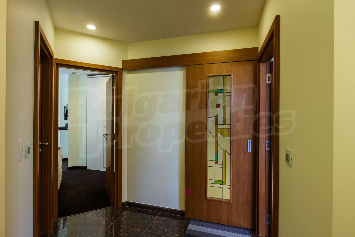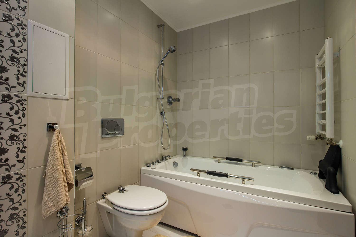 Имотът се продава напълно обзаведен. В хола и трапезарията обзавеждането е от бутиковата марка за луксозно интериорно обзавеждане KARE. В дневната стая има и декоративна камина. Кухненските шкафове са изработени от MDF фронтове с лаково покритие, плотовете от технически камък. Има подгревателни чекмеджета. Кухненските уреди са вградени - парова фурна, кафе машина, микровълнова фурна с вградени скара и котлони – марка SIEMENS. Абсорбатора е Faber. В апартамента има 5 телевизора LG с три броя домашни кина LG. Има пералня и сушилня, намиращи се в мокрото помещение на второто нива, които са на марка MIELE. Имотът разполага с 3 броя бани с два броя джакузи, умивалници и батерии ROKA, смесители Hansa.