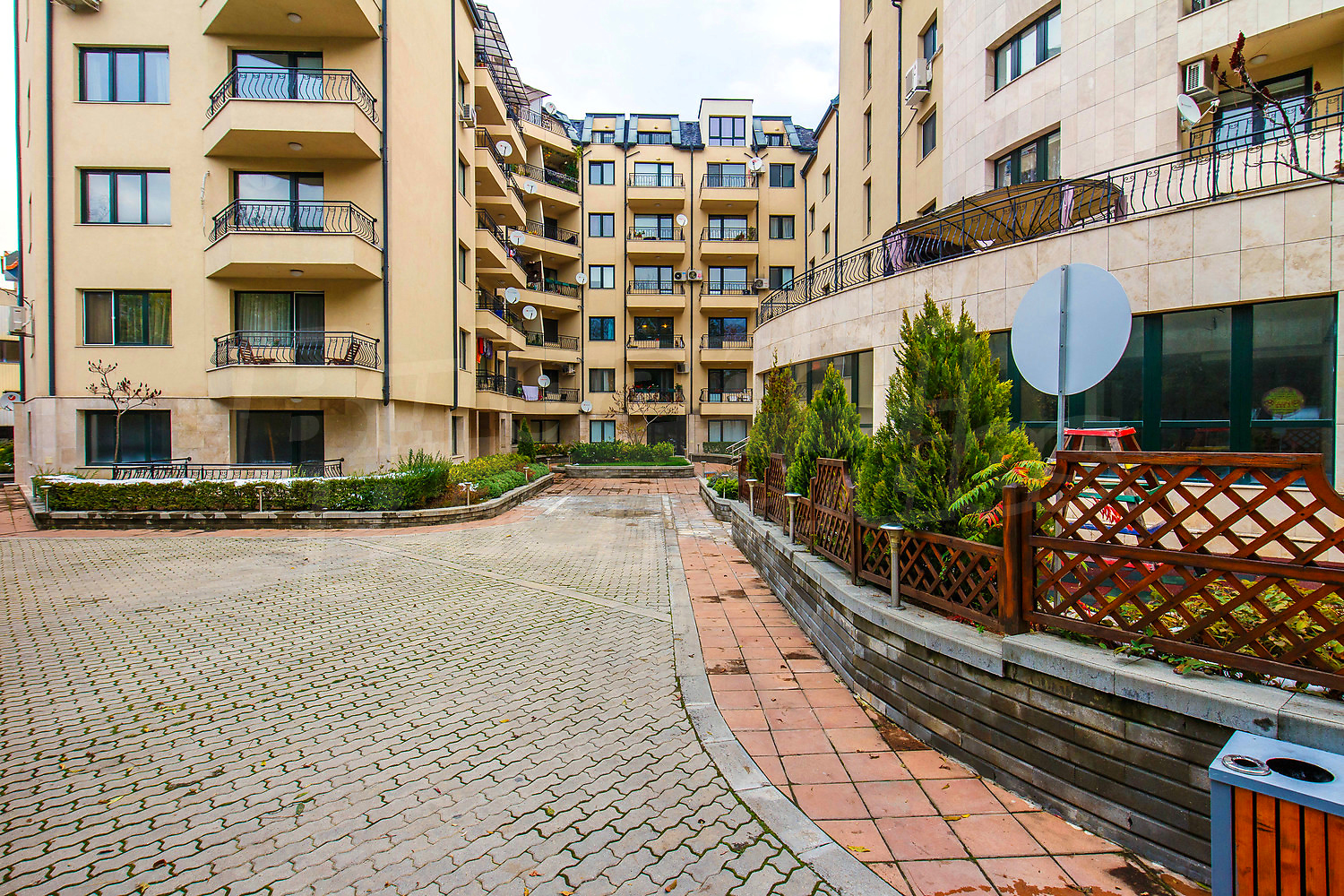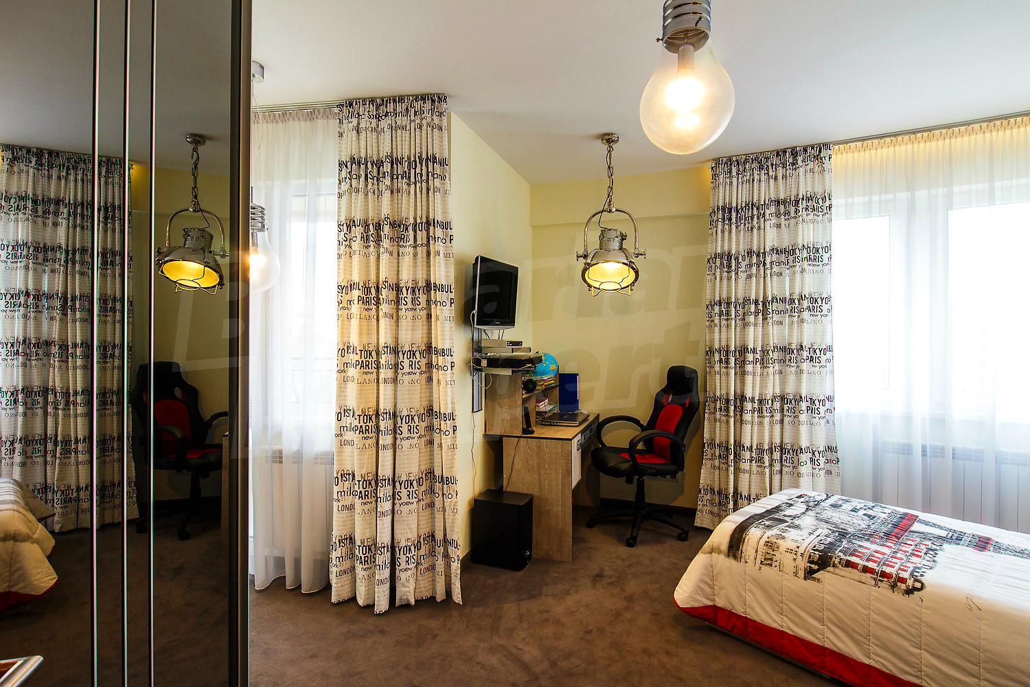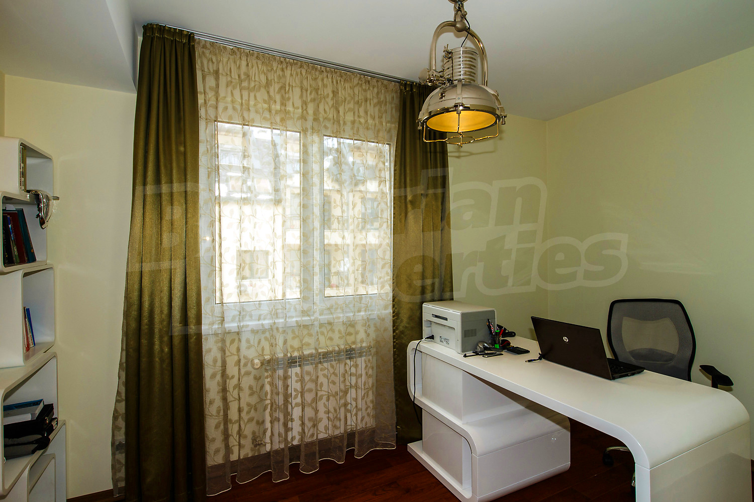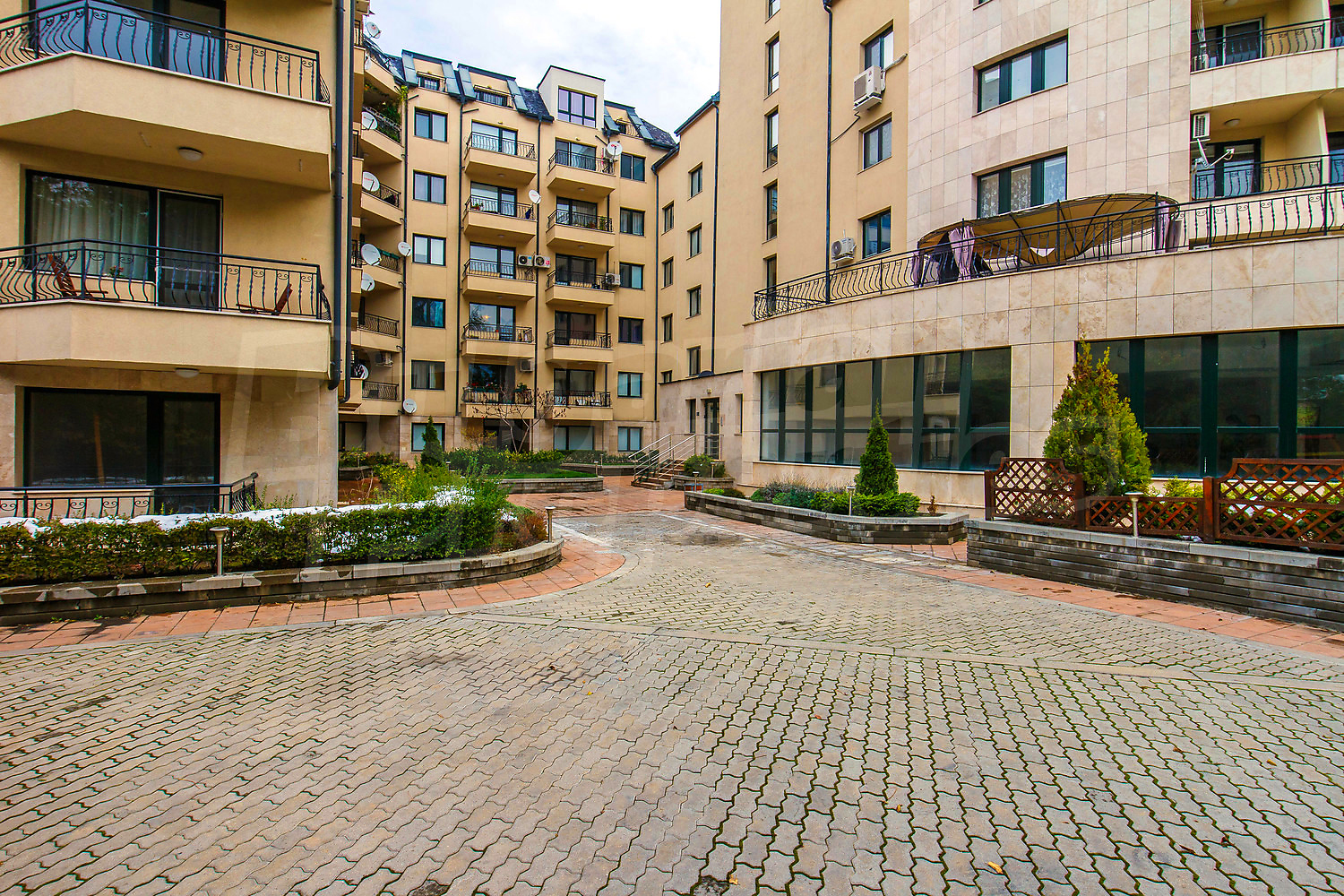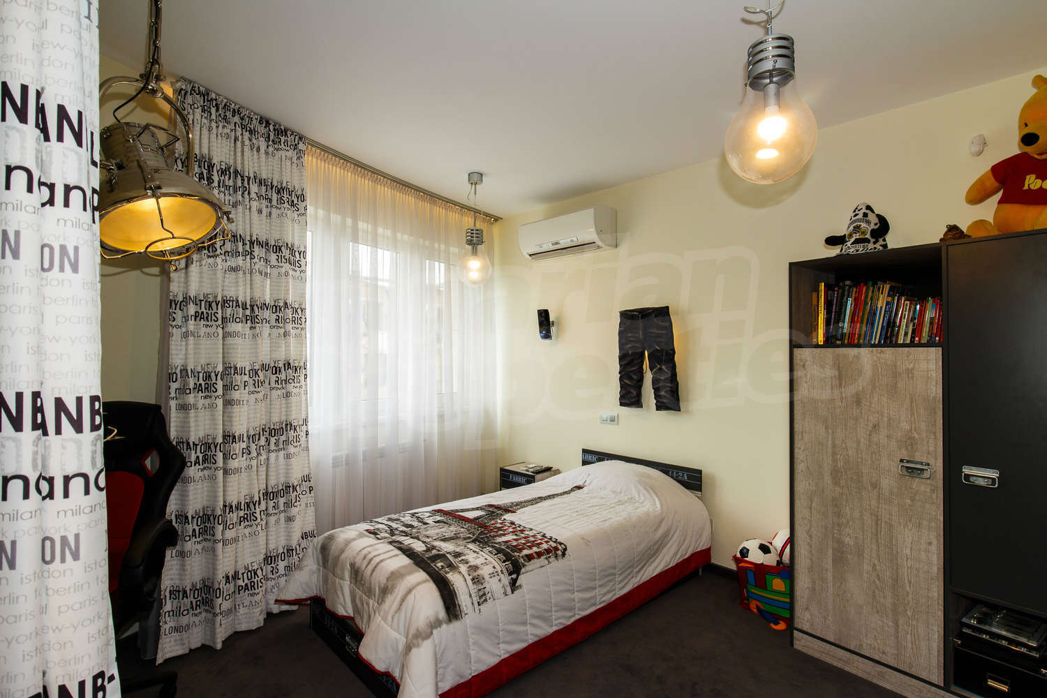 Имотът се продава напълно обзаведен. В хола и трапезарията обзавеждането е от бутиковата марка за луксозно интериорно обзавеждане KARE. В дневната стая има и декоративна камина. Кухненските шкафове са изработени от MDF фронтове с лаково покритие, плотовете от технически камък. Има подгревателни чекмеджета. Кухненските уреди са вградени - парова фурна, кафе машина, микровълнова фурна с вградени скара и котлони – марка SIEMENS. Абсорбатора е Faber. В апартамента има 5 телевизора LG с три броя домашни кина LG. Има пералня и сушилня, намиращи се в мокрото помещение на второто нива, които са на марка MIELE. Имотът разполага с 3 броя бани с два броя джакузи, умивалници и батерии ROKA, смесители Hansa.
