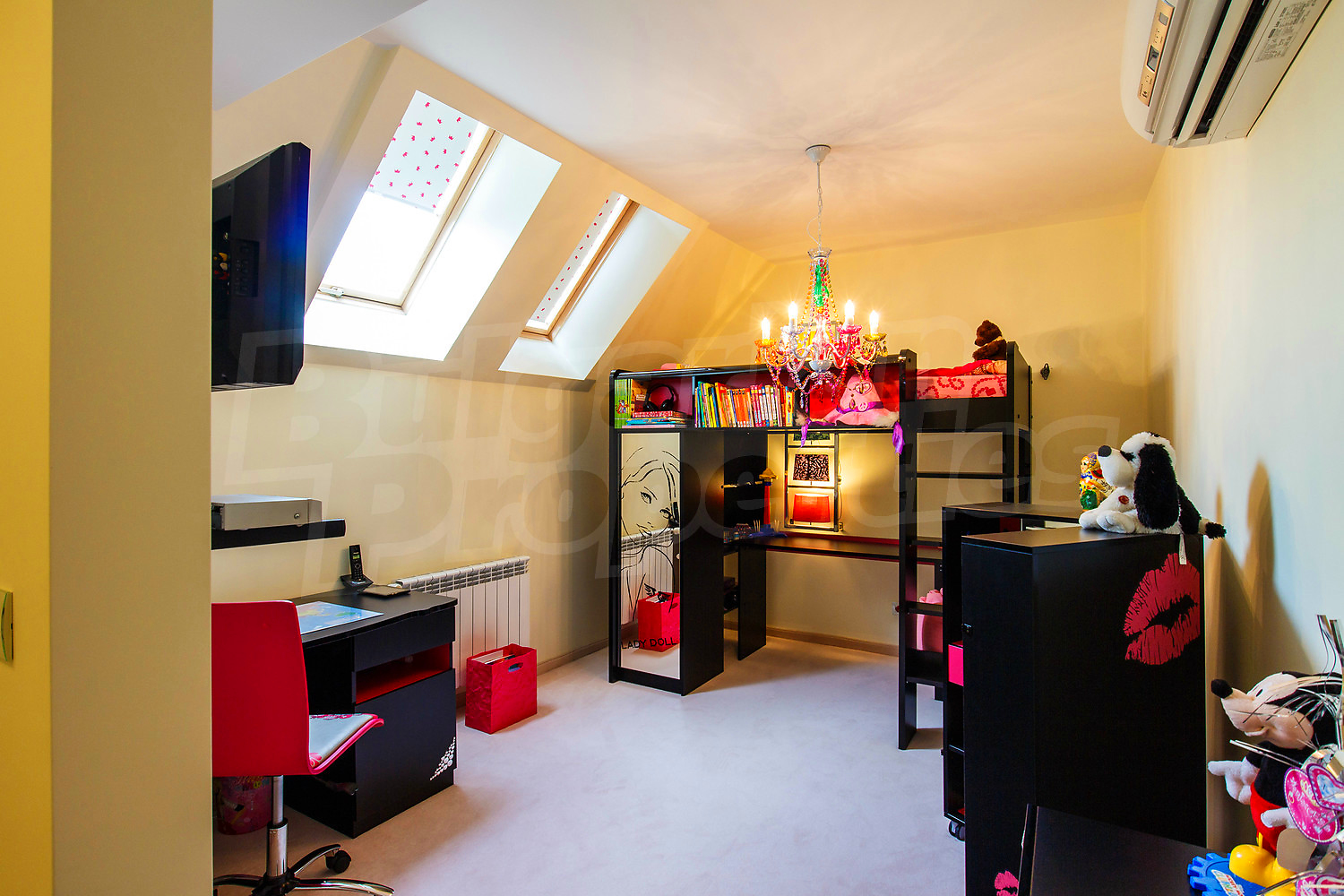 • Второ ниво: Три спални (две детски стаи и родителска спалня), две бани (едната е към родителската спалня), мокро помещение, балкон.