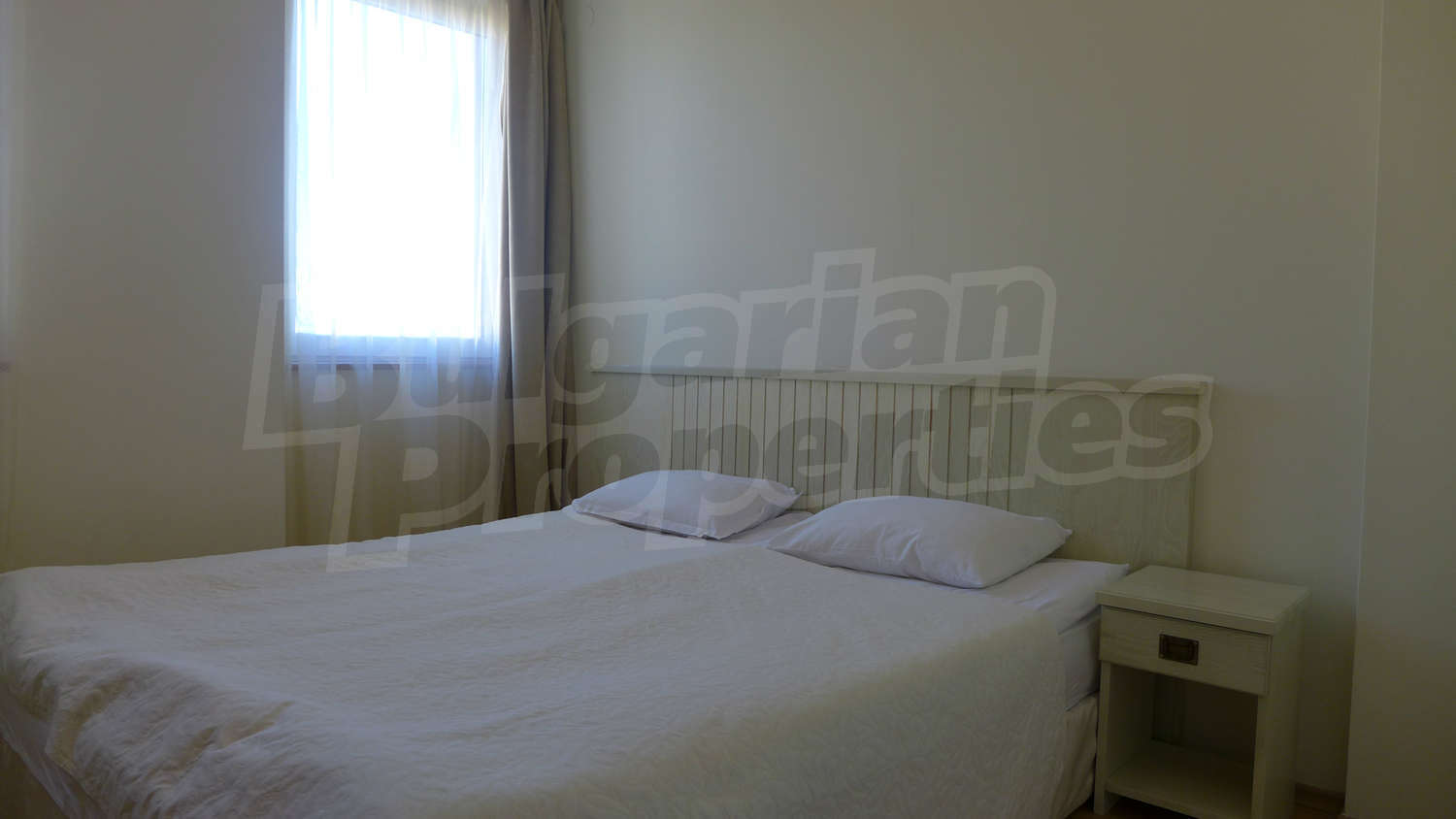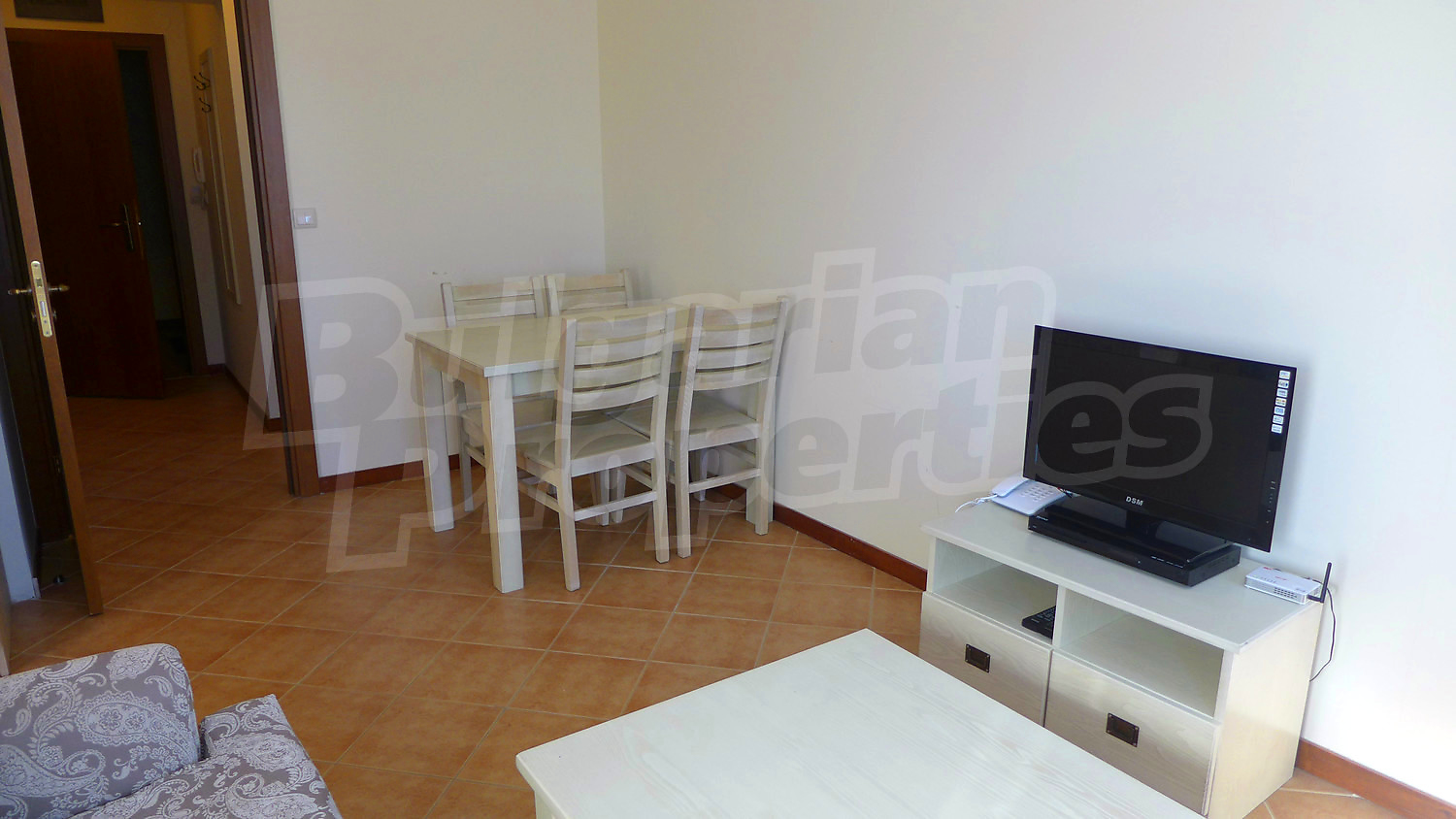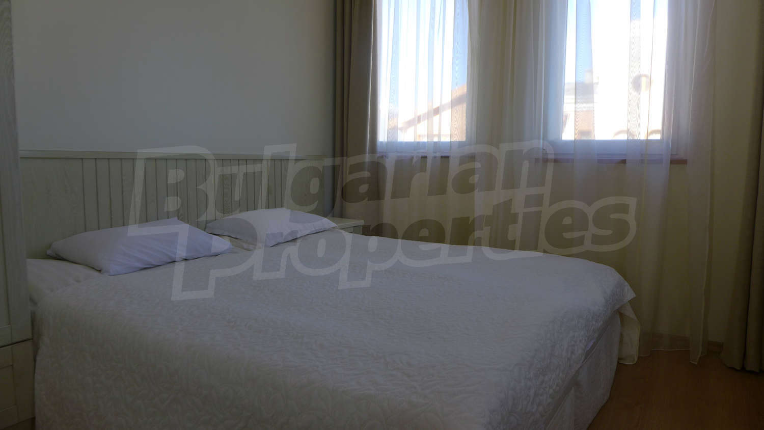 Имотът се предлага с РЗП – 76,93 кв.м. Завършен е със стени – латекс, под - ламинат и теракота, и ПВЦ дограми. Кухнята е оборудвана с керамичен плот, мивка, шкафове, котлони, печка, маса с четири стола, хладилник, пералня. Холът е обзаведен с шкафче и телевизор, DVD, малка масичка, диван, фотьойл, маса. В едната спалня ще открите двойно легло, две нощни шкафчета, голям гардероб, а в другата - двойно легло, две нощни шкафчета, голям гардероб, скрин. Баните са снабдени с душ, мивка с огледало, тоалетни. Жилището е окабелено за телефон, кабелна телевизия и телефон. Отоплява се чрез електрически радиатори.