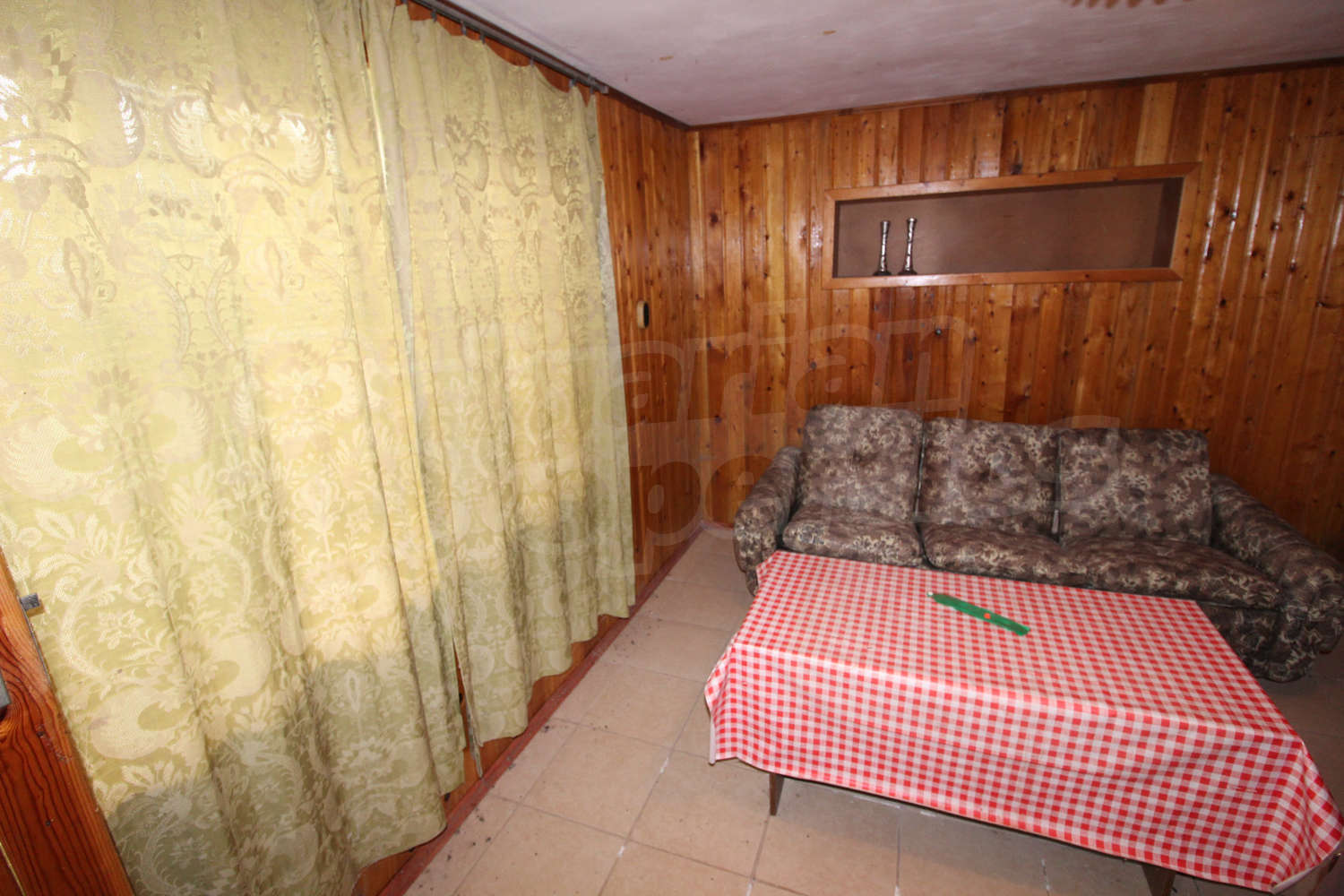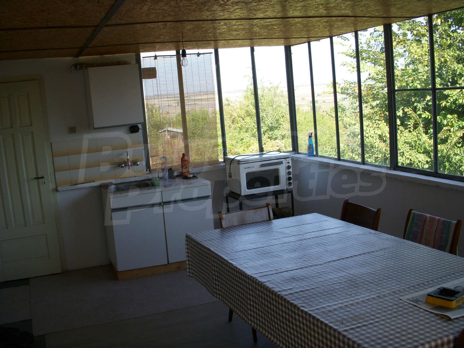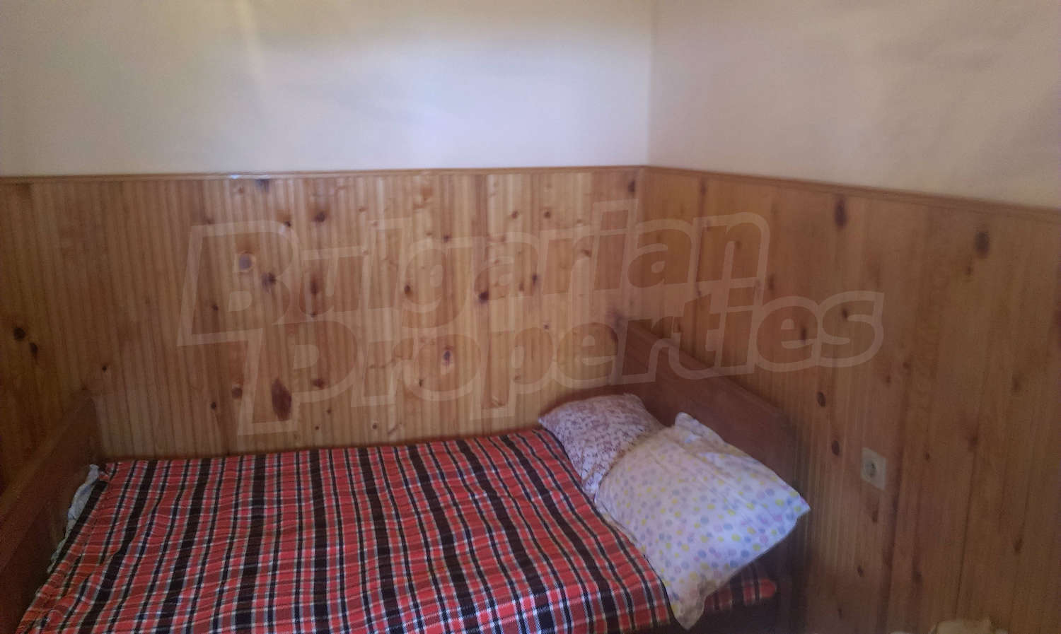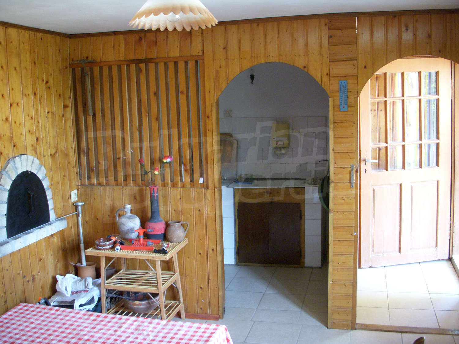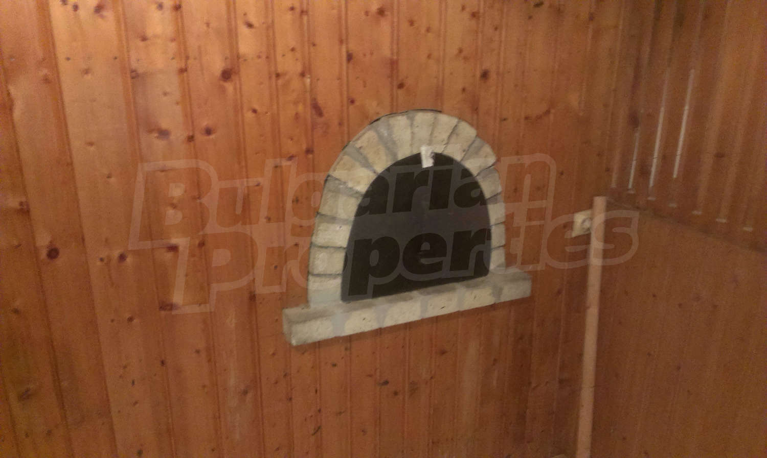 Къщата е на две нива с външни стълби и с РЗП 100 кв.м. Първият етаж включва механа с кухненски бокс 15 кв.м. На второто ниво има разположени две спални, баня и остъклена тераса. Подовата настилка е теракот, дограмата е дървена. Има поставена и ламперия за по-голяма изолация.