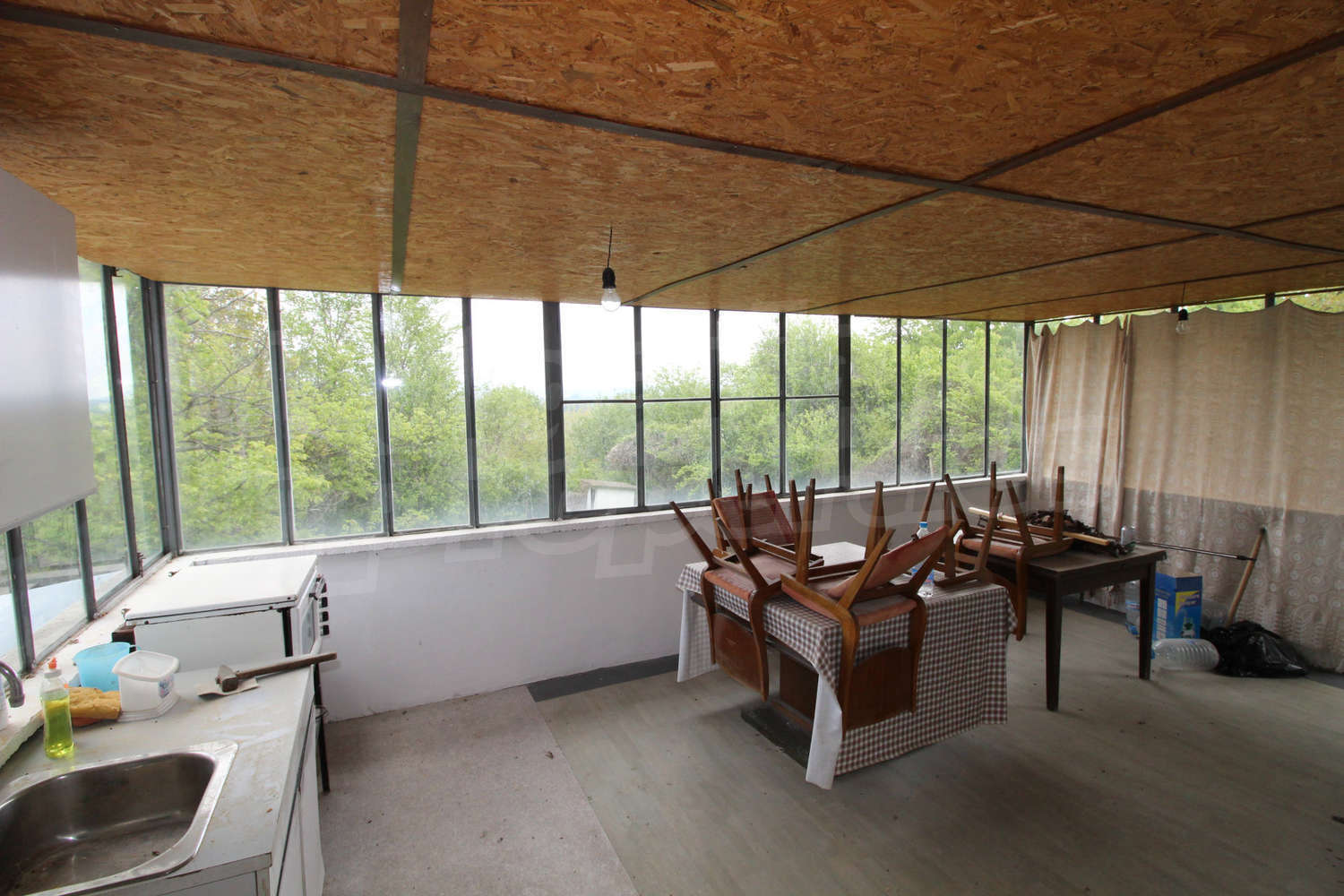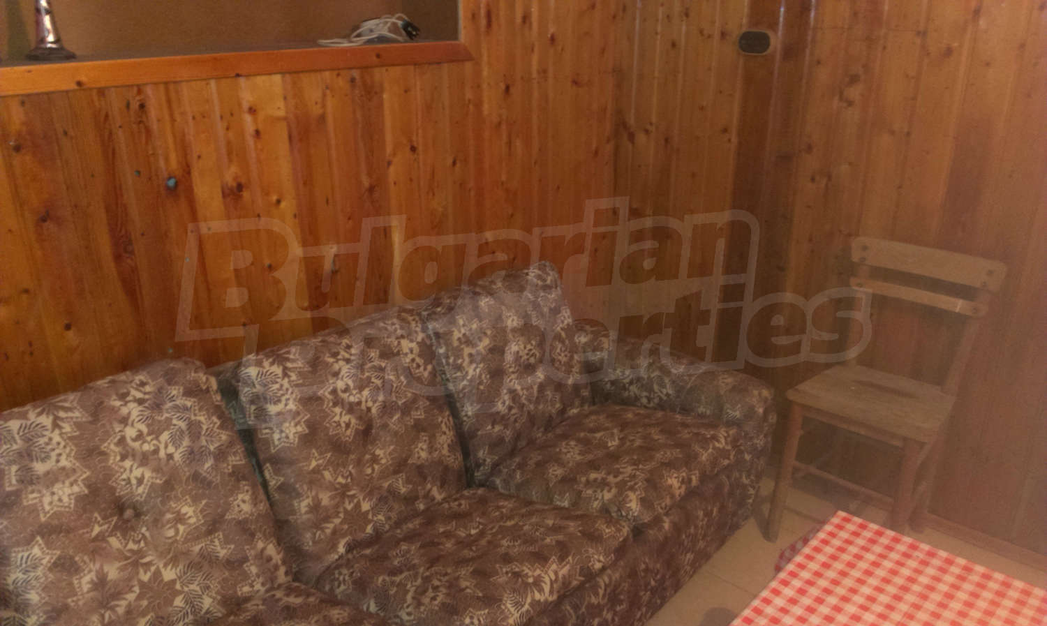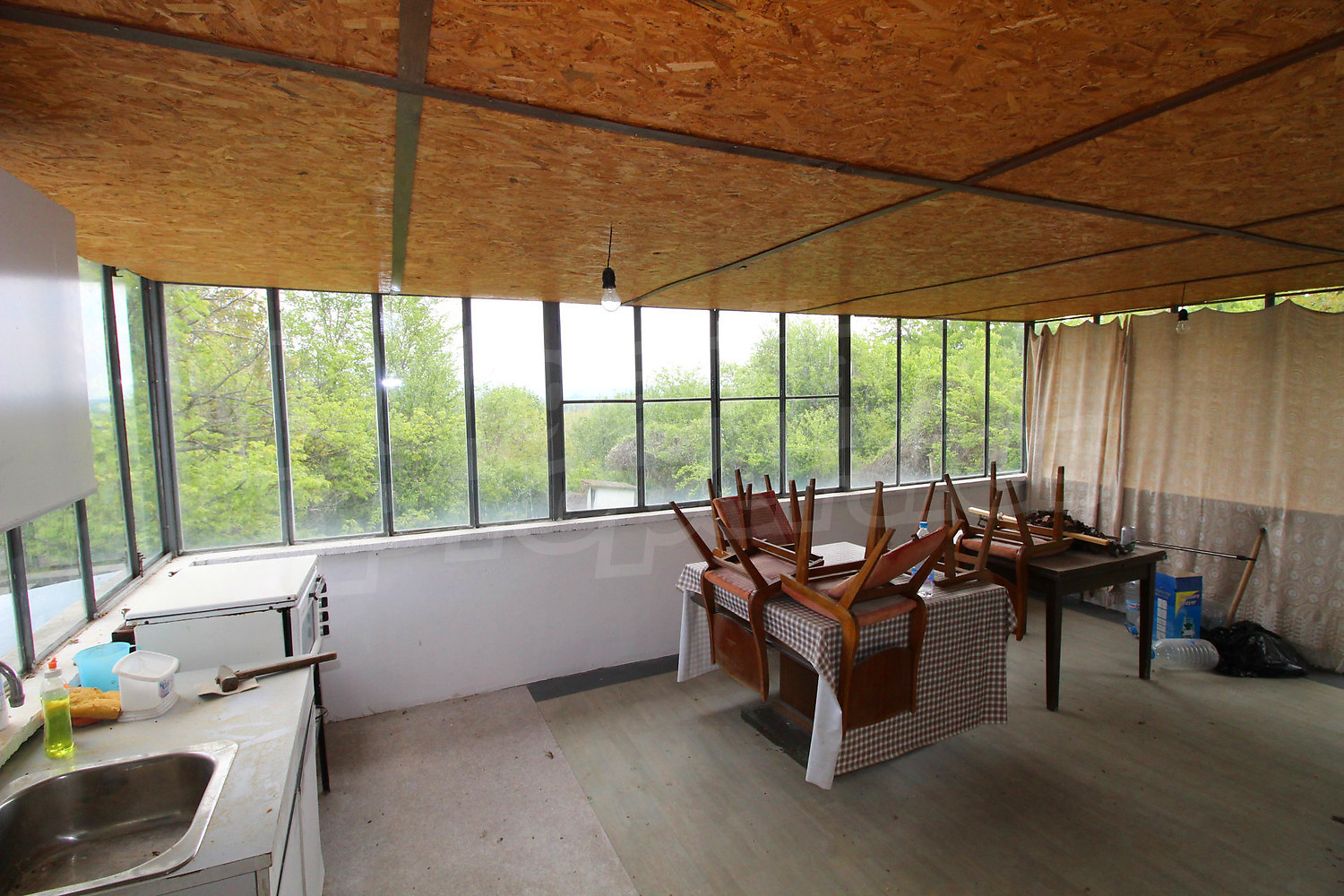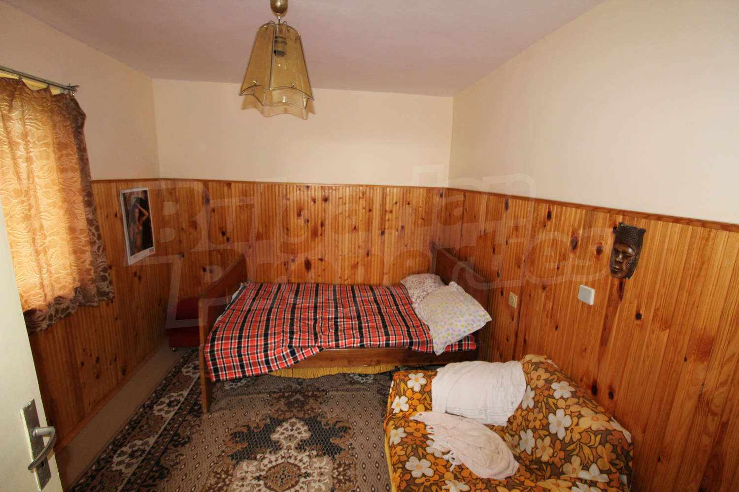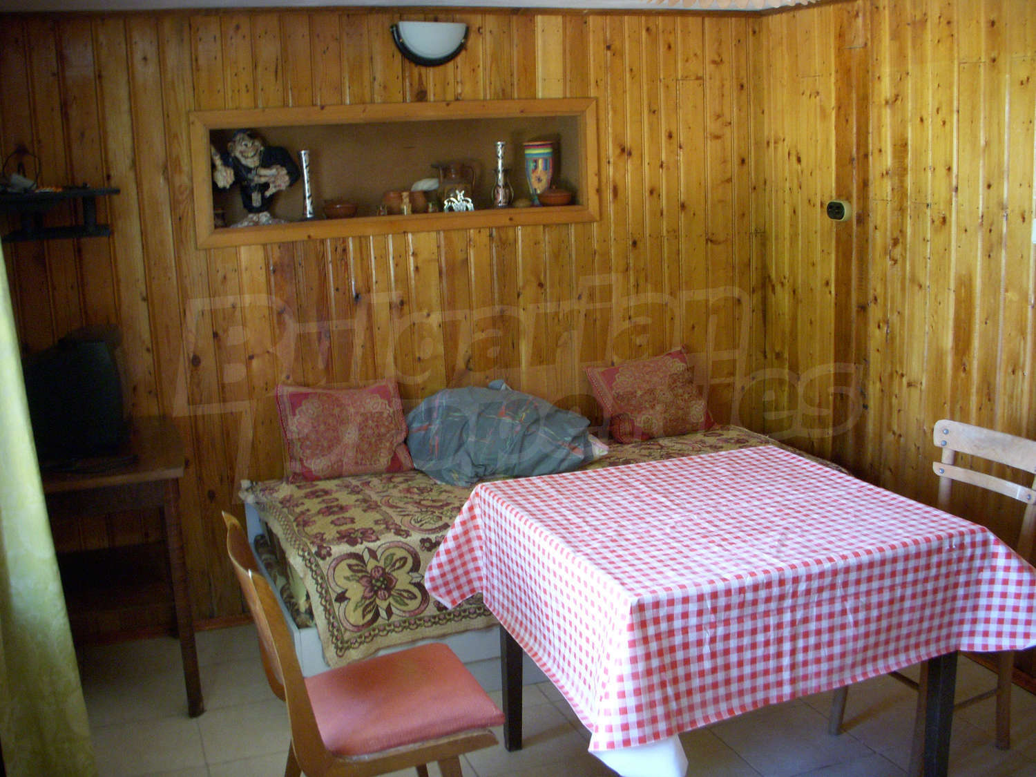 Къщата е на две нива с външни стълби и с РЗП 100 кв.м. Първият етаж включва механа с кухненски бокс 15 кв.м. На второто ниво има разположени две спални, баня и остъклена тераса. Подовата настилка е теракот, дограмата е дървена. Има поставена и ламперия за по-голяма изолация.
