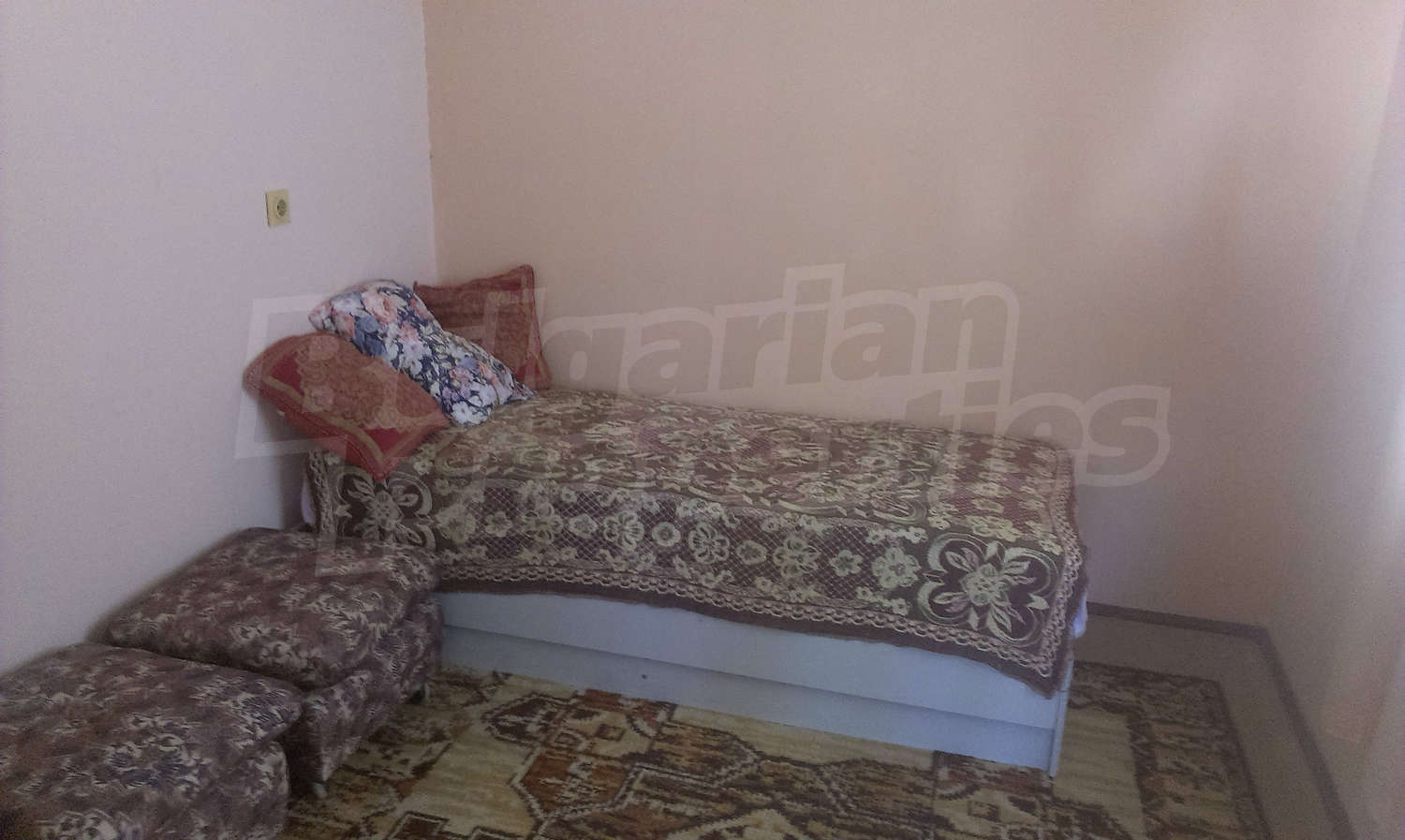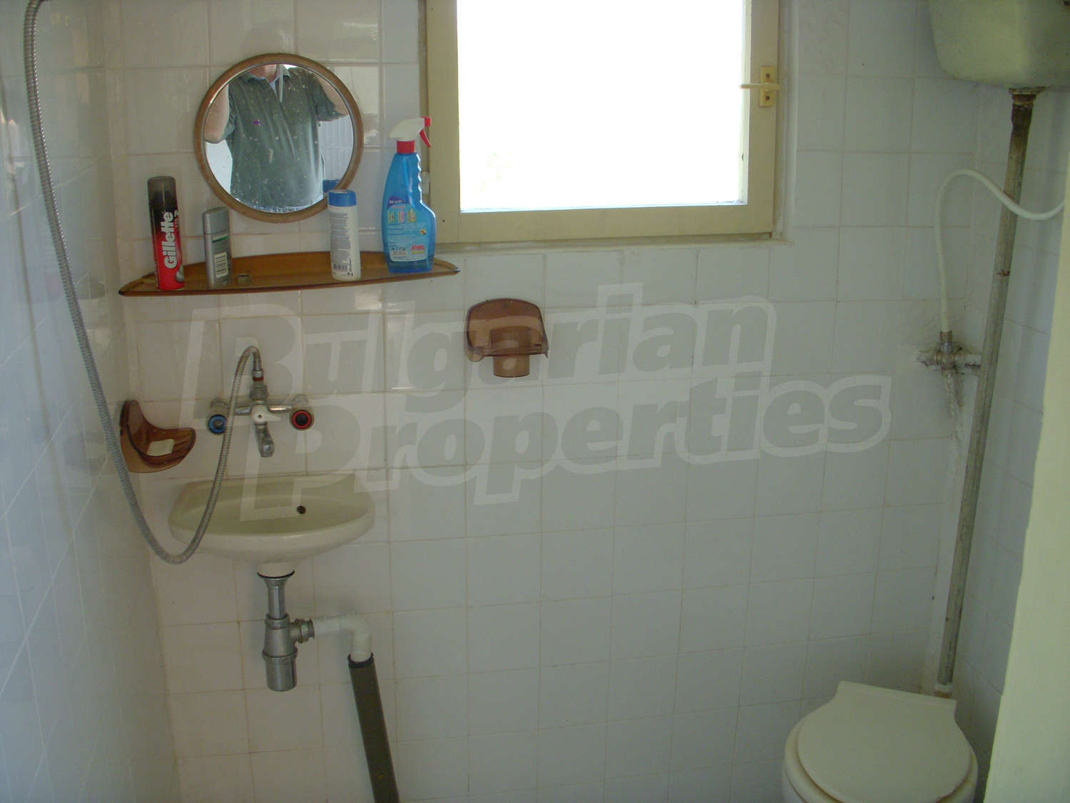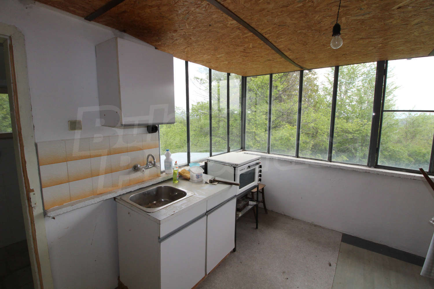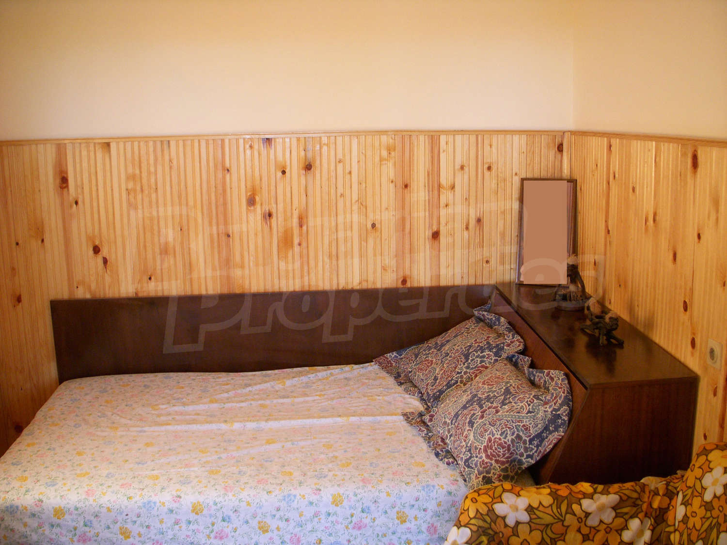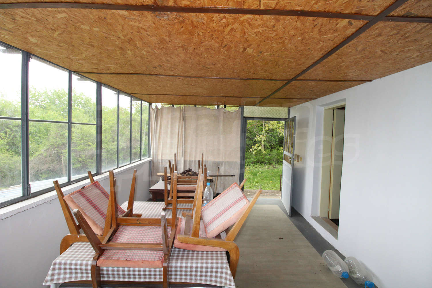 Къщата е на две нива с външни стълби и с РЗП 100 кв.м. Първият етаж включва механа с кухненски бокс 15 кв.м. На второто ниво има разположени две спални, баня и остъклена тераса. Подовата настилка е теракот, дограмата е дървена. Има поставена и ламперия за по-голяма изолация.
