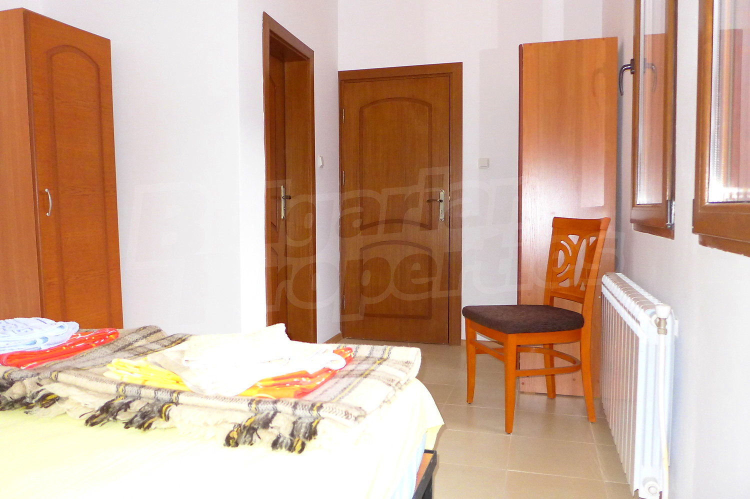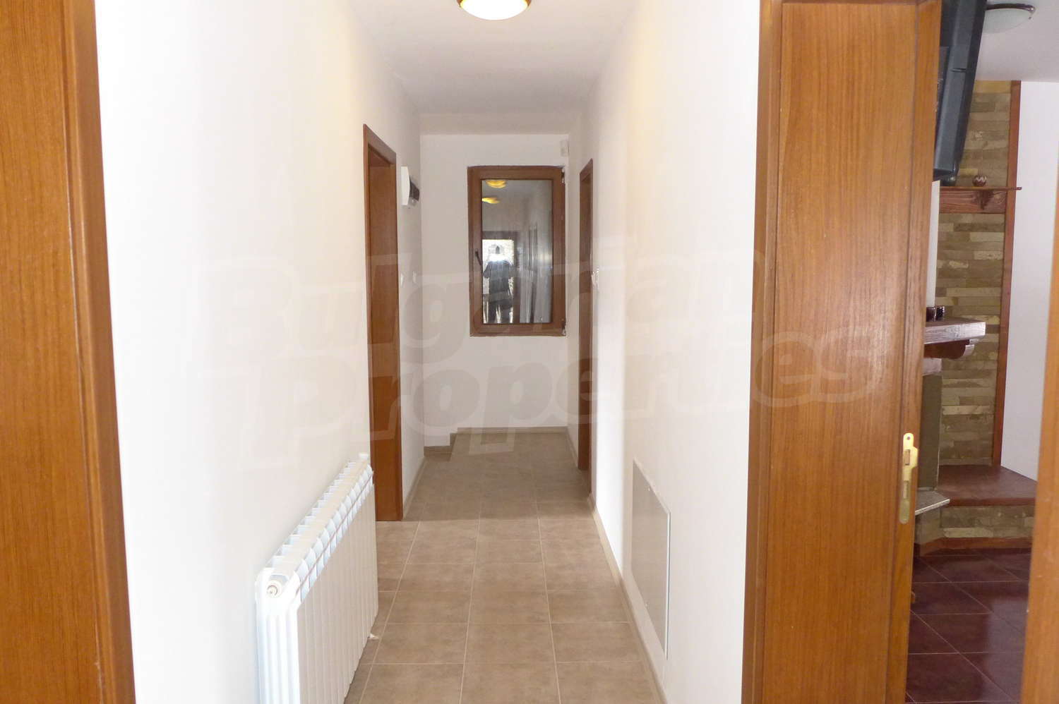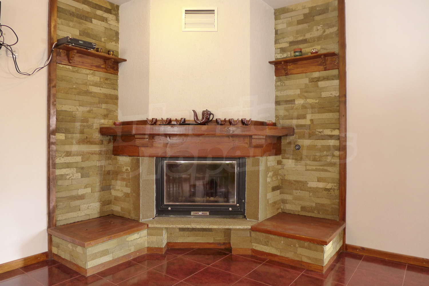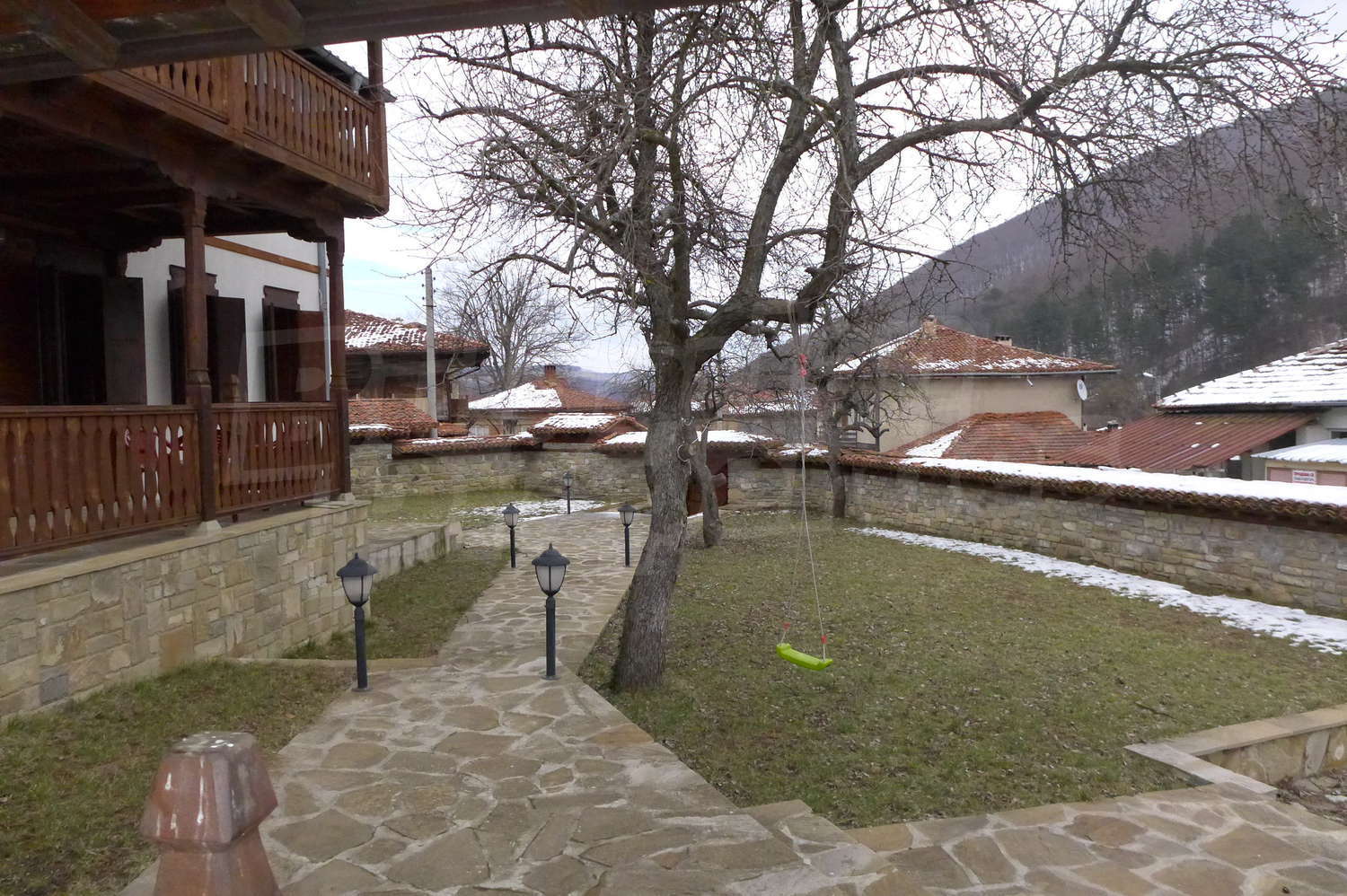 По границите имотът има изградена висока масивна каменна ограда, вътре в къщата е монтирана собствена охранителна система. Всеки етаж е със самостоятелен вход. В добре подредения двор има изградена беседка с барбекю, градинско осветление, както и паркинг. Двата етажа са идентични и са със следното разпределение – пространствено обединени кухня и дневен тракт, родителска спалня със собствена баня и тоалетна, детска спалня, коридор, обща баня и тоалетна на етажа и веранда. За удобство и топлина през зимните месеци, всеки етаж е със самостоятелно локално отопление с камина. Имотът се продава с цялостното оборудване и обзавеждане. Подходящ е за постоянно живеене или за отдаване под наем като къща за гости.