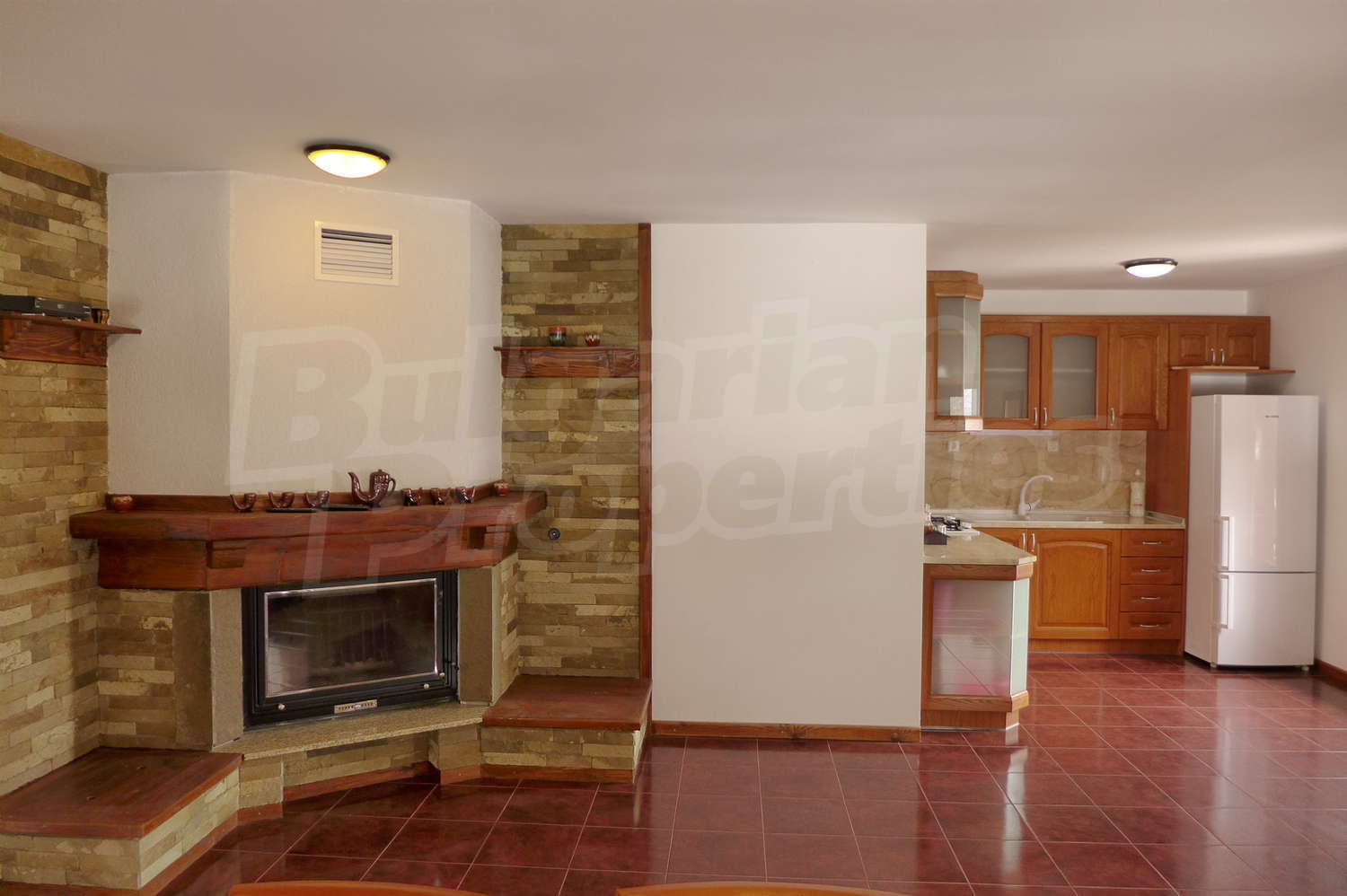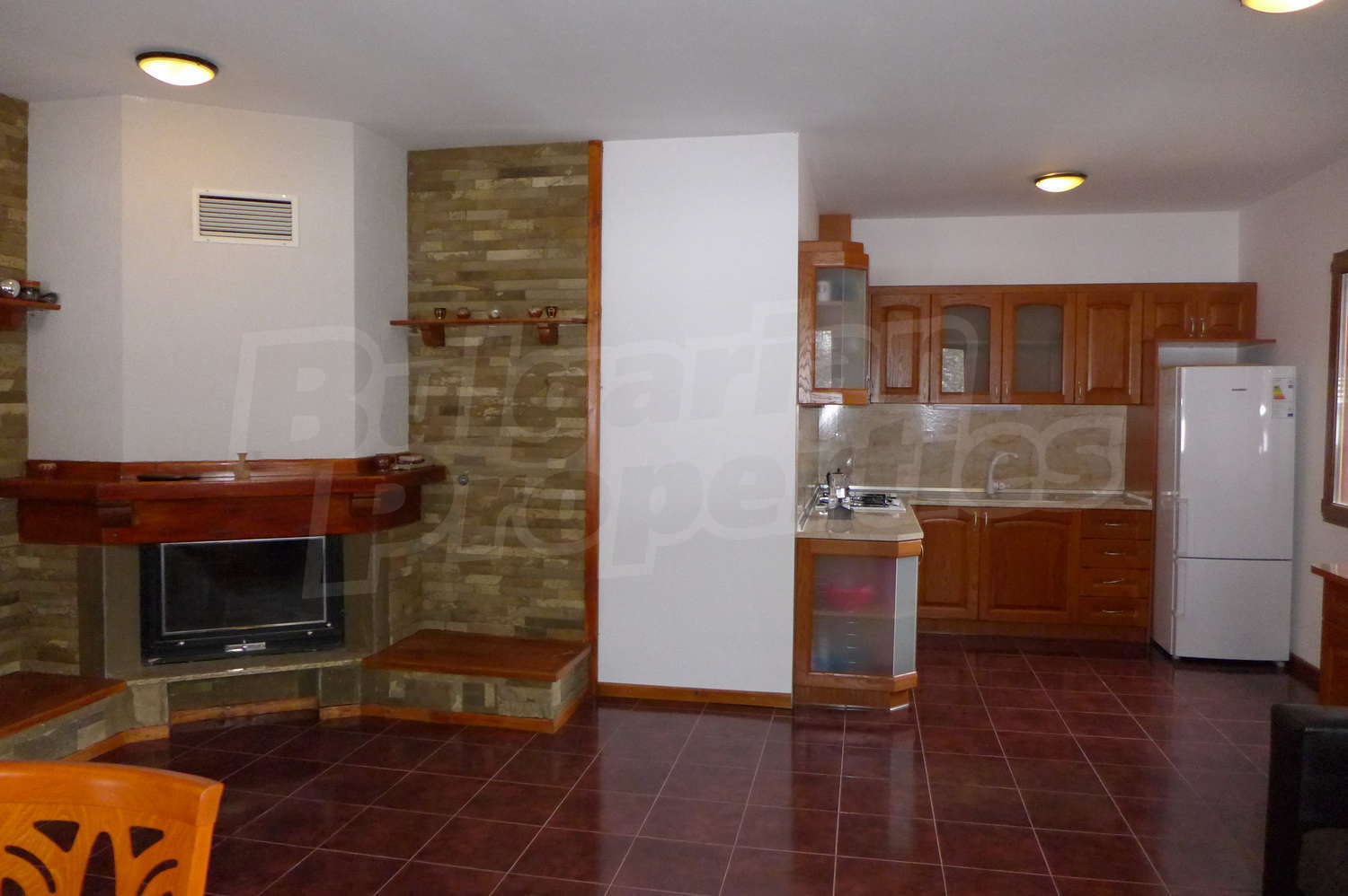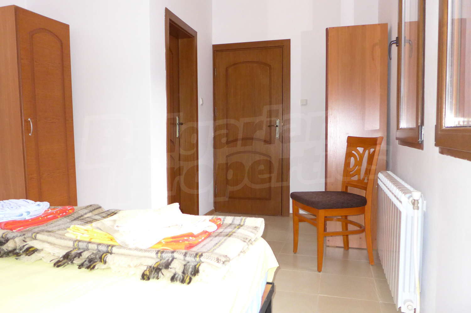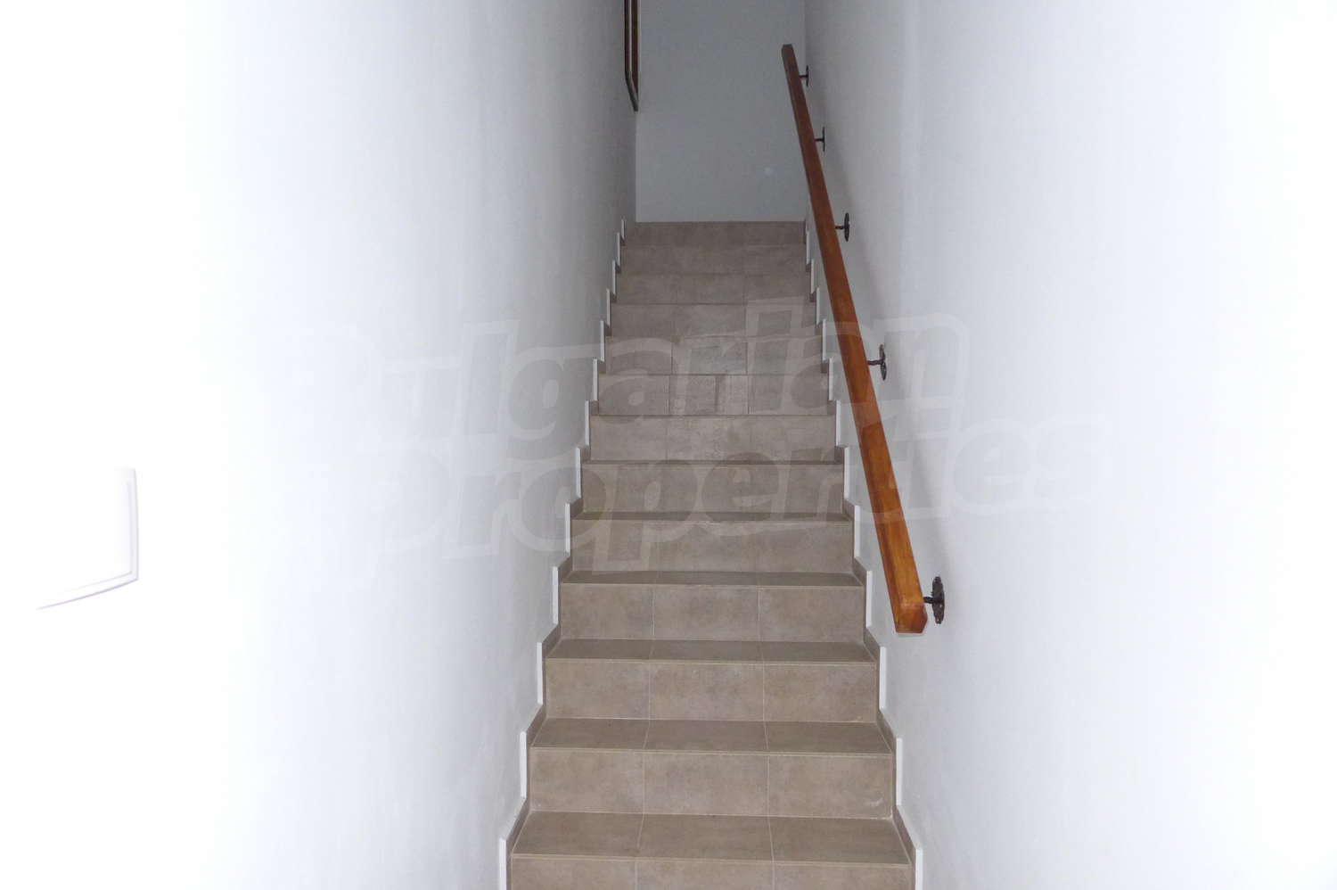 По границите имотът има изградена висока масивна каменна ограда, вътре в къщата е монтирана собствена охранителна система. Всеки етаж е със самостоятелен вход. В добре подредения двор има изградена беседка с барбекю, градинско осветление, както и паркинг. Двата етажа са идентични и са със следното разпределение – пространствено обединени кухня и дневен тракт, родителска спалня със собствена баня и тоалетна, детска спалня, коридор, обща баня и тоалетна на етажа и веранда. За удобство и топлина през зимните месеци, всеки етаж е със самостоятелно локално отопление с камина. Имотът се продава с цялостното оборудване и обзавеждане. Подходящ е за постоянно живеене или за отдаване под наем като къща за гости.
