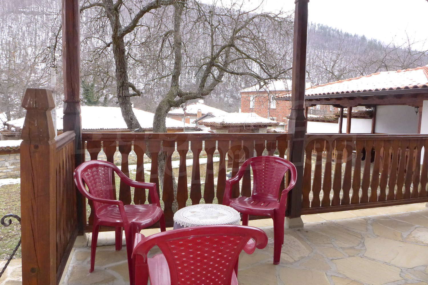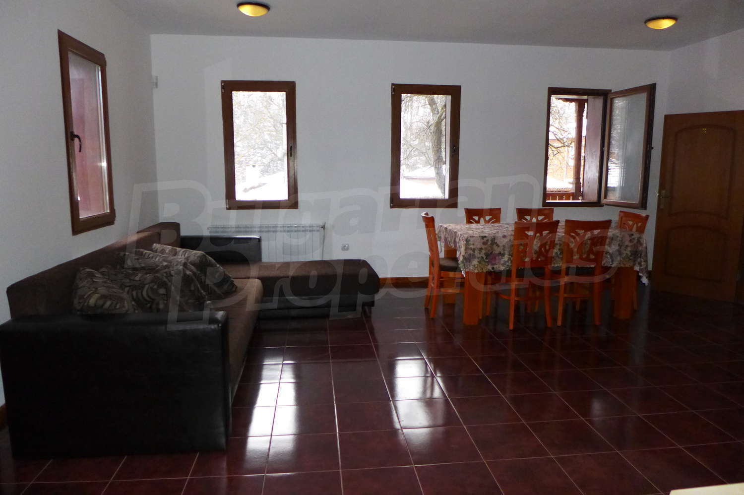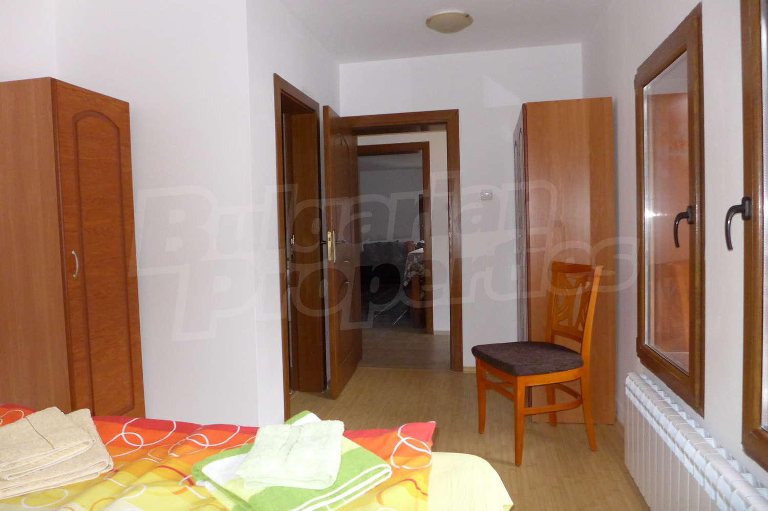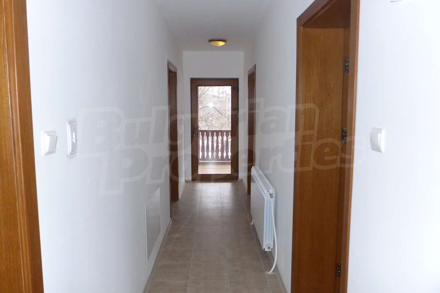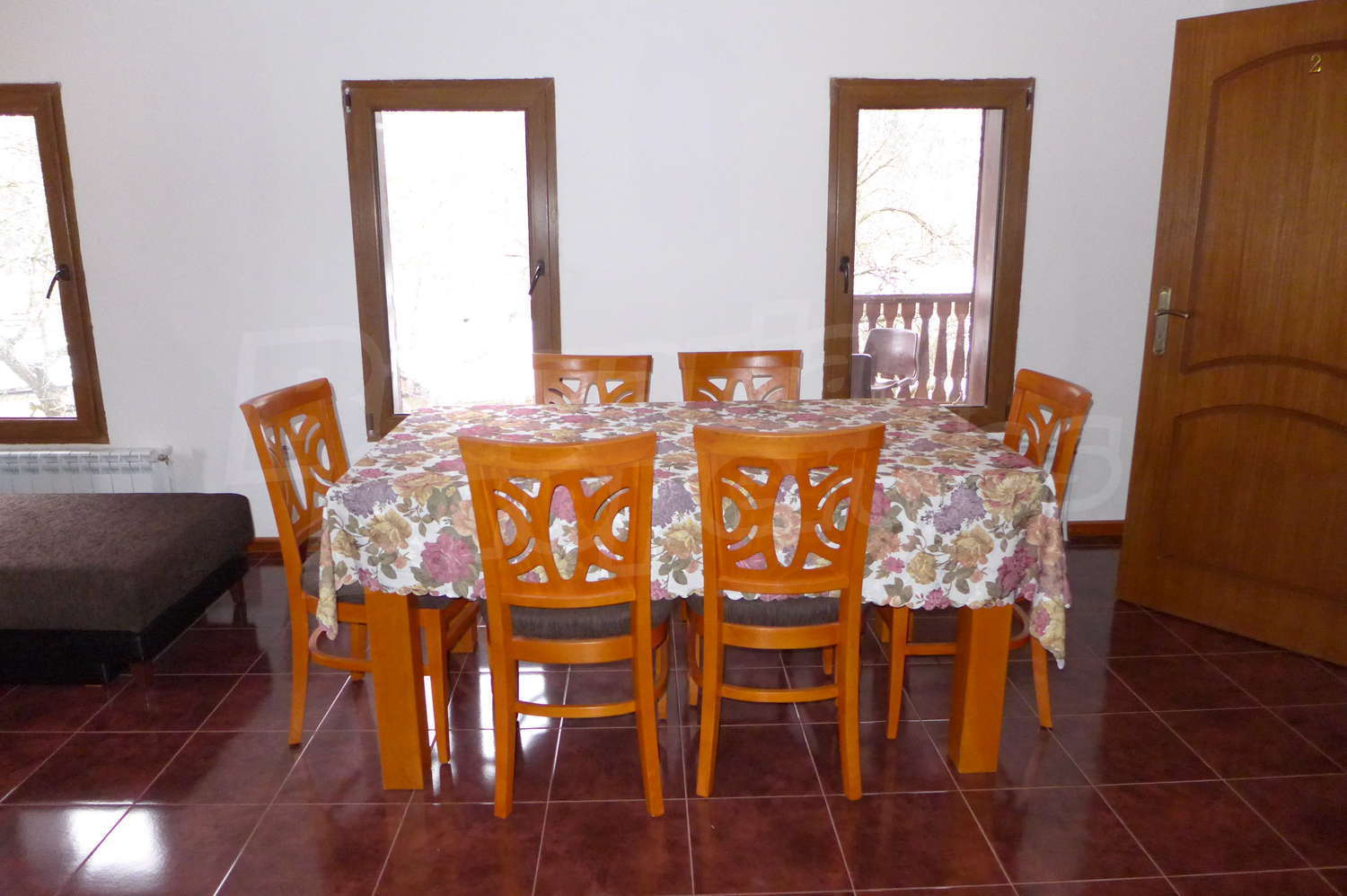 По границите имотът има изградена висока масивна каменна ограда, вътре в къщата е монтирана собствена охранителна система. Всеки етаж е със самостоятелен вход. В добре подредения двор има изградена беседка с барбекю, градинско осветление, както и паркинг. Двата етажа са идентични и са със следното разпределение – пространствено обединени кухня и дневен тракт, родителска спалня със собствена баня и тоалетна, детска спалня, коридор, обща баня и тоалетна на етажа и веранда. За удобство и топлина през зимните месеци, всеки етаж е със самостоятелно локално отопление с камина. Имотът се продава с цялостното оборудване и обзавеждане. Подходящ е за постоянно живеене или за отдаване под наем като къща за гости.