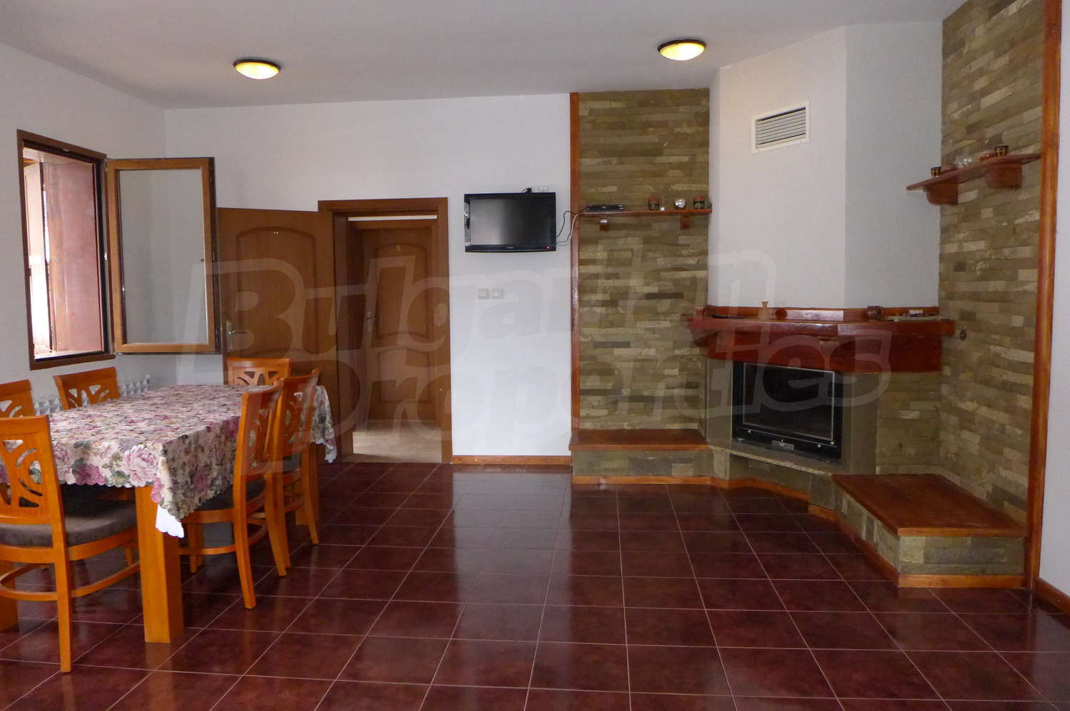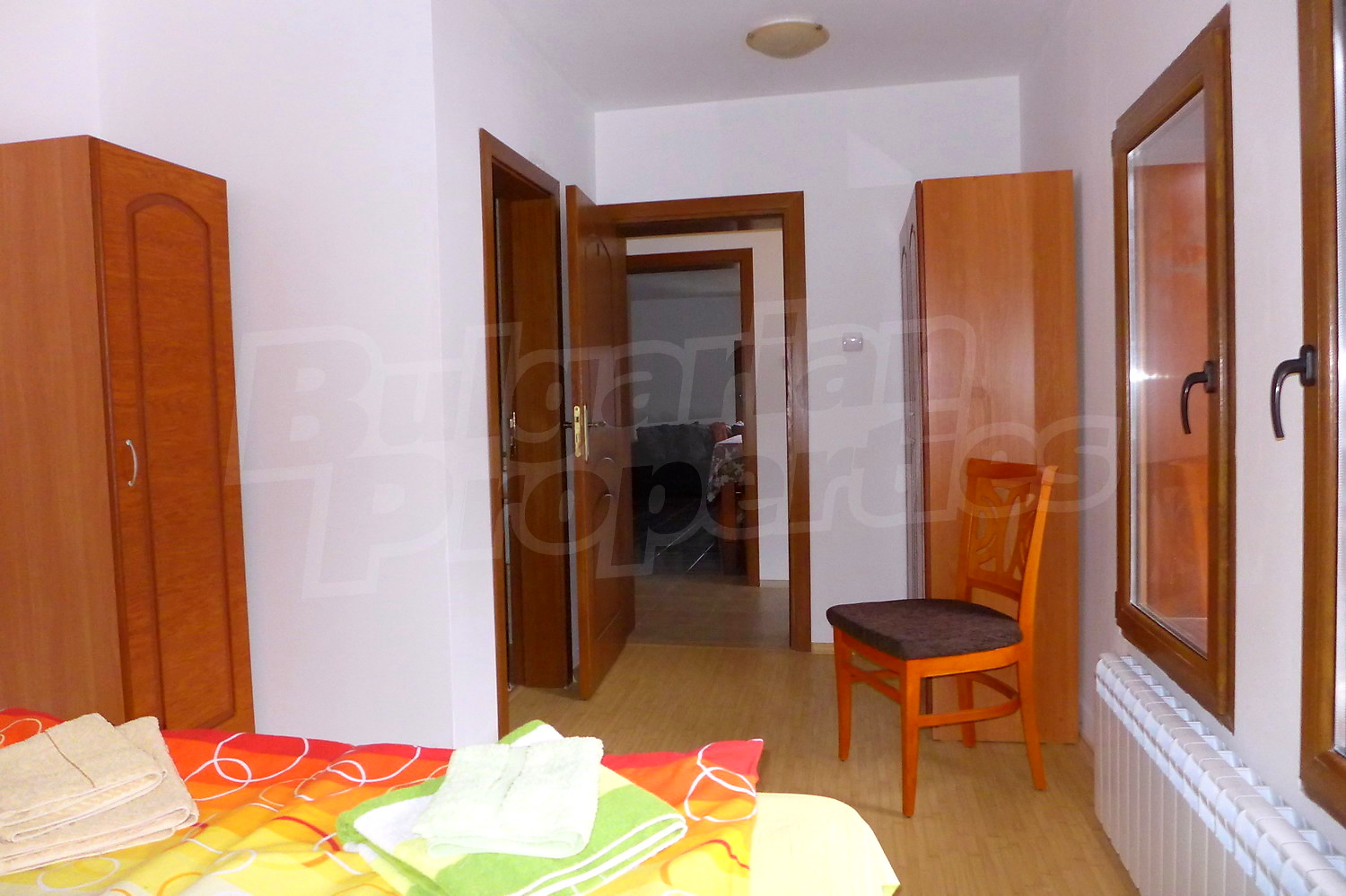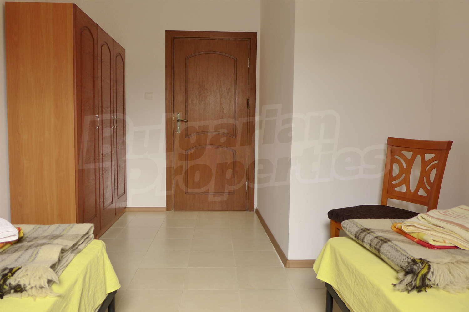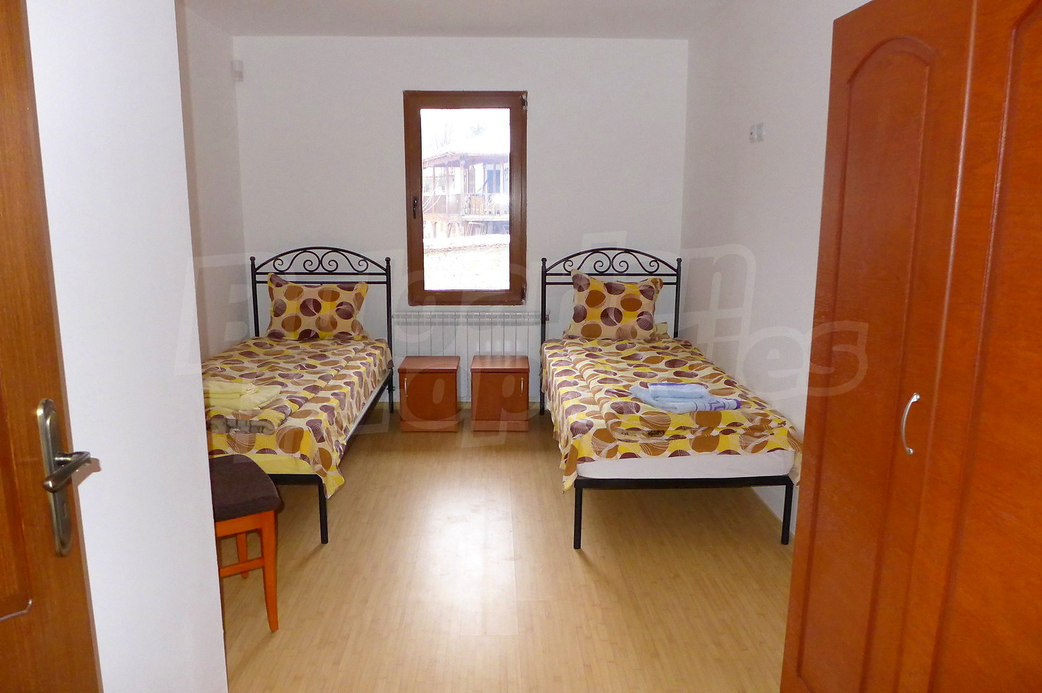 По границите имотът има изградена висока масивна каменна ограда, вътре в къщата е монтирана собствена охранителна система. Всеки етаж е със самостоятелен вход. В добре подредения двор има изградена беседка с барбекю, градинско осветление, както и паркинг. Двата етажа са идентични и са със следното разпределение – пространствено обединени кухня и дневен тракт, родителска спалня със собствена баня и тоалетна, детска спалня, коридор, обща баня и тоалетна на етажа и веранда. За удобство и топлина през зимните месеци, всеки етаж е със самостоятелно локално отопление с камина. Имотът се продава с цялостното оборудване и обзавеждане. Подходящ е за постоянно живеене или за отдаване под наем като къща за гости.