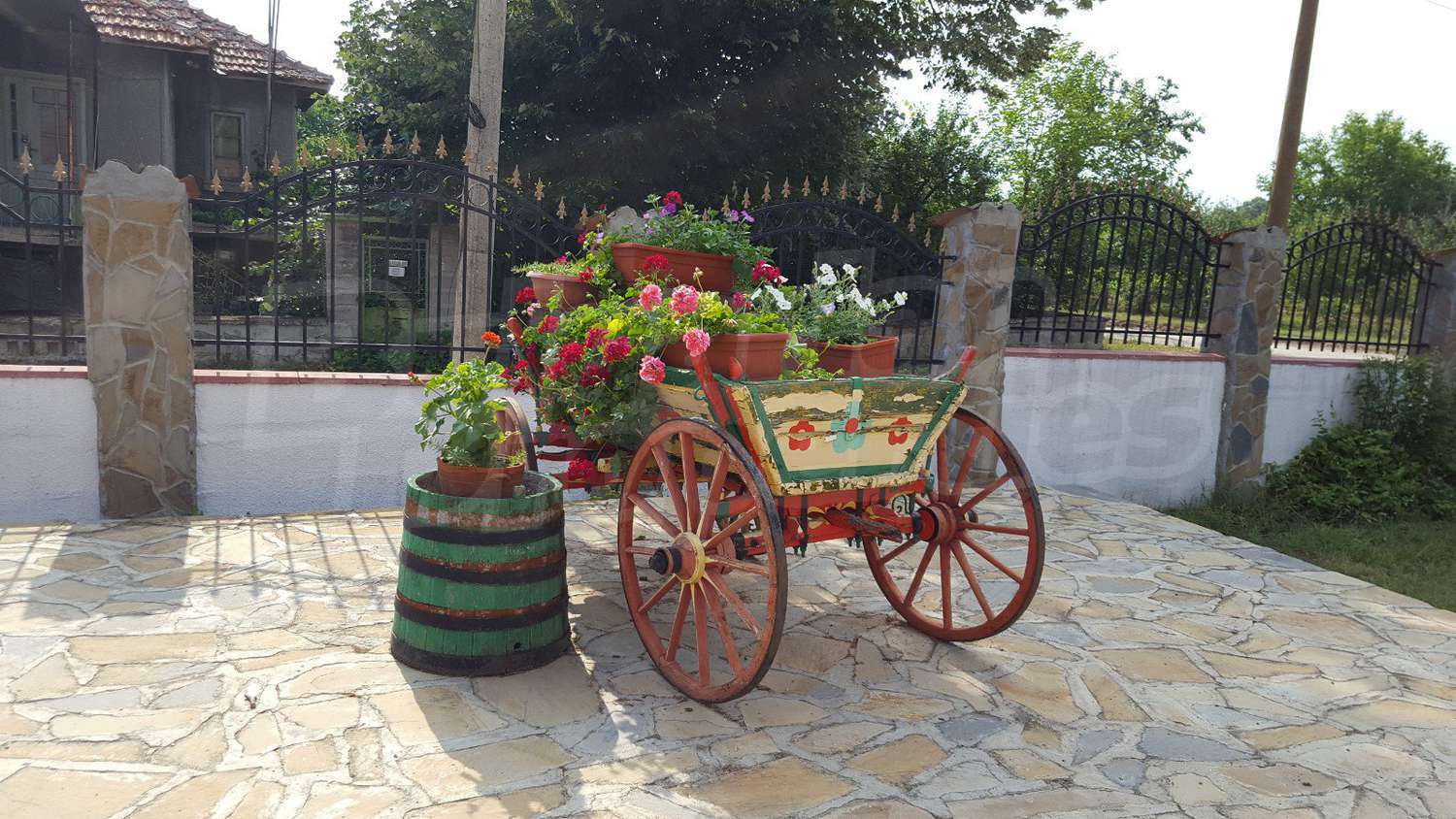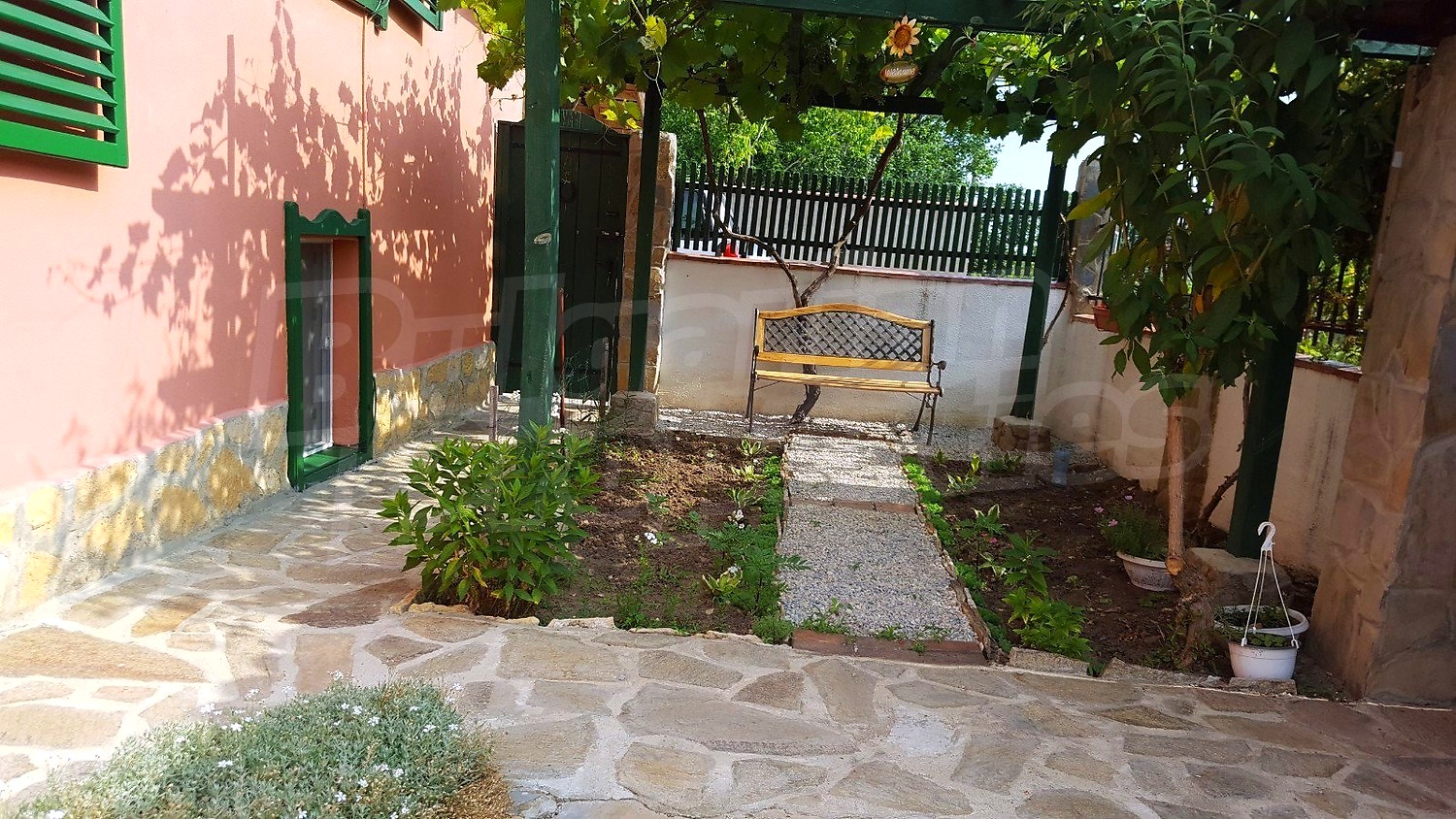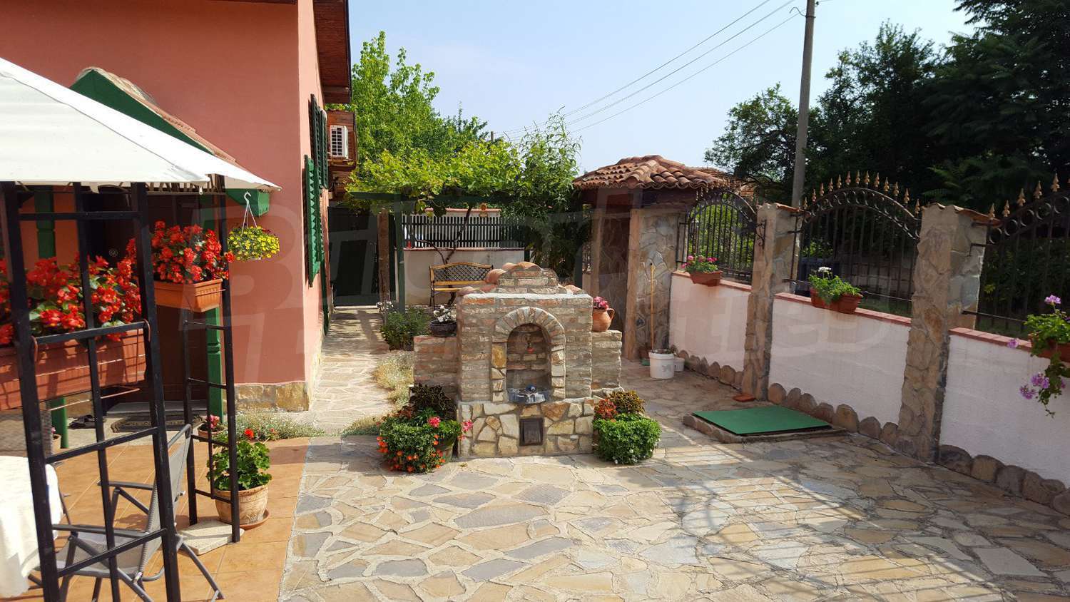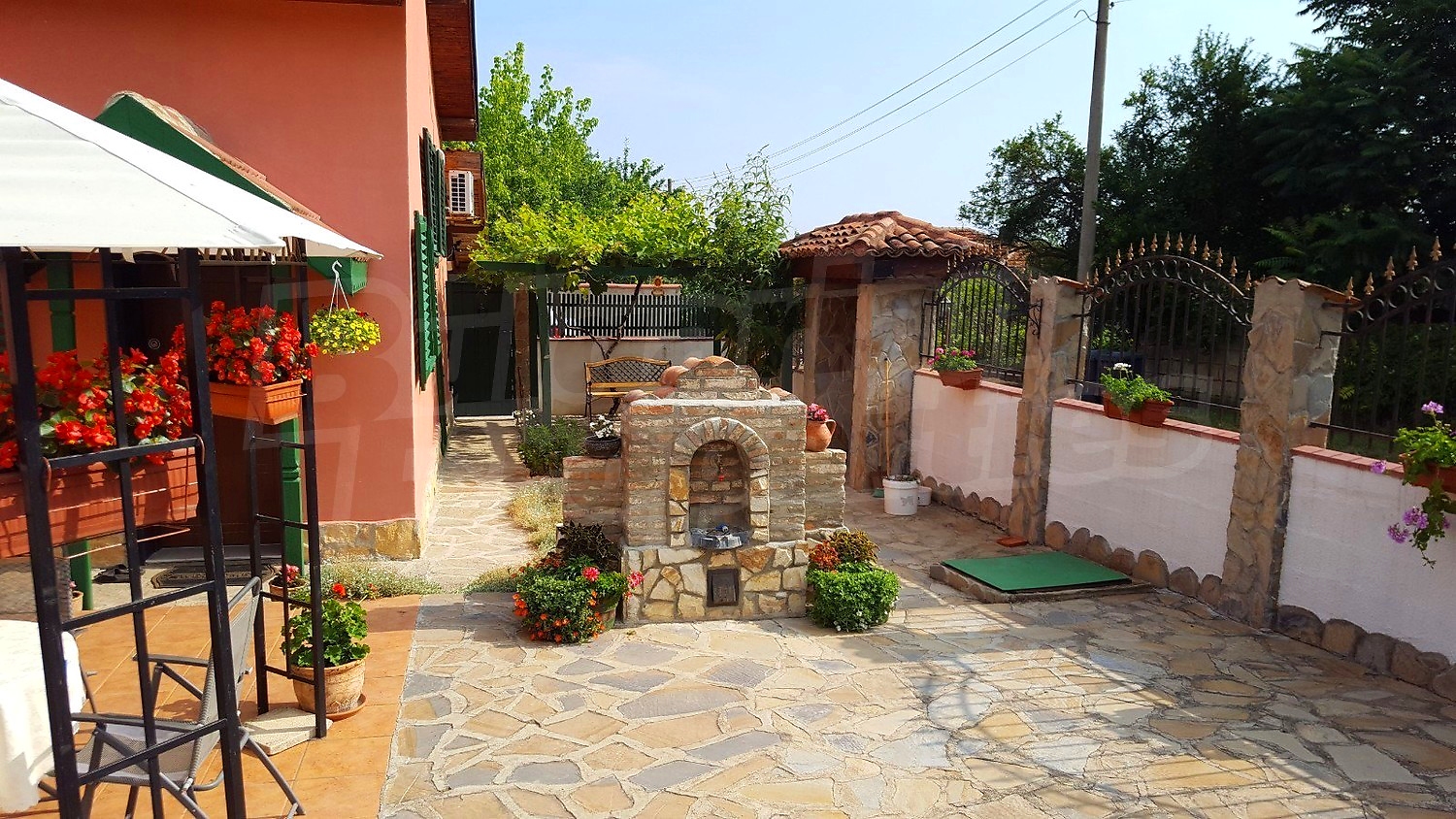 Дворното място от 1100 кв.м. е с изградени в него чудесен басейн, барбекю зона и кът за релакс. Отличен имот за вашата незабравима почивка и комфортния начин на живот на вашето семейство.
