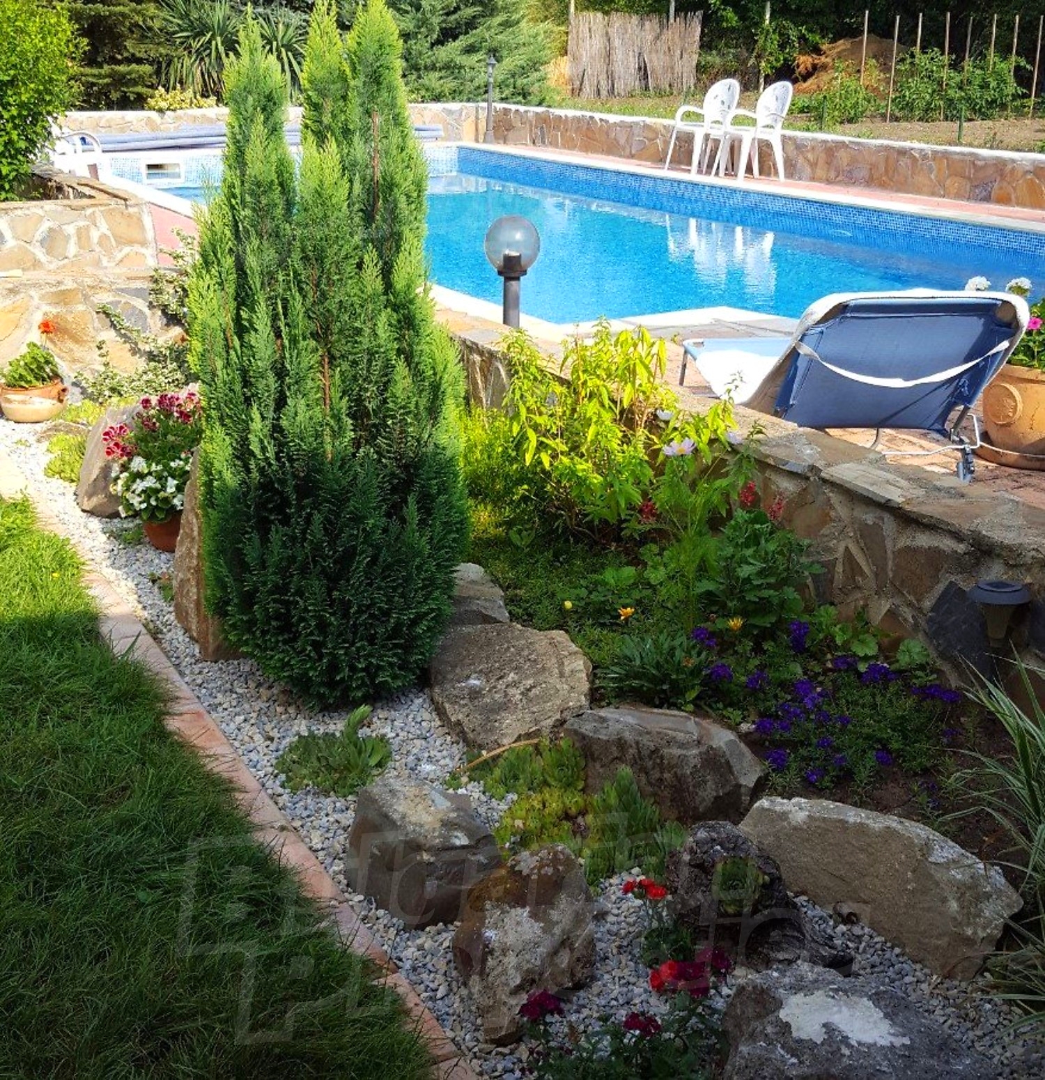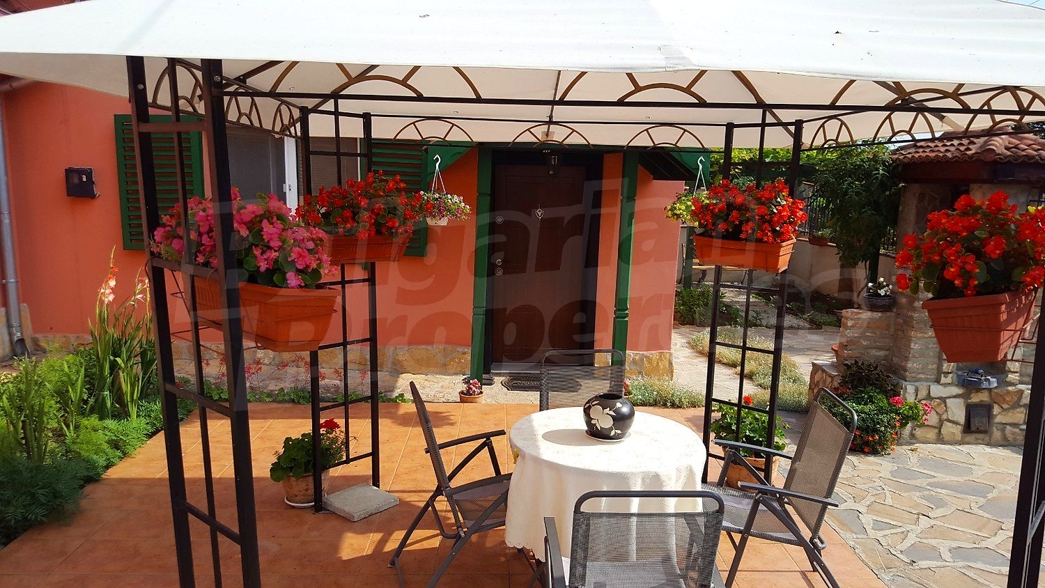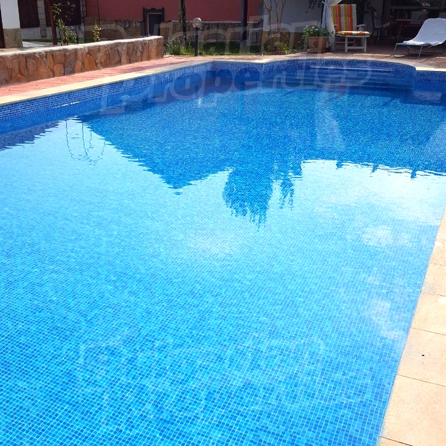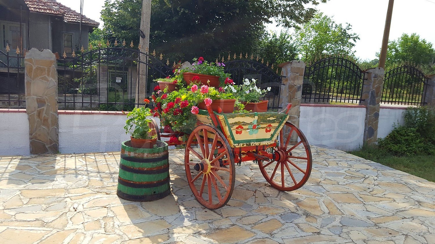 Дворното място от 1100 кв.м. е с изградени в него чудесен басейн, барбекю зона и кът за релакс. Отличен имот за вашата незабравима почивка и комфортния начин на живот на вашето семейство.