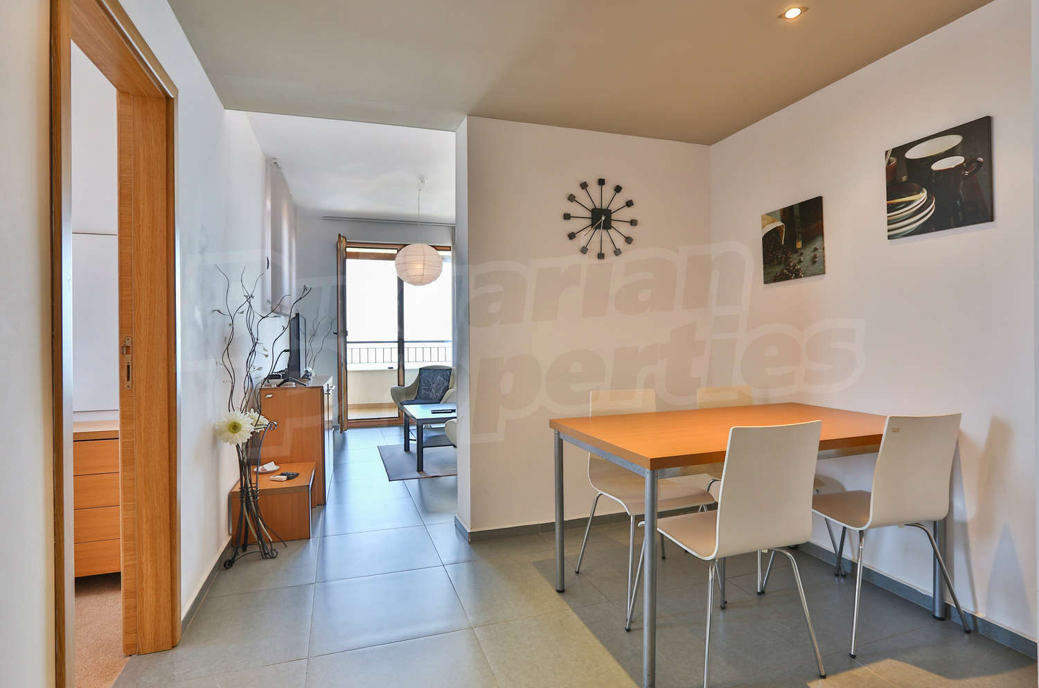 Апартаментът е напълно обзаведен и оборудван, готов за ползване. Предлага отлични условия за релакс и прекрасна морска гледка! Жилището е с площ от 79 кв.м. Разположено е на трети етаж и се състои от две спални, кухня с трапезария и всекидневна, баня с тоалетна и две тераси с морска панорама.