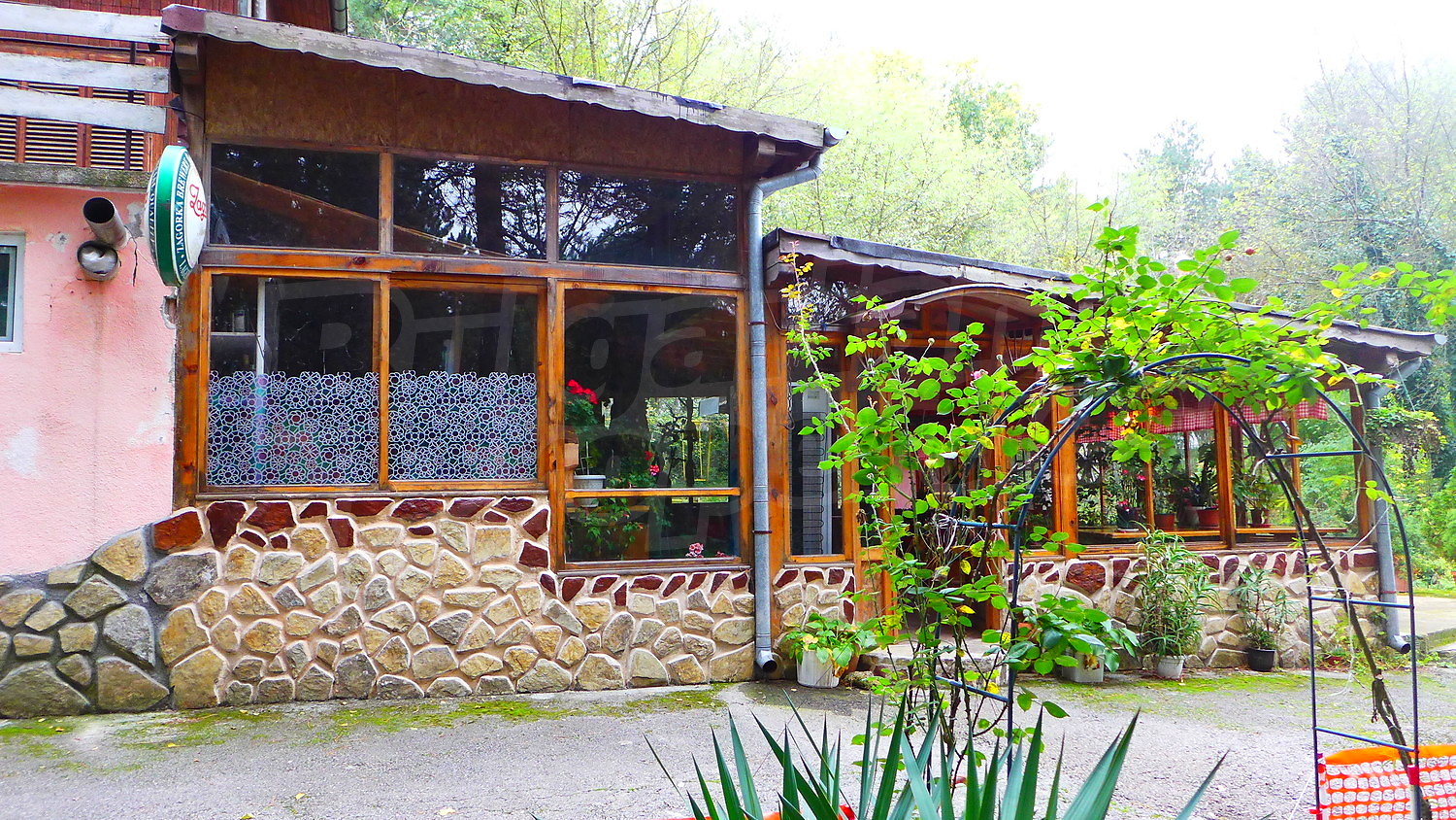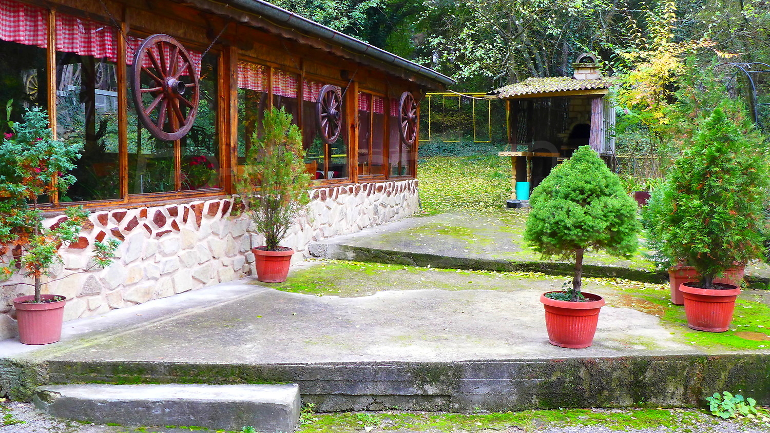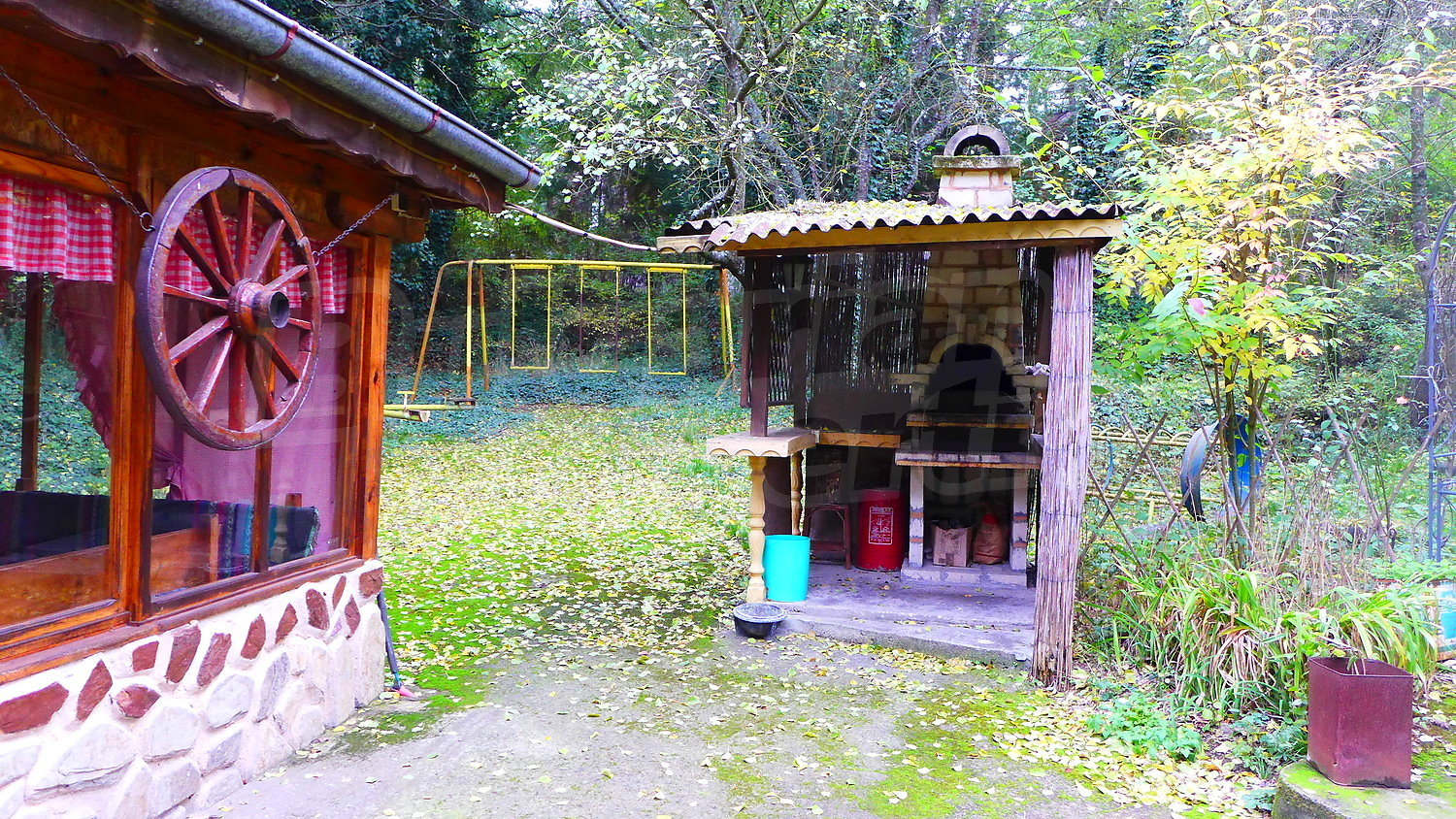 - Първи етаж- кухня, трапезария, склад, тоалетна, на допълващо застрояване има дървена пристройка;