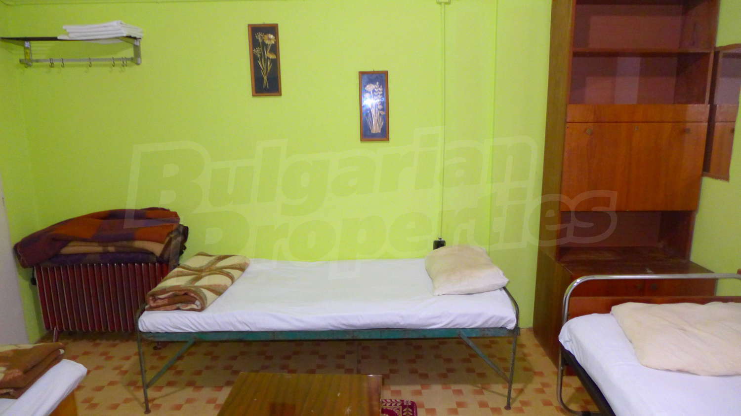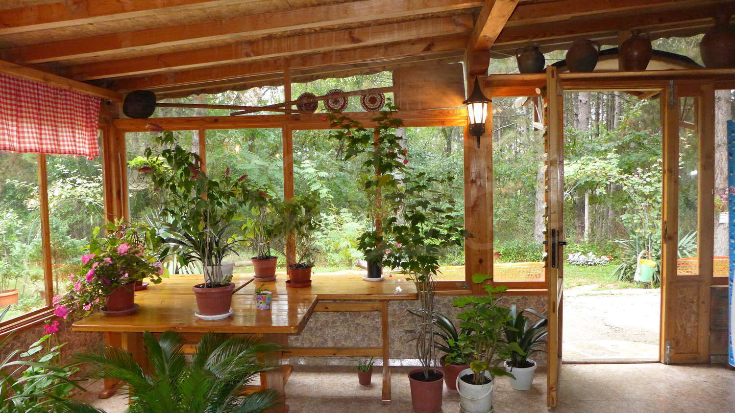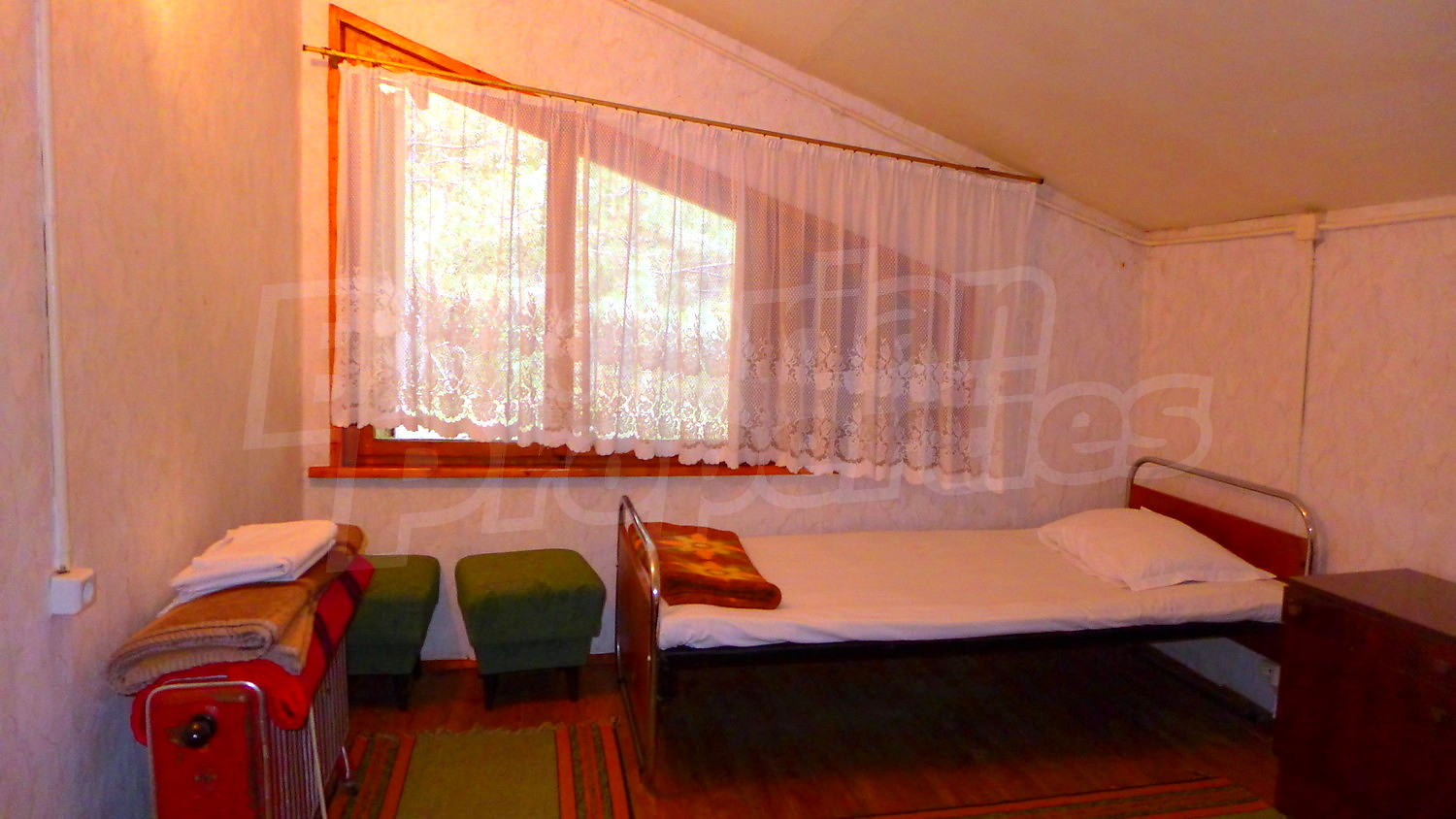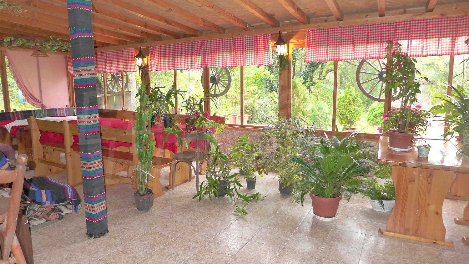 - Първи етаж- кухня, трапезария, склад, тоалетна, на допълващо застрояване има дървена пристройка;