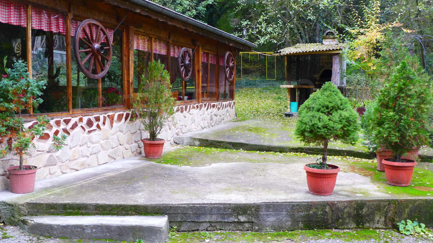 Имотът е снабден с електричество, вода и 2 септични ями. В имота има и малка къща с площ 50 кв. м. В близост е налице извор с минерална вода, а целият имот е обграден от борова гора.
