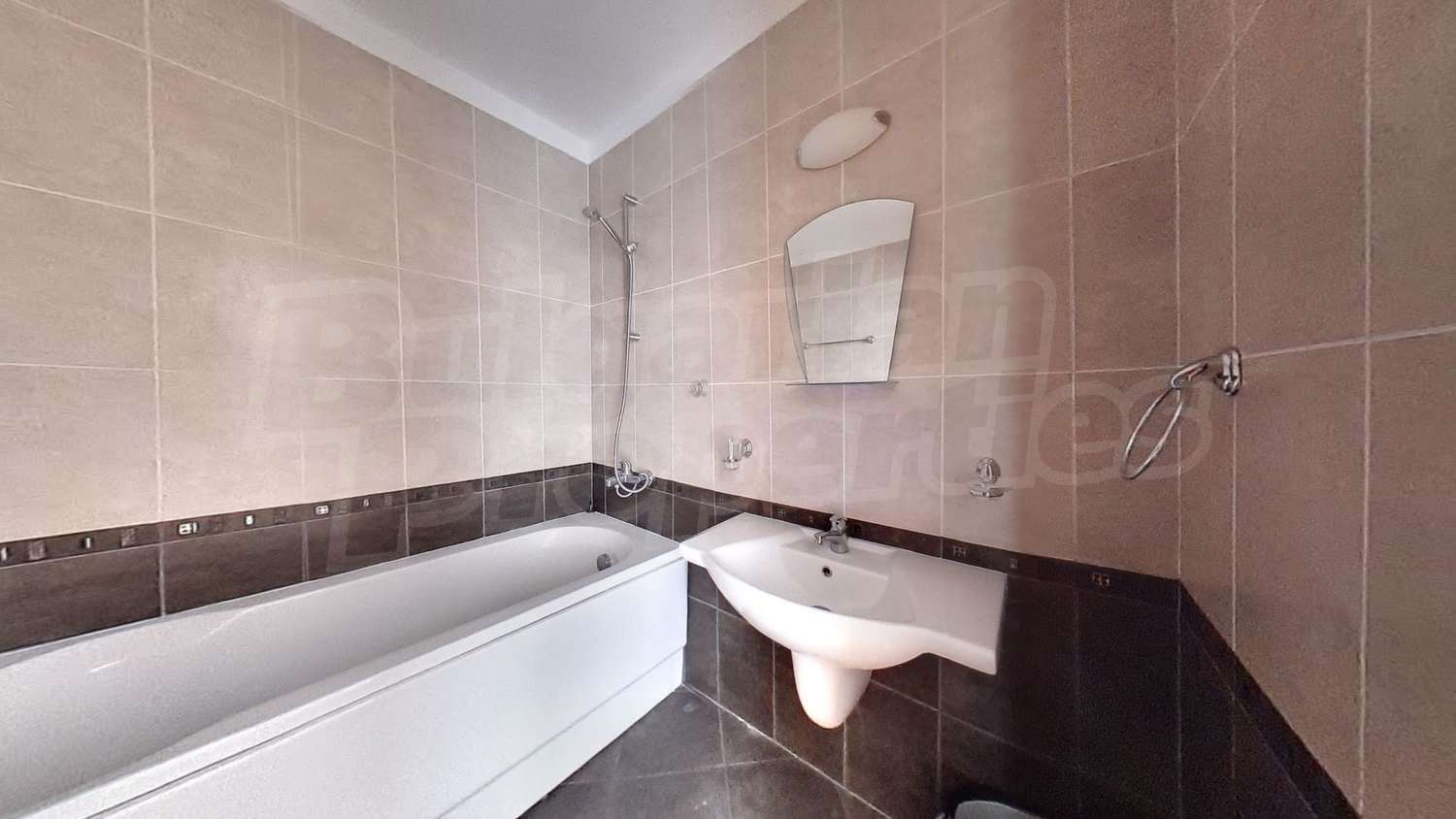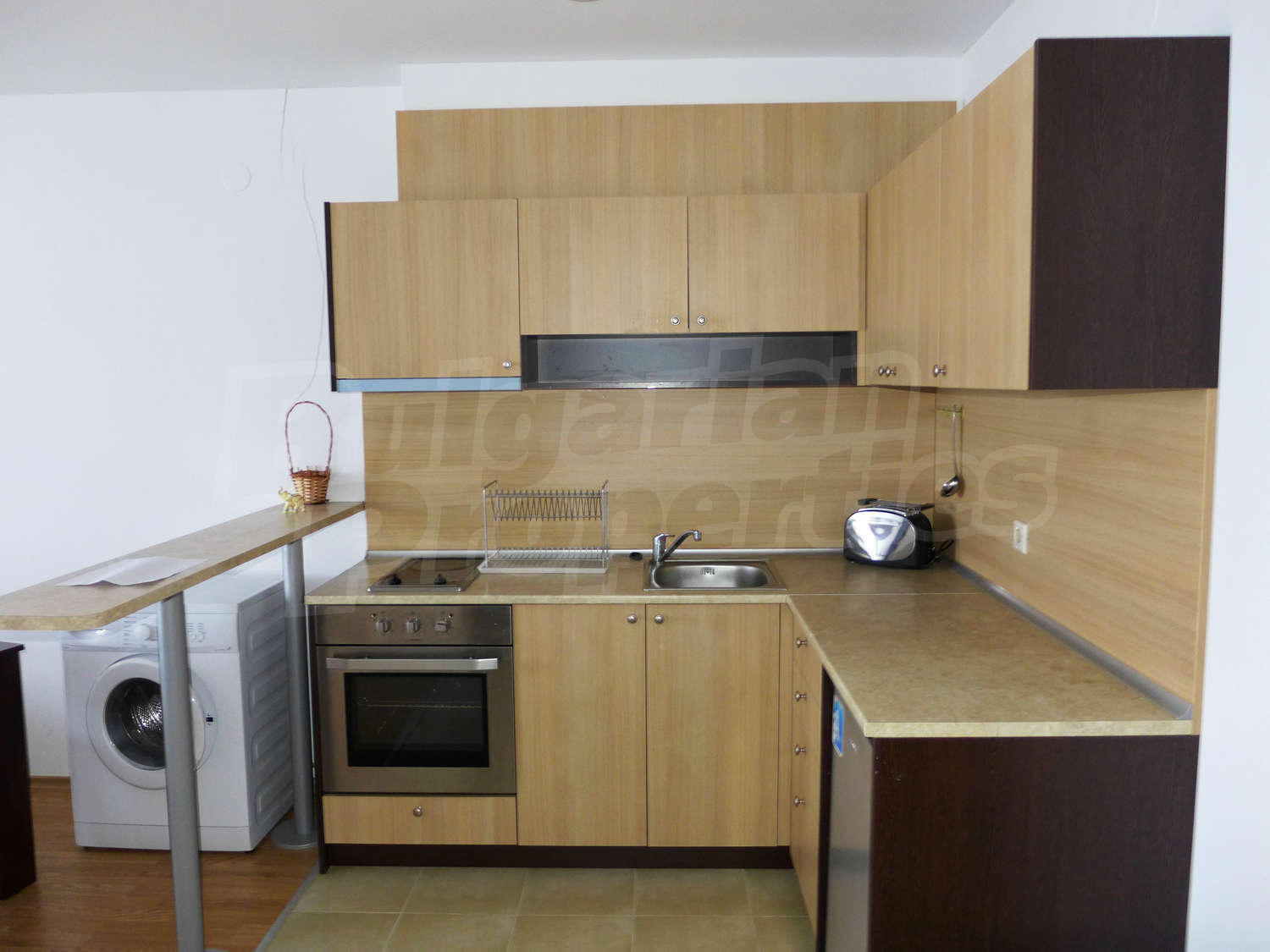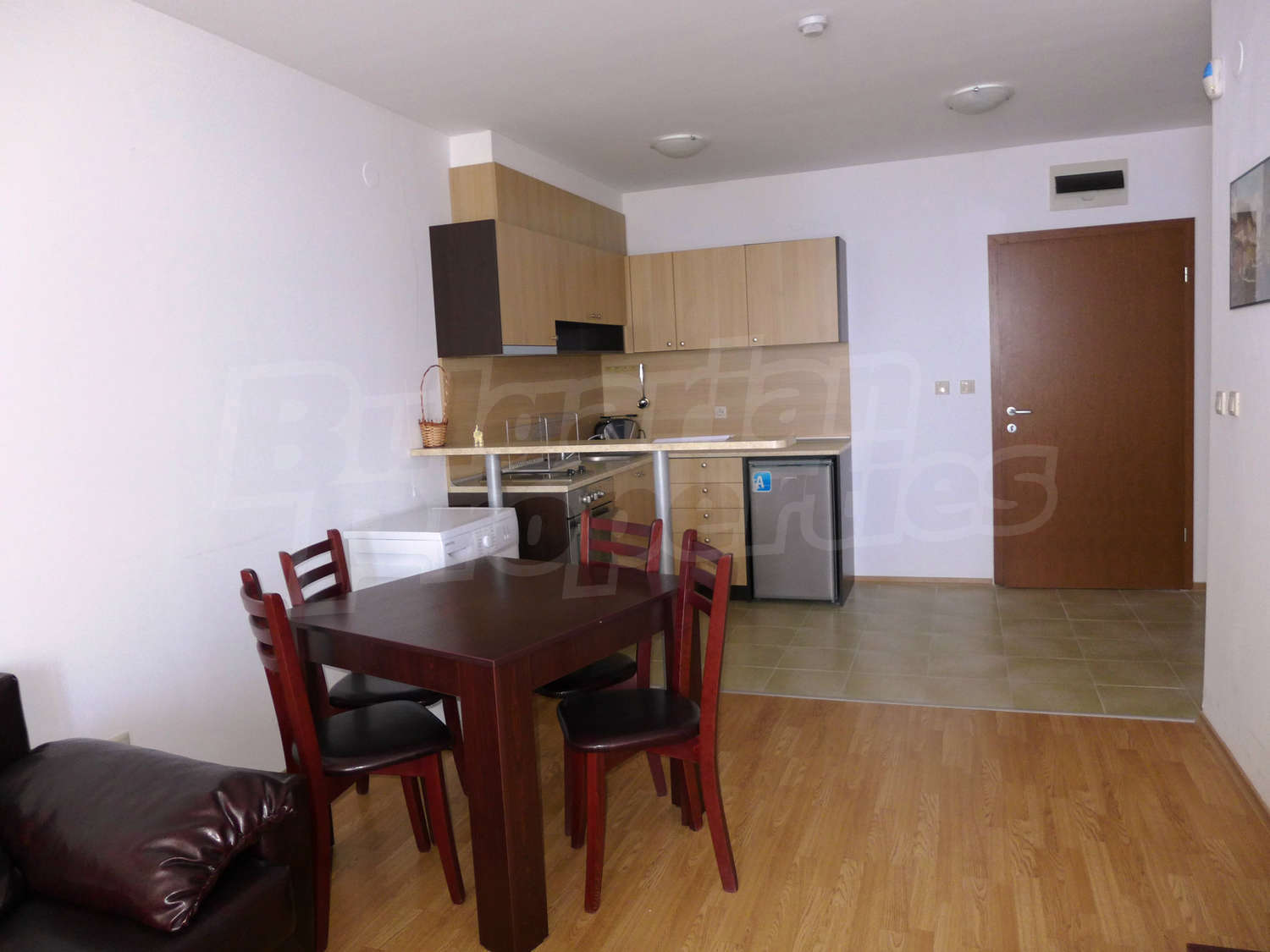 Имотът с площ от 65.18 кв.м. и се намира на четвърти етаж с панорамна гледка към планината и полята в околността. Предлага със следната степен на завършеност: PVC дограма, подове с ламиниран паркет, теракот, стени - латекс. Апартаментът се продава напълно обзаведен. Модерната кухня включва фурна, двоен котлон, аспиратор, мивка, хладилник, пералня, електрическа кана, тостер. В хола има троен разтегателен диван, масичка за кафе, сателитна телевизия, DVD плейър, поставка за телевизор, маса за хранене, 4 стола за хранене, скрин, пердета и завеси. Спалнята е с голямо двойно легло, 2 нощни шкафчета, гардероб с двойно, двуетажни легла, огледала, завеси и щори. Банята е оборудвана с тоалетна, вана/душ, мивка, огледало, бойлер. Отоплението се осъществява посредством електрически конвектори. Балконът е с източно изложение.